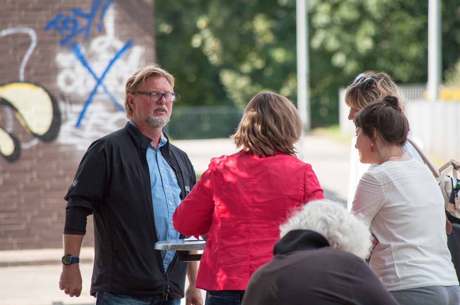 Aber weil ich aufgrund des Menschenauflaufes irgendwie eine ganz schlechte Vorahnung bekommen hatte, ob hier nicht doch irgendwann mal wieder eine völlig überflüssige und vor allem den dann bei mir allerletzten Nerv tötende Baustelle entstehen wird, hab ich die Gelegenheit – vielleicht sogar zum letzen Mal – noch eben als bezeugender Zeitgenosse genutzt, und die anscheinend vier wichtigen Köpfe für mich mal konserviert.