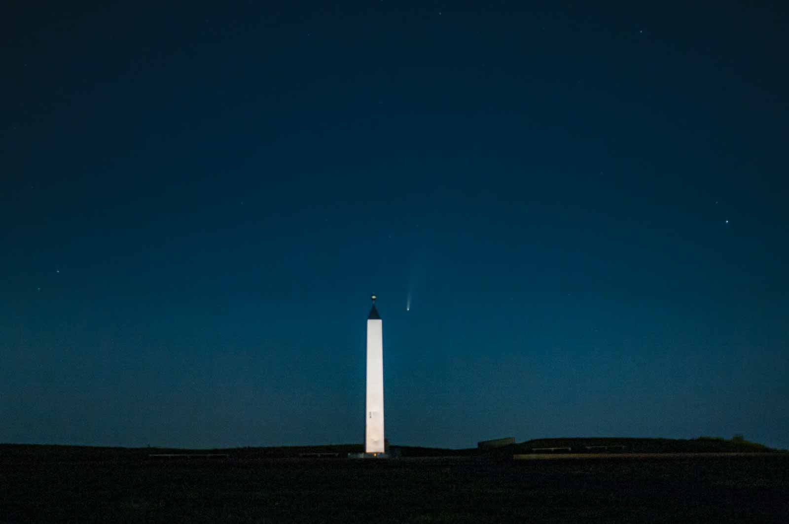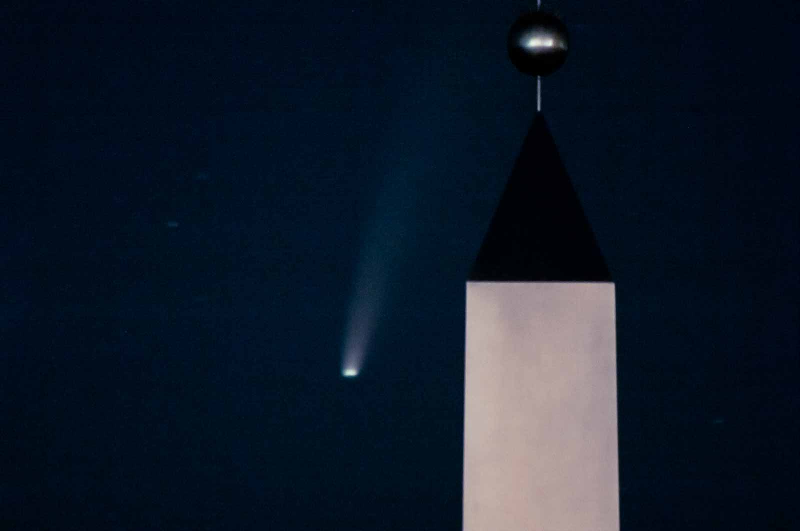 Als ich dann auch den Kometen mit blossem Auge erkennen konnte (und der war wirklich nur sehr schwer zu sichten) um dann das erste Bild von dem zu machen, waren die Strapazen des Aufstiegs wie nie gewesen. So muss sich einer fühlen, der mühsam einen Berg hochklettert und dann völlig erschöpft und fast dem Tode nah mit einer sensationellen Aussicht belohnt wird. Aber Berge werde ich garantiert nicht mehr – weder zu Fuß noch mit dem Fahrrad – hochklettern, um von dort aus zu knipsen. Nicht mit der derzeitigen Masse von Mensch und Material. Ausserdem sind die dafür geeigneten echten Berge ohnehin viel zu weit vom musealen Residenzia entfernt.
