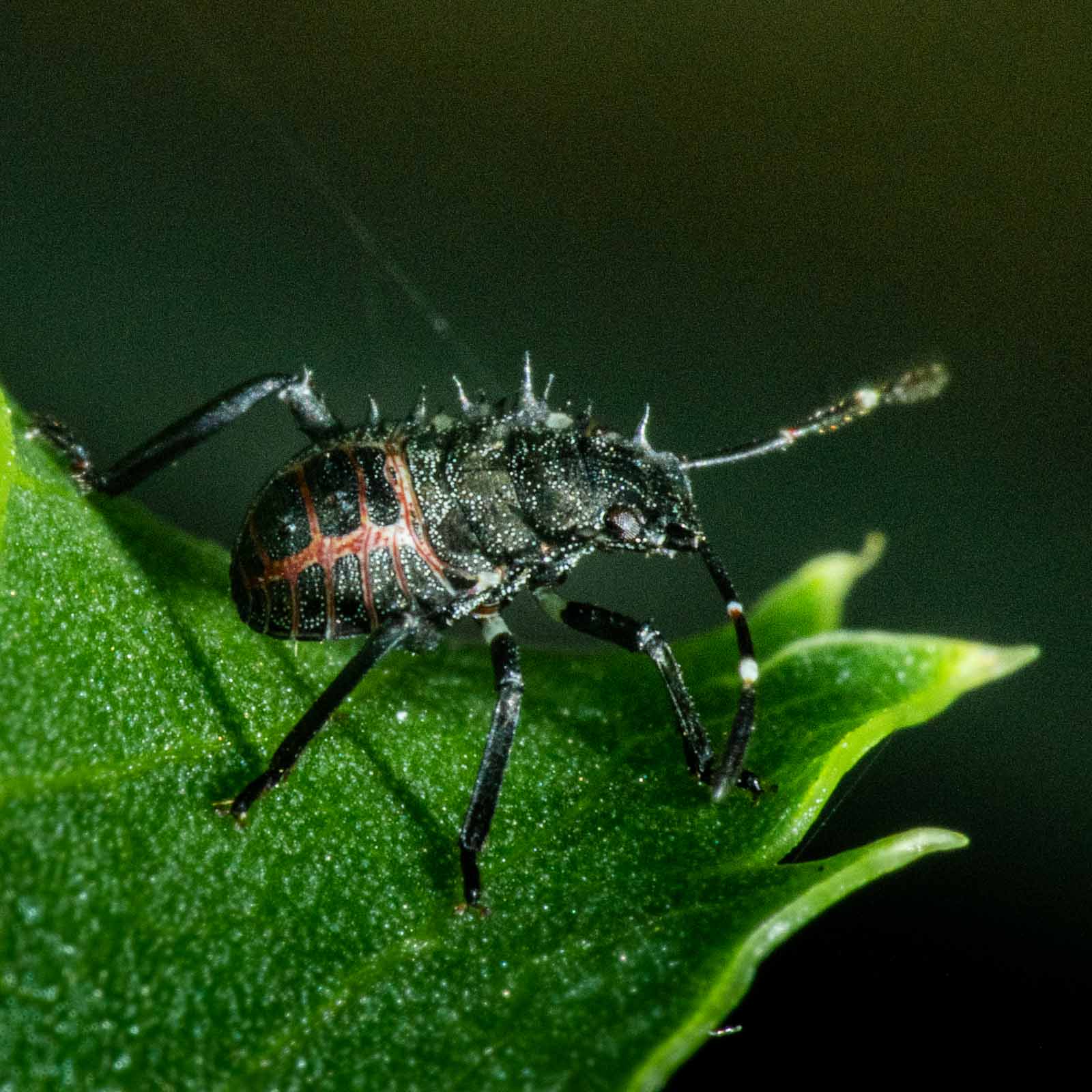 Bis ich heute dann entdeckt habe, dass die Marmorierte Baumwanze es sich hier gemütlich gemacht hat.