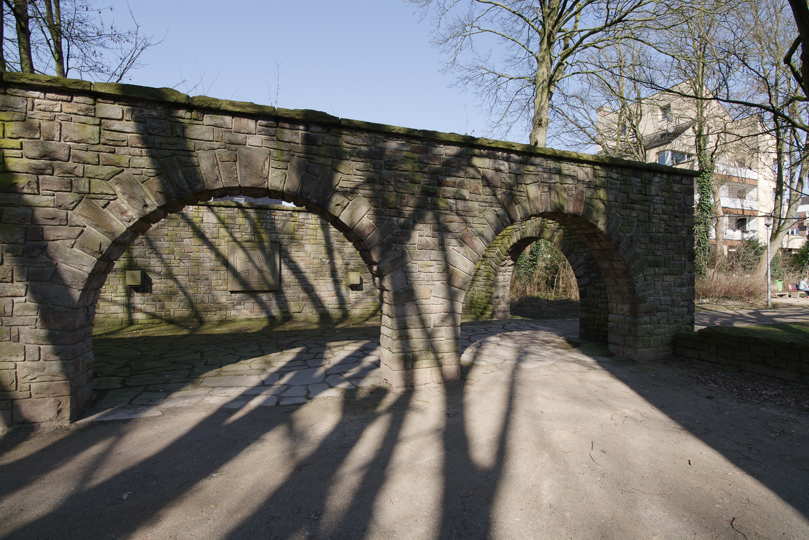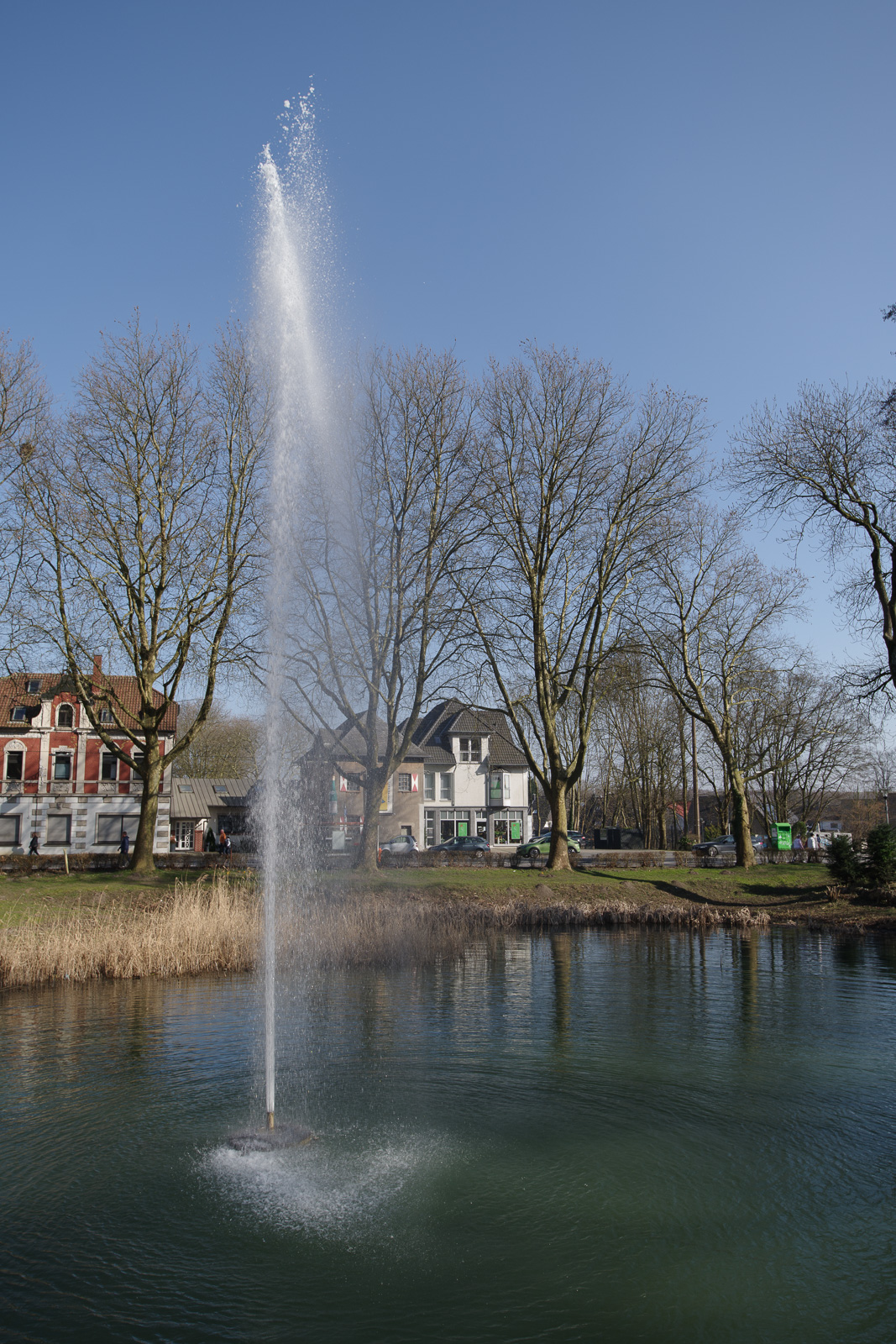 Bevor wir den temporär als Kirmesplatz umgewidmeten Marktplatz – vermutlich wie am Rathaus in REh auch ein sogen. Mehrzweckplatz – ansteuerten, hatten wir uns in einem nahegelegenen Park mit einem Springbrunnen und einem Kriegsdenkmal etwas umgesehen.