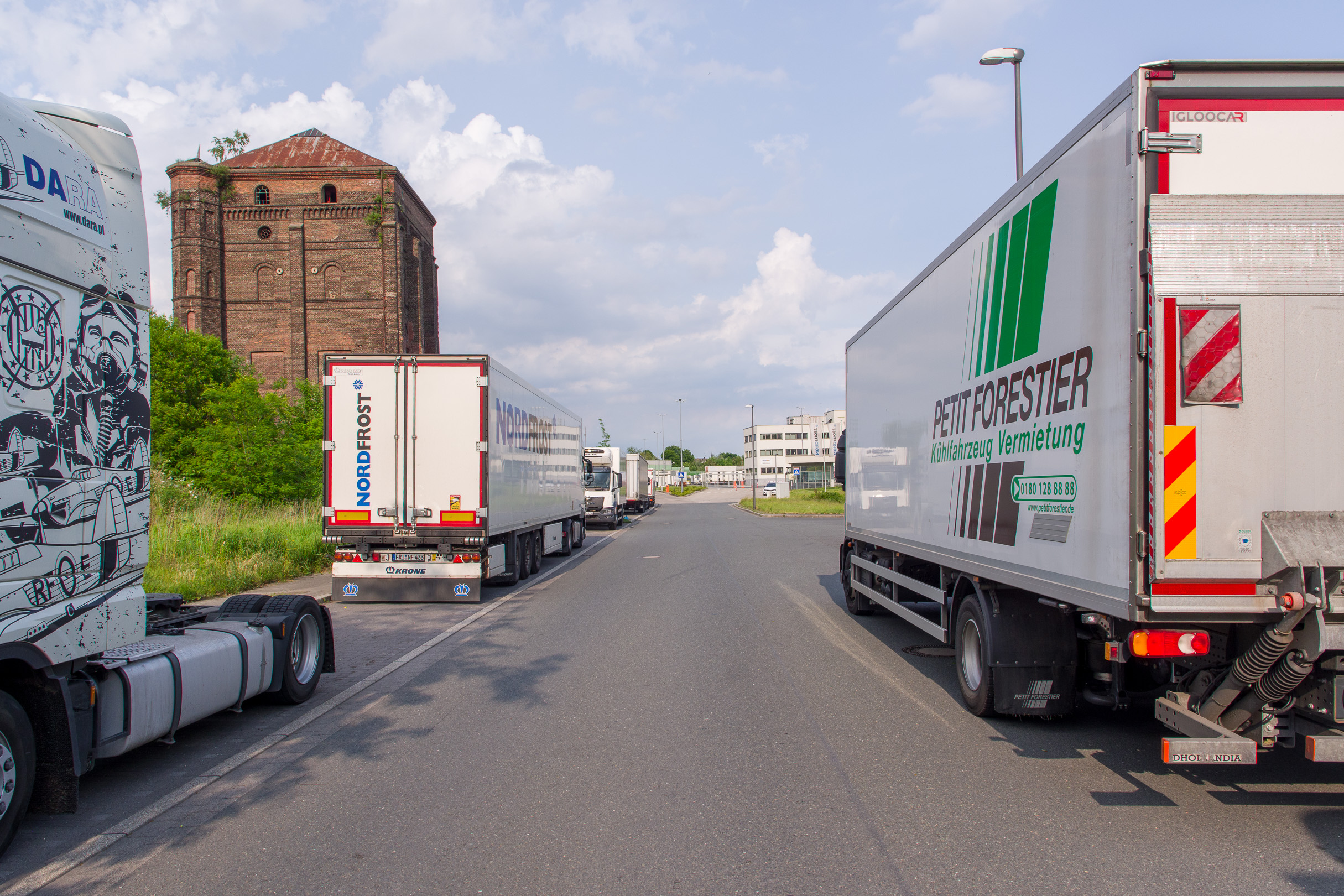 Sehr lobenswert, und hinsichtlich des enormen Geräuschpegels durch die Klimakompressoren auf den Ladungsanhängern und den LKWs durchaus zur Nachahmung empfohlen. Sowas würde ich hier an der Hauptstraße und ringsum zu den Nachbarhäusern auch sehr begrüßen.