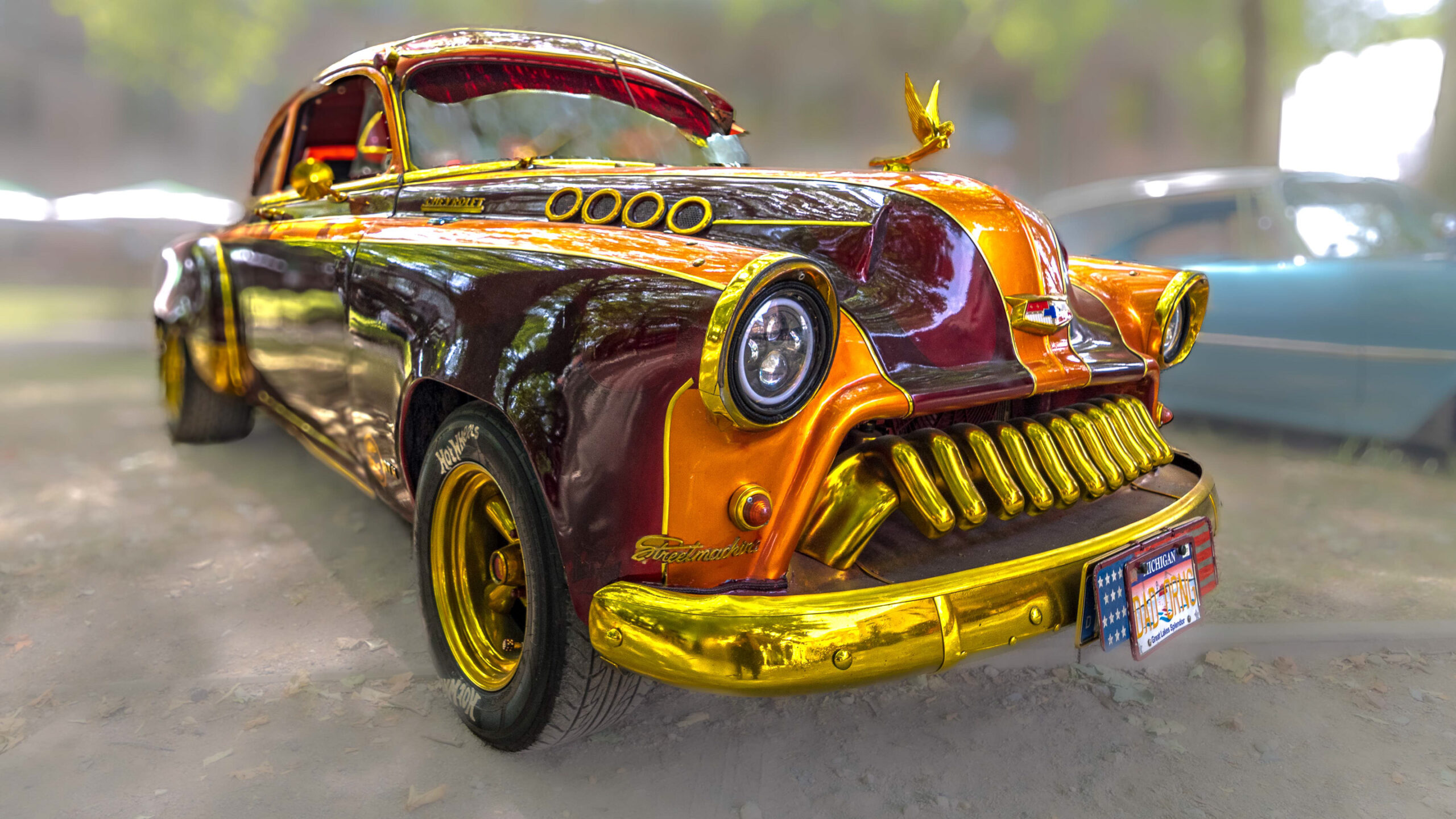 An diesem Tag war hier auf den Parkplätzen mal wieder eine Show amiländischer Dekadenz-Blechkisten angesagt. Die meisten dieser schlecht konzipierten aber dafür sündhaft teuren Exponate sind neueren Datums und somit keiner Beachtung wert. Bis auf Hubraum und Durst haben die neuen Amikarren ja nix zu bieten.
