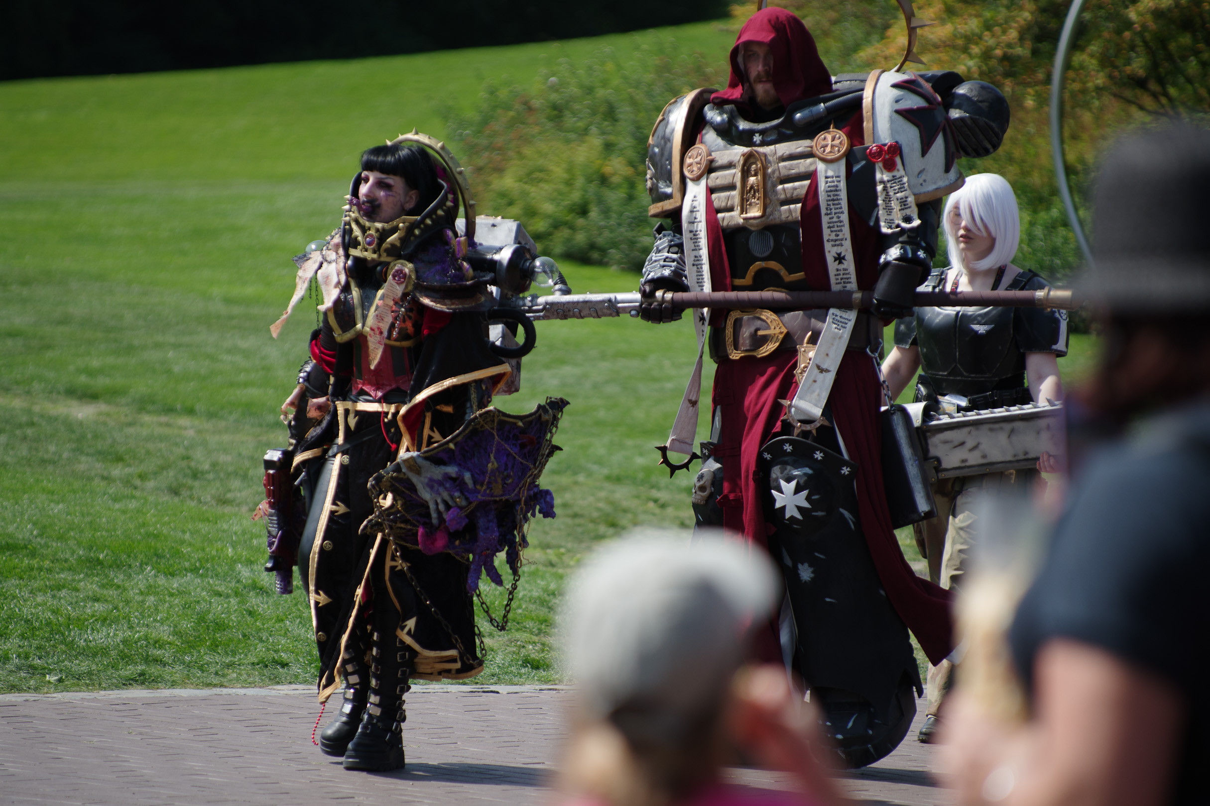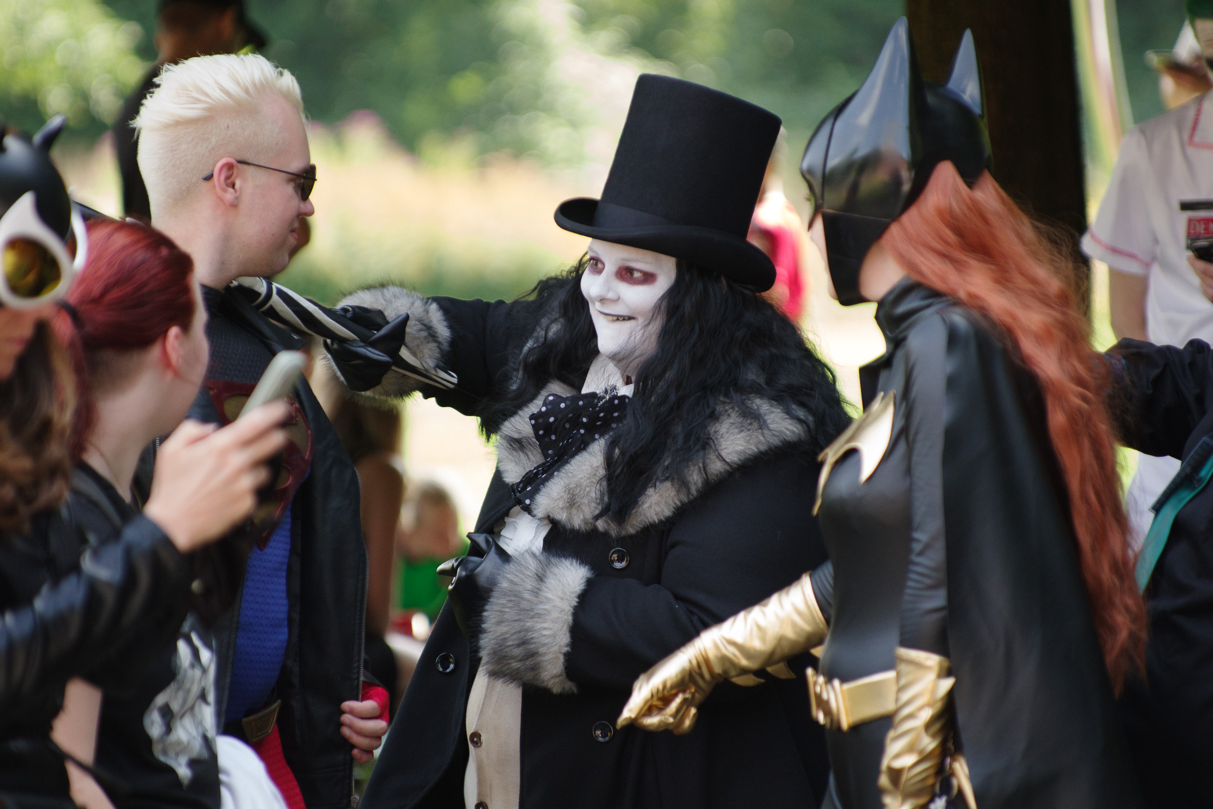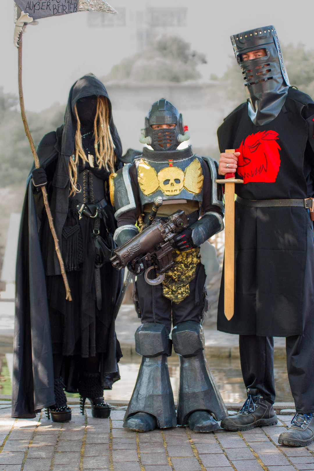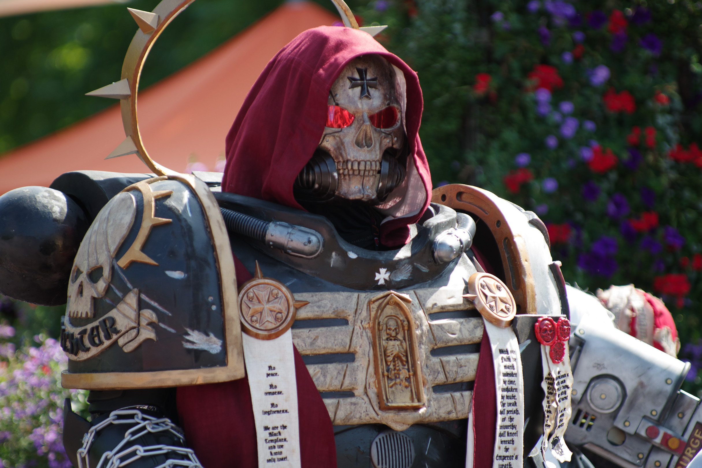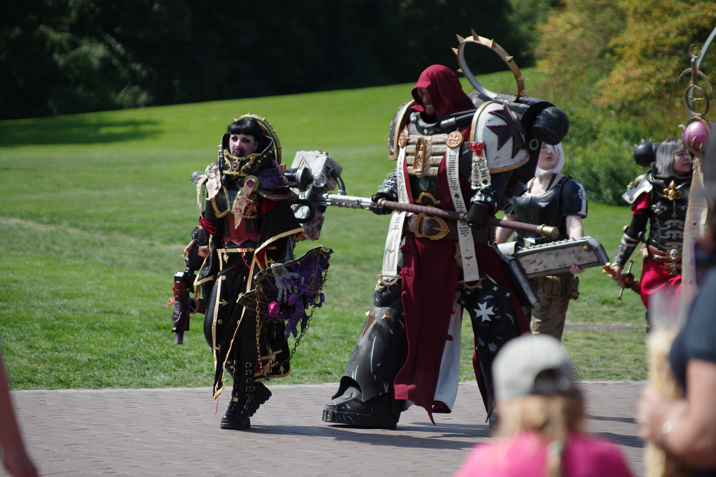 Die zu Beginn von mir erhaschten Trophäen bewegten sich bereitwillig aber zumeist umringt von anderen Besuchern im Bereich des Haupteingangs. Das machte die Sache nicht einfacher. Licht, Schatten und andere menschliche Störungen und vor allem meine eigene Unzulänglichkeit (ich musste mich in das Motivthema „menschenähnliche Gestalt“ erst mal einarbeiten und hatte in den ersten Bildern zuviel Himmel und zu wenig Beine drauf) verhinderten nur zu oft die begehrten Perspektiven auf die Maskeraden der Teilnehmer.