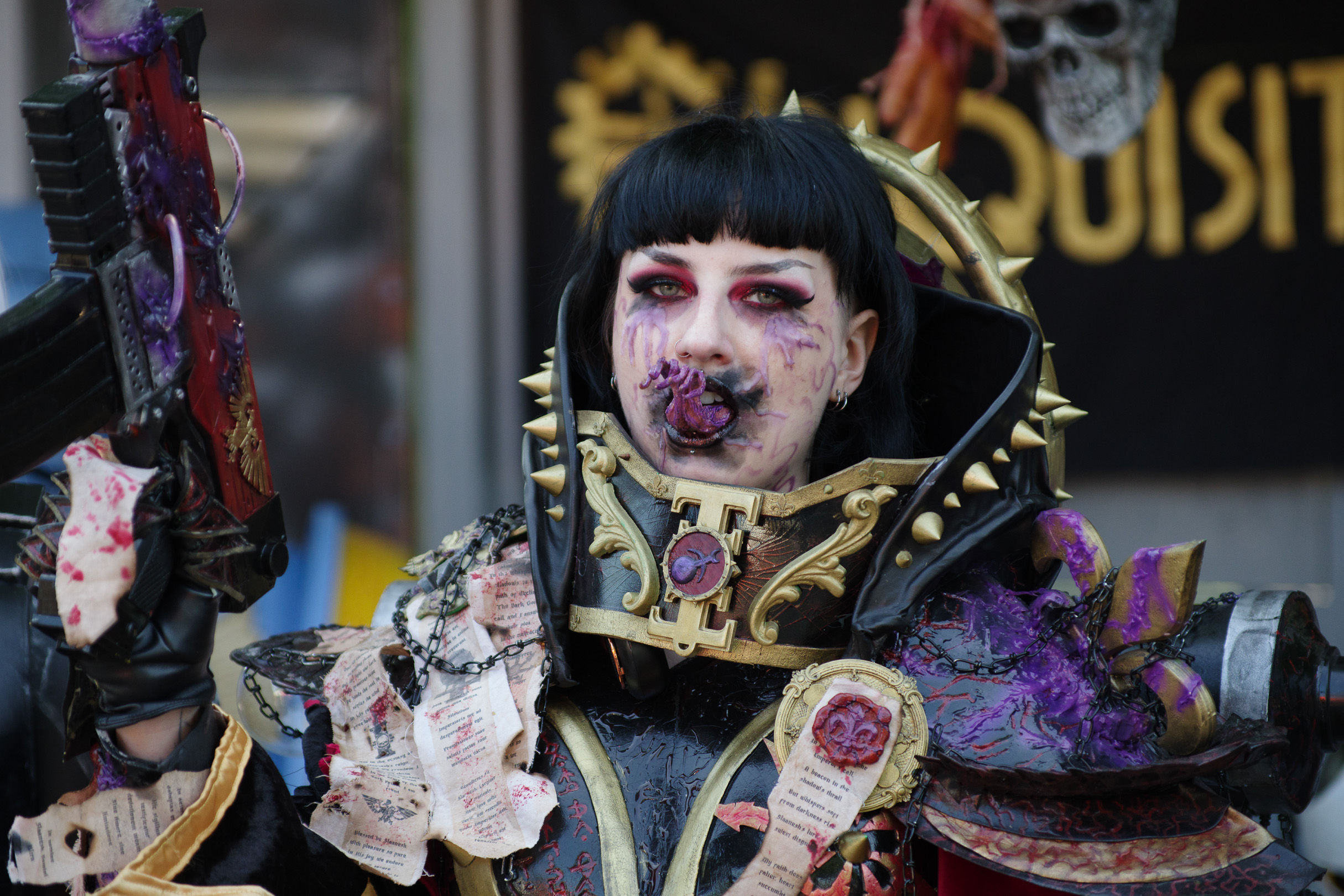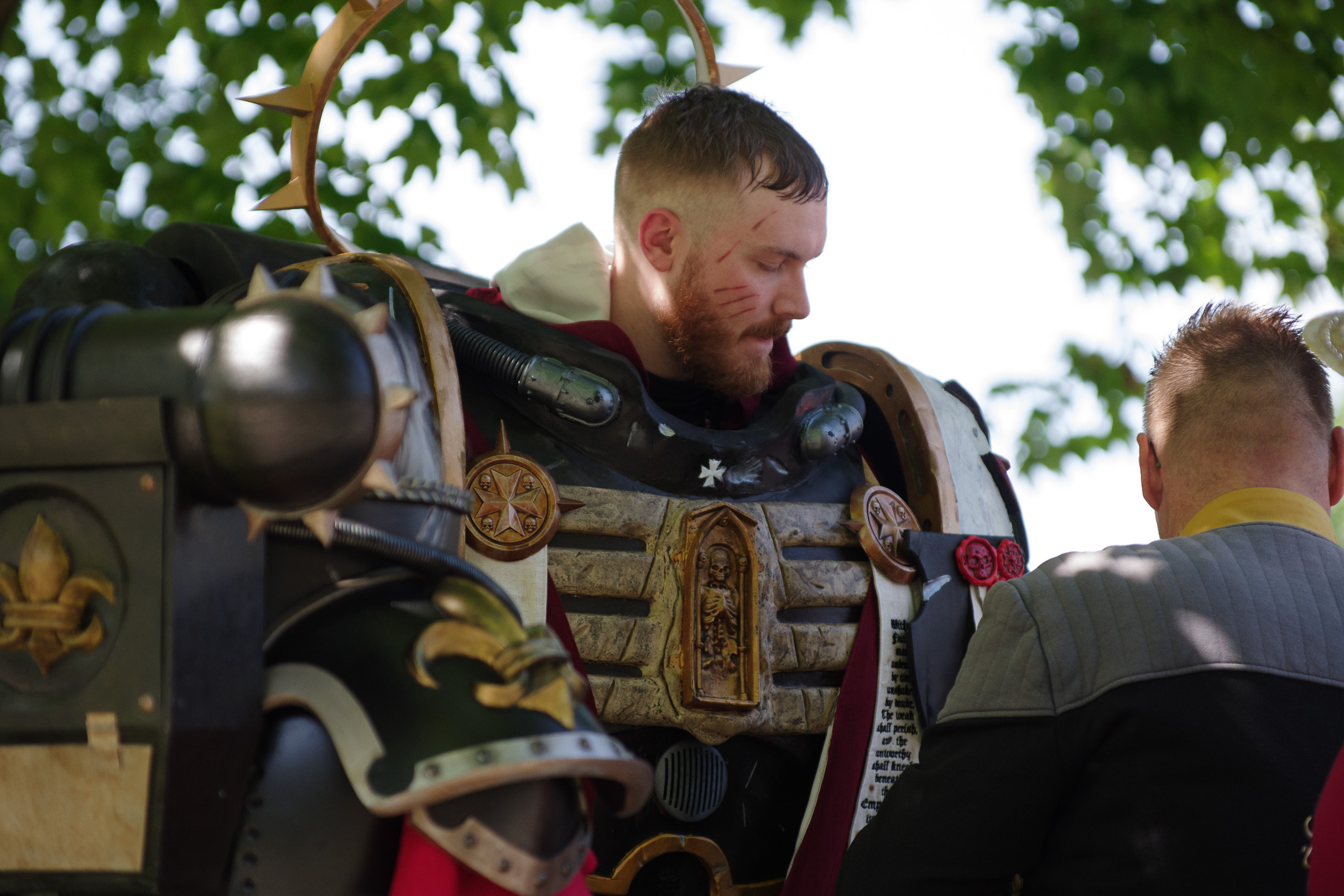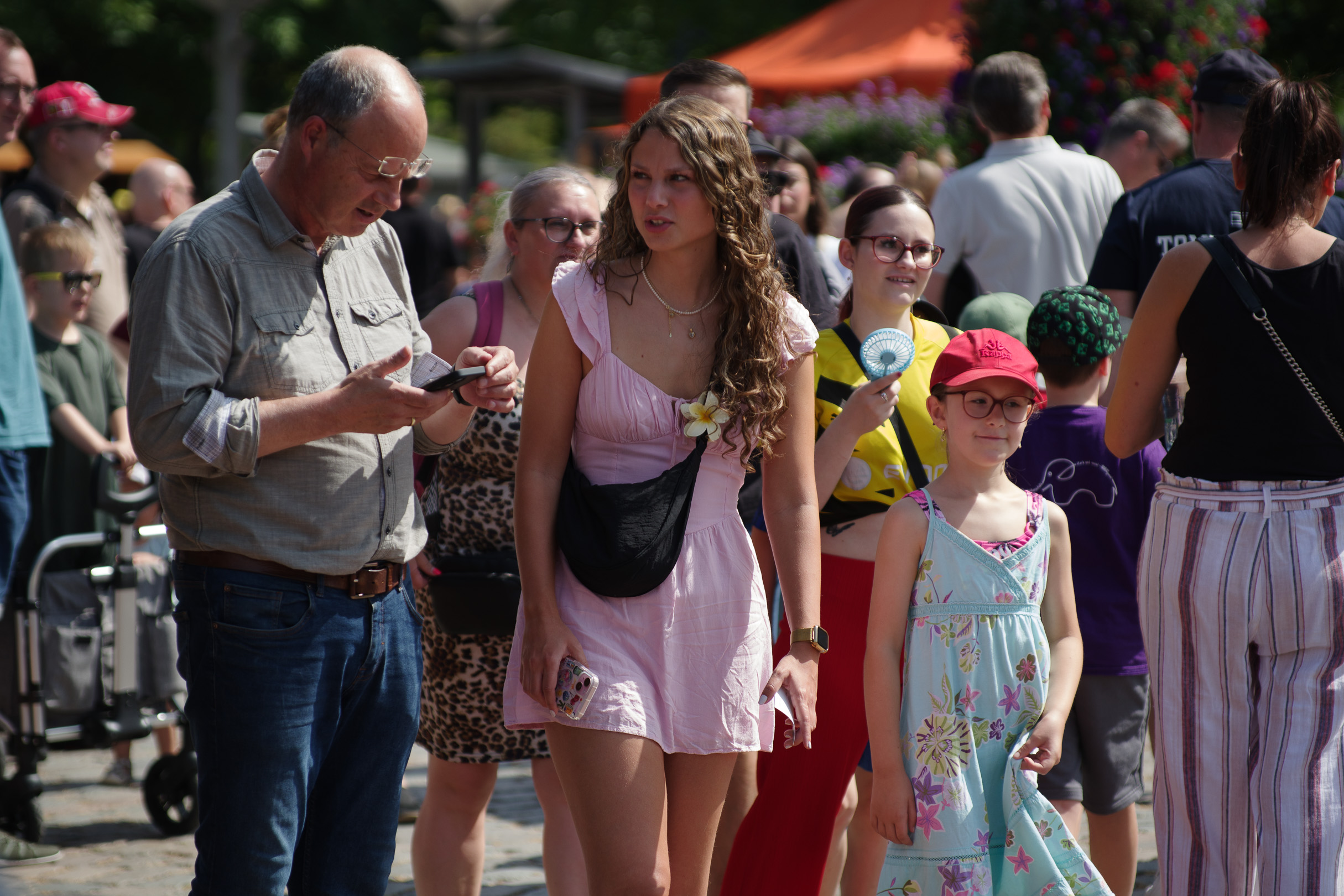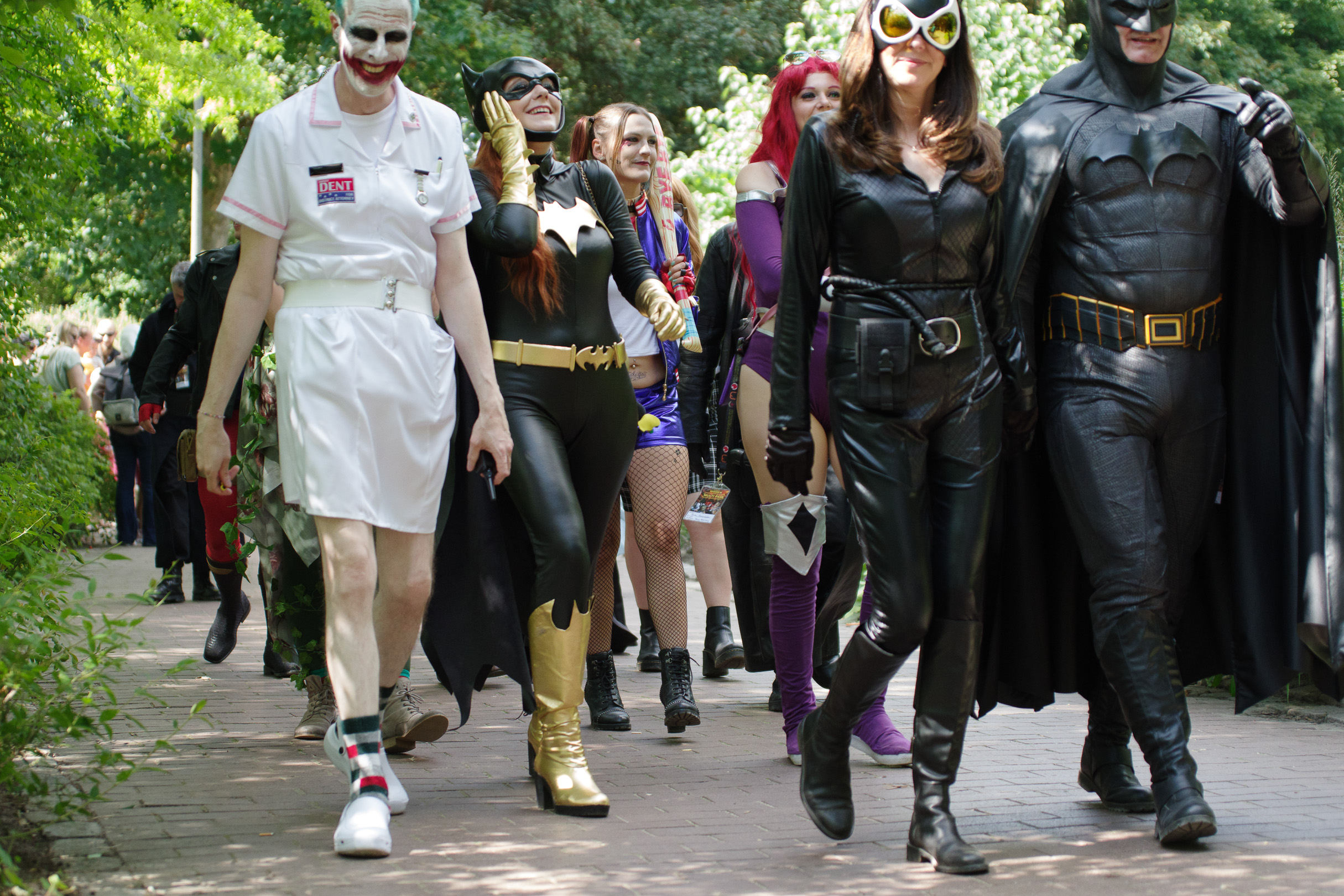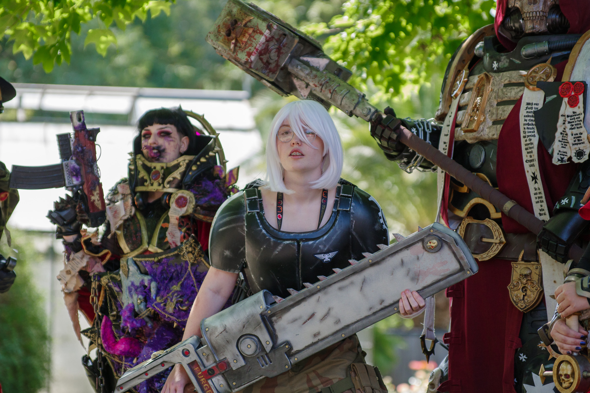 Die zu Beginn von mir erhaschten Trophäen bewegten sich bereitwillig aber zumeist umringt von anderen Besuchern im Bereich des Haupteingangs. Das machte die Sache nicht einfacher. Licht, Schatten und andere menschliche Störungen und vor allem meine eigene Unzulänglichkeit (ich musste mich in das Motivthema „menschenähnliche Gestalt“ erst mal einarbeiten und hatte in den ersten Bildern zuviel Himmel und zu wenig Beine drauf) verhinderten nur zu oft die begehrten Perspektiven auf die Maskeraden der Teilnehmer.