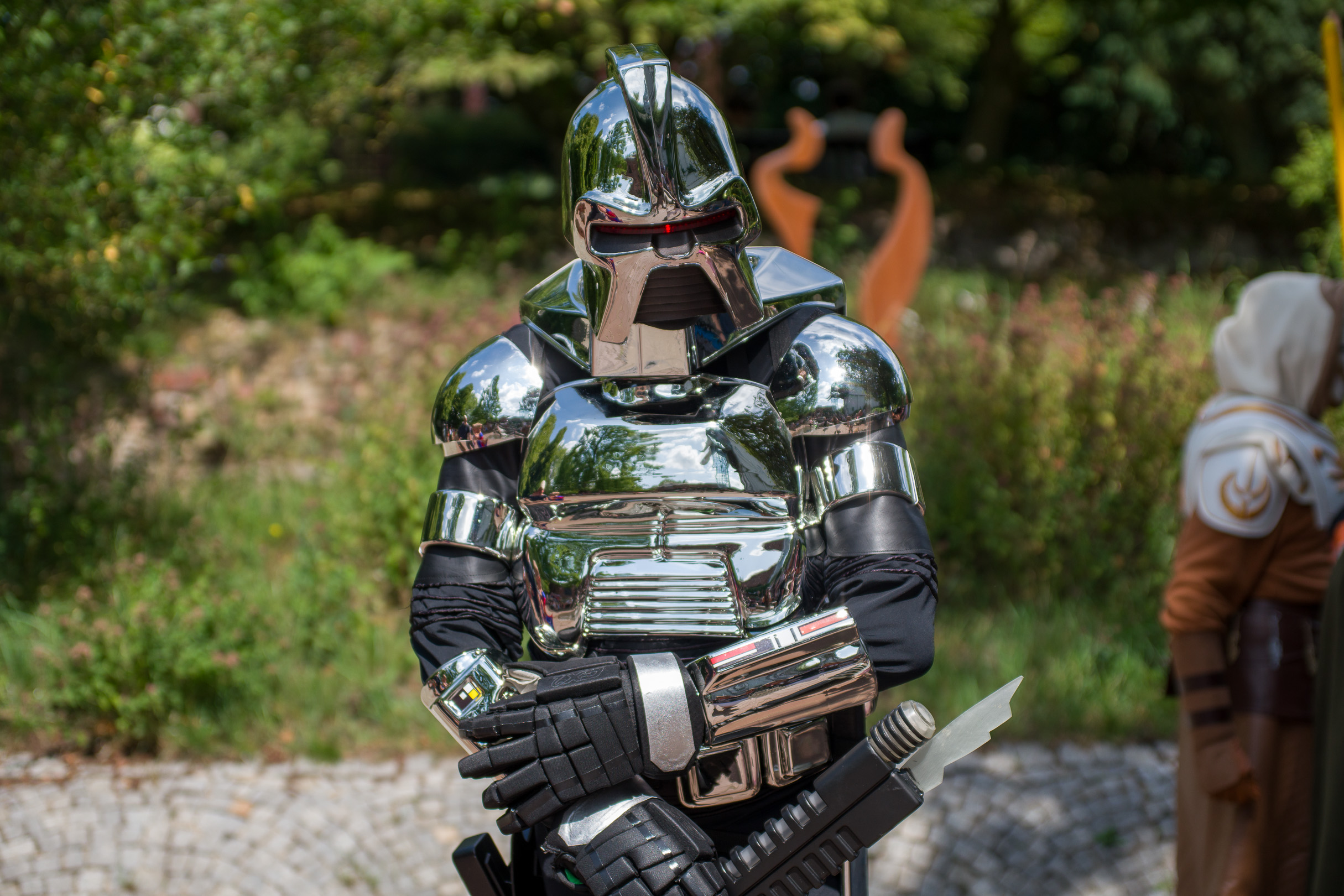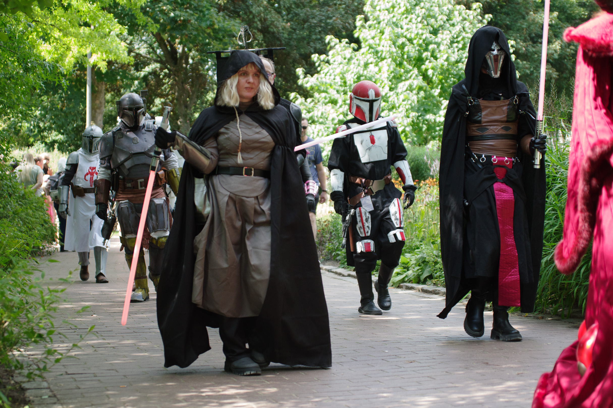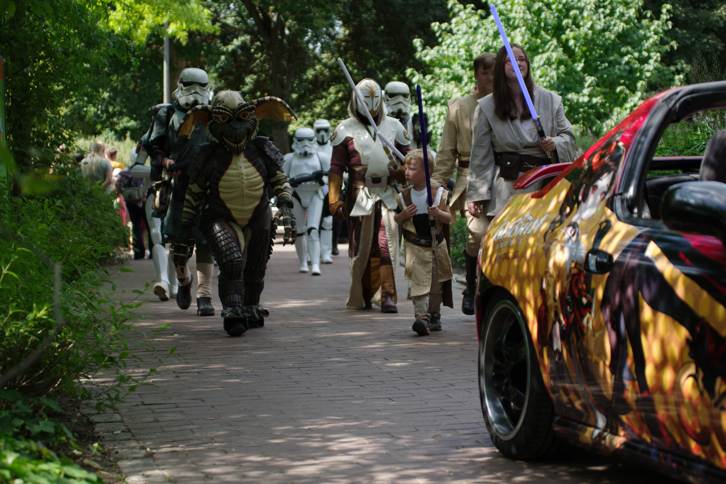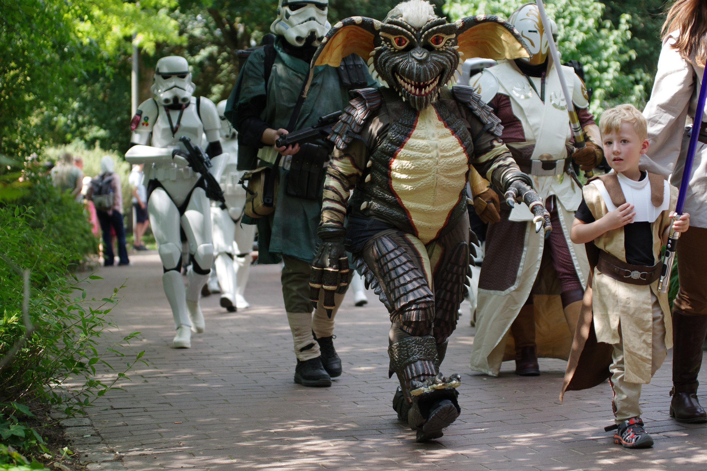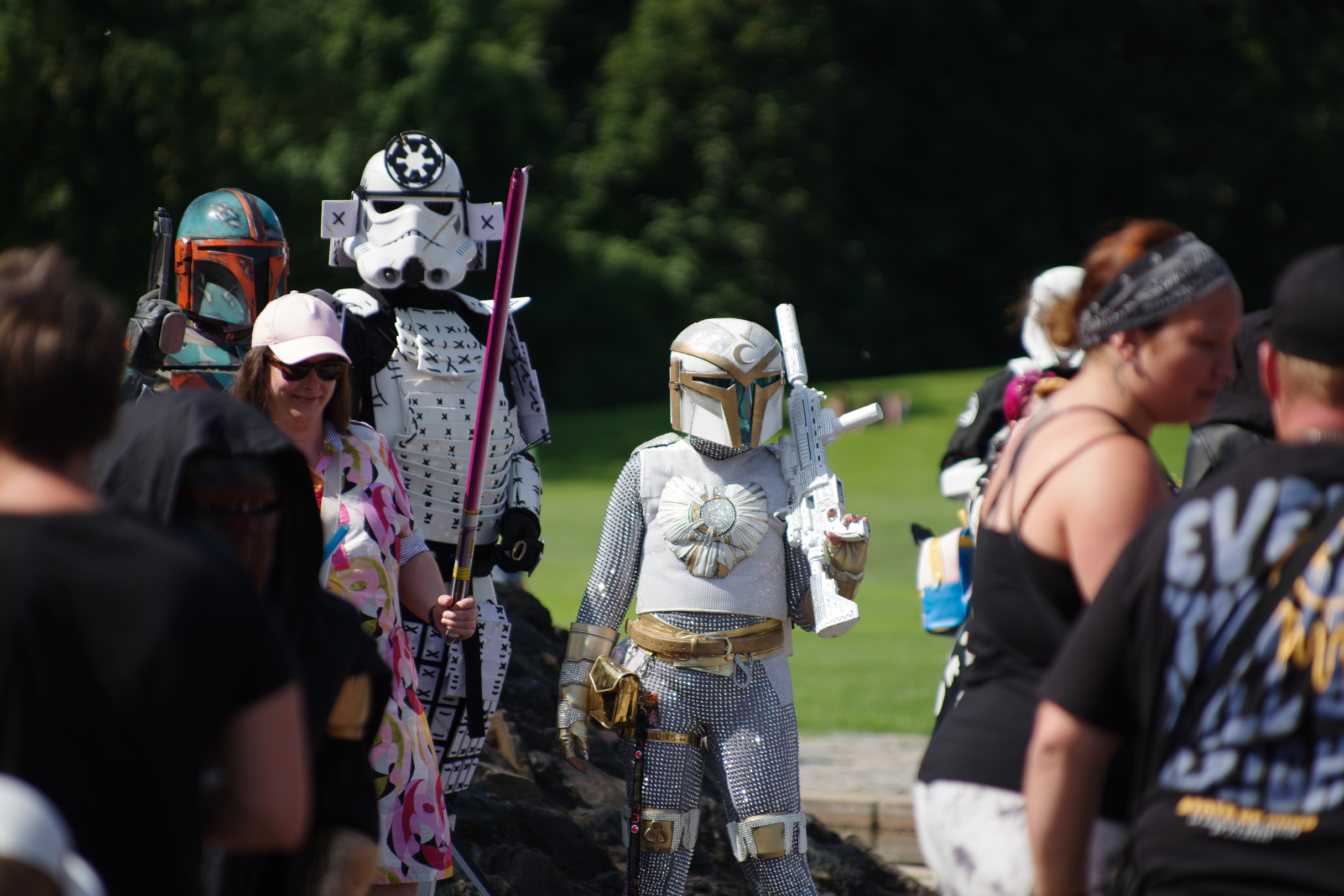 Trotz der zeitigen Abreise waren wir keinesfalls die ersten, die einen Parkplatz suchten. Andere hatten heute die gleiche Idee. Zu Recht, wie sich kurz darauf für mich herausstellte, obwohl ich ja kein ausgesprochener StarWars-Fan bin, sondern eher so mit Terminator und Riddik ’ne etwas andere Vorliebe für SciFi-Filmthemen habe.