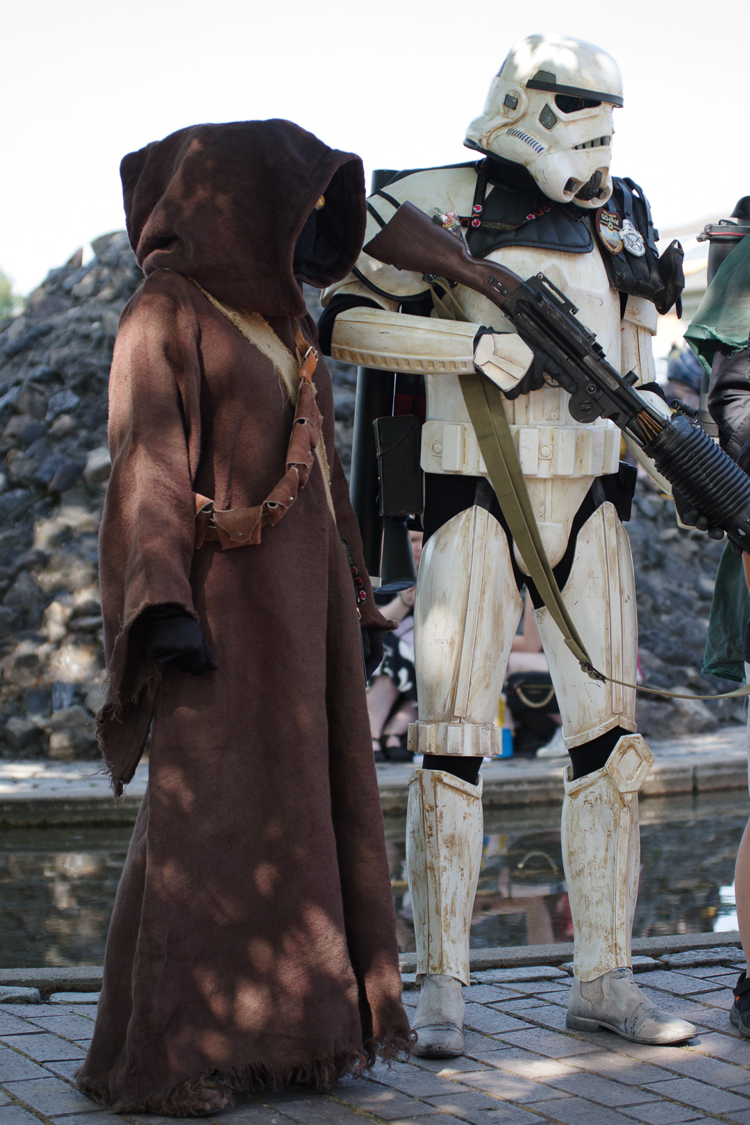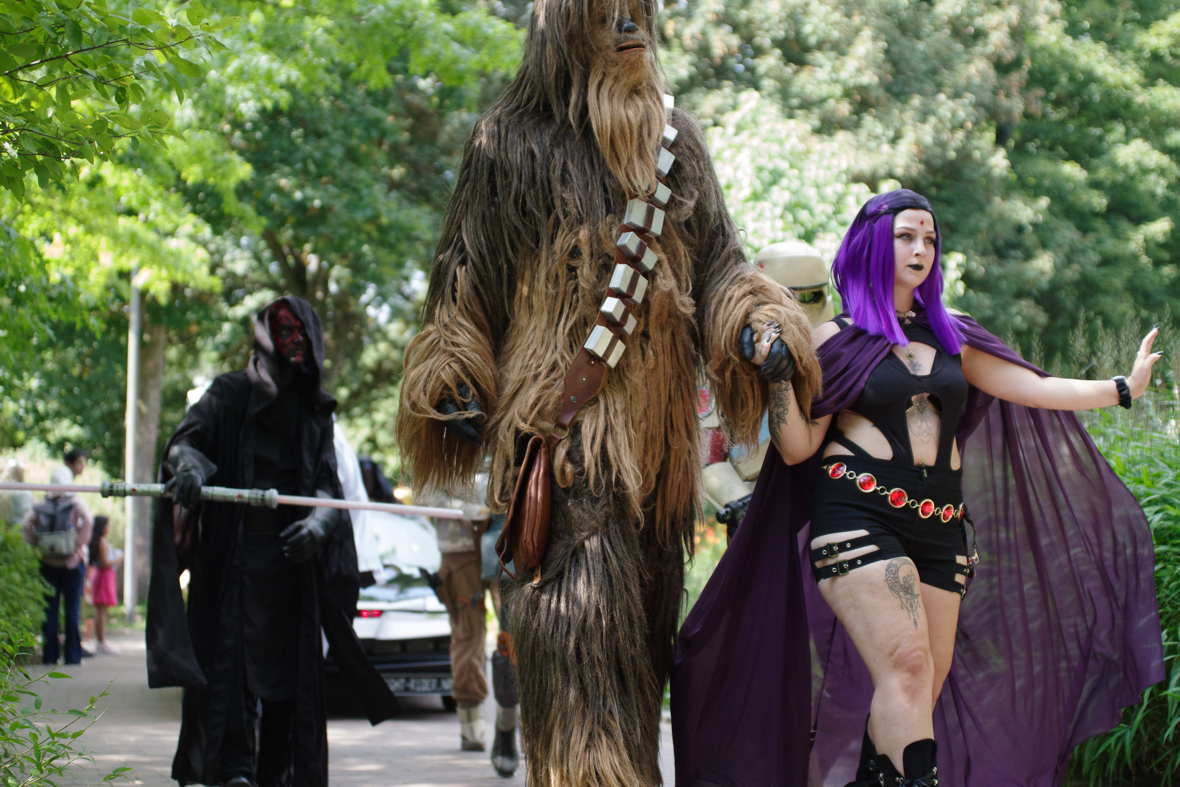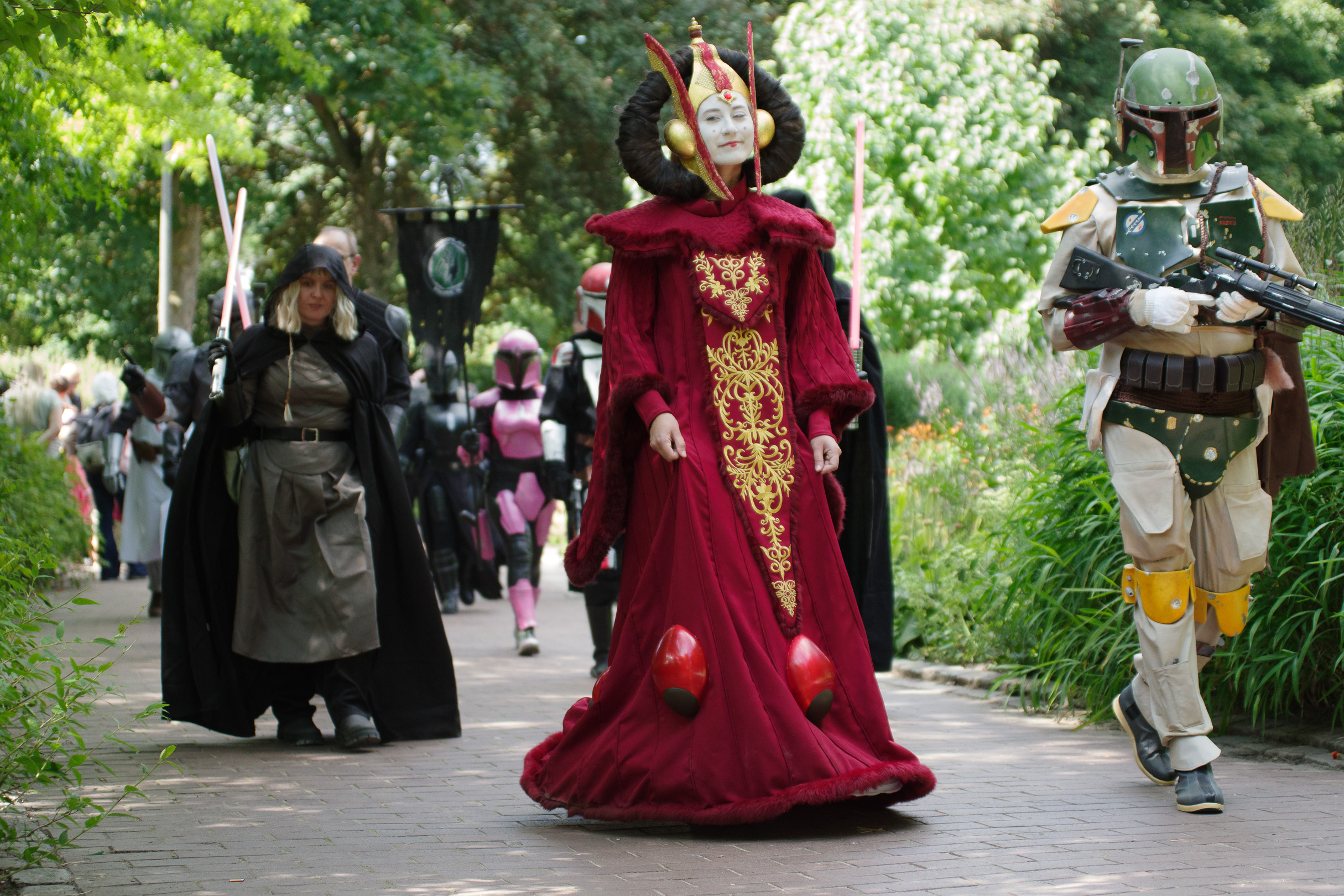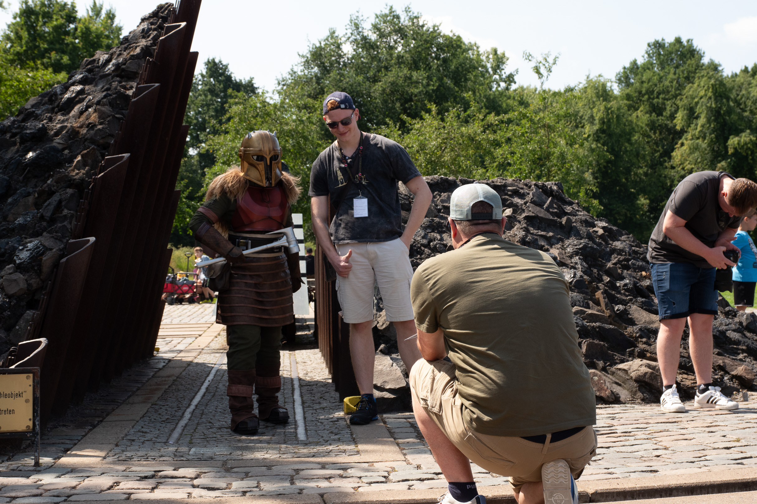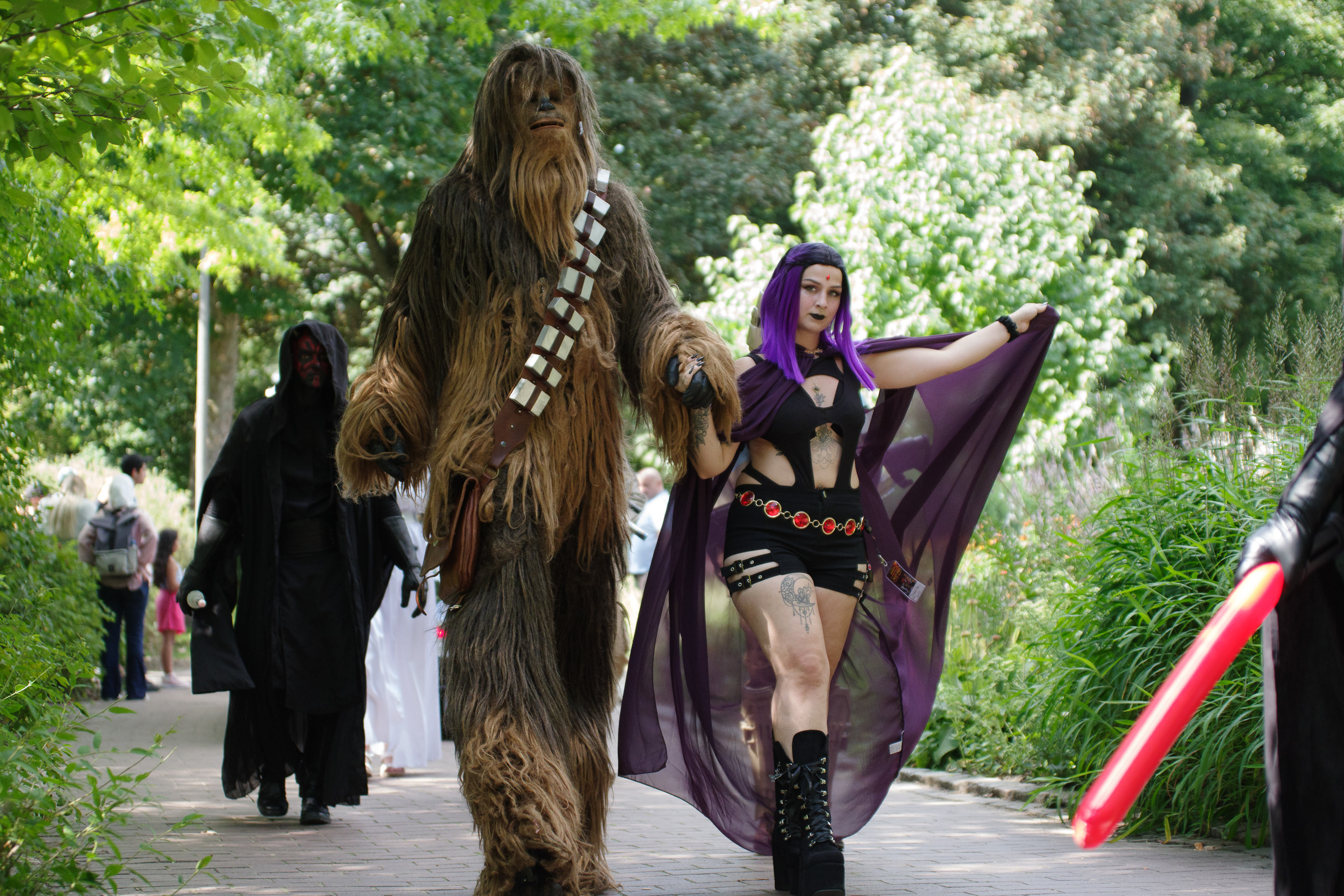 Trotz der zeitigen Abreise waren wir keinesfalls die ersten, die einen Parkplatz suchten. Andere hatten heute die gleiche Idee. Zu Recht, wie sich kurz darauf für mich herausstellte, obwohl ich ja kein ausgesprochener StarWars-Fan bin, sondern eher so mit Terminator und Riddik ’ne etwas andere Vorliebe für SciFi-Filmthemen habe.