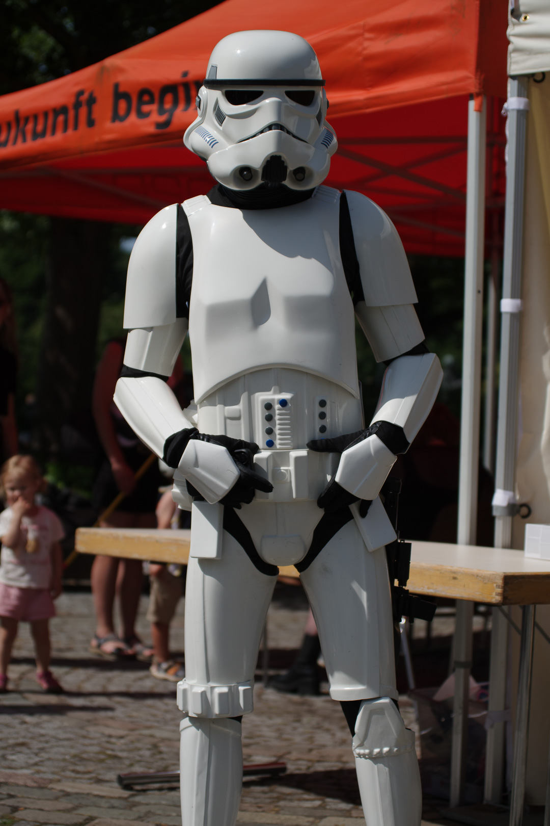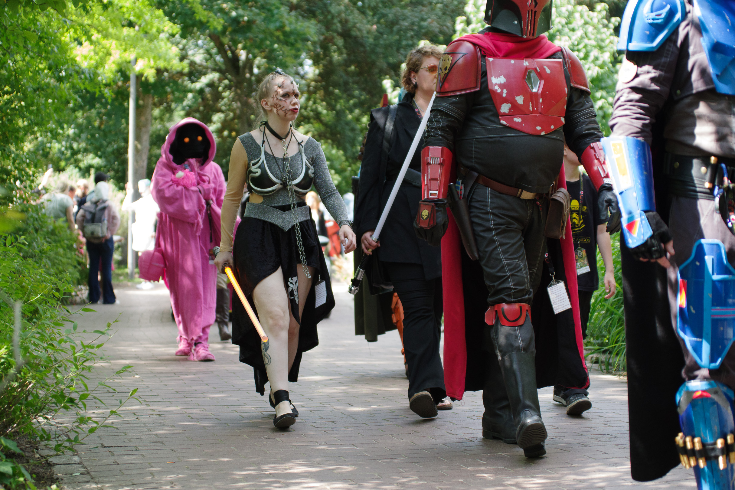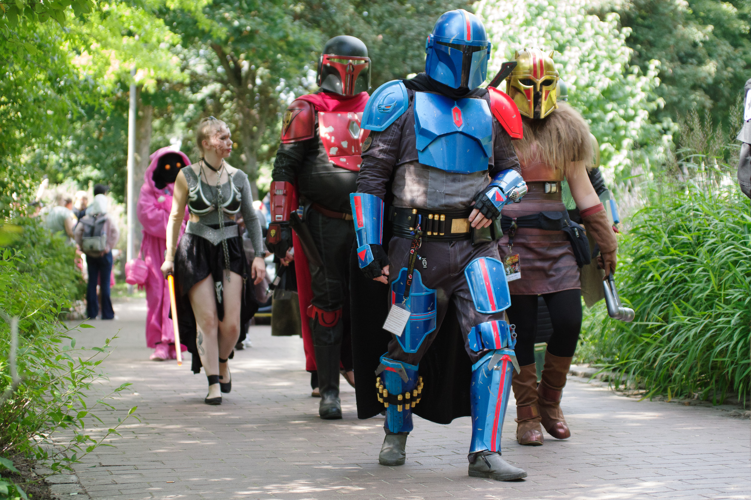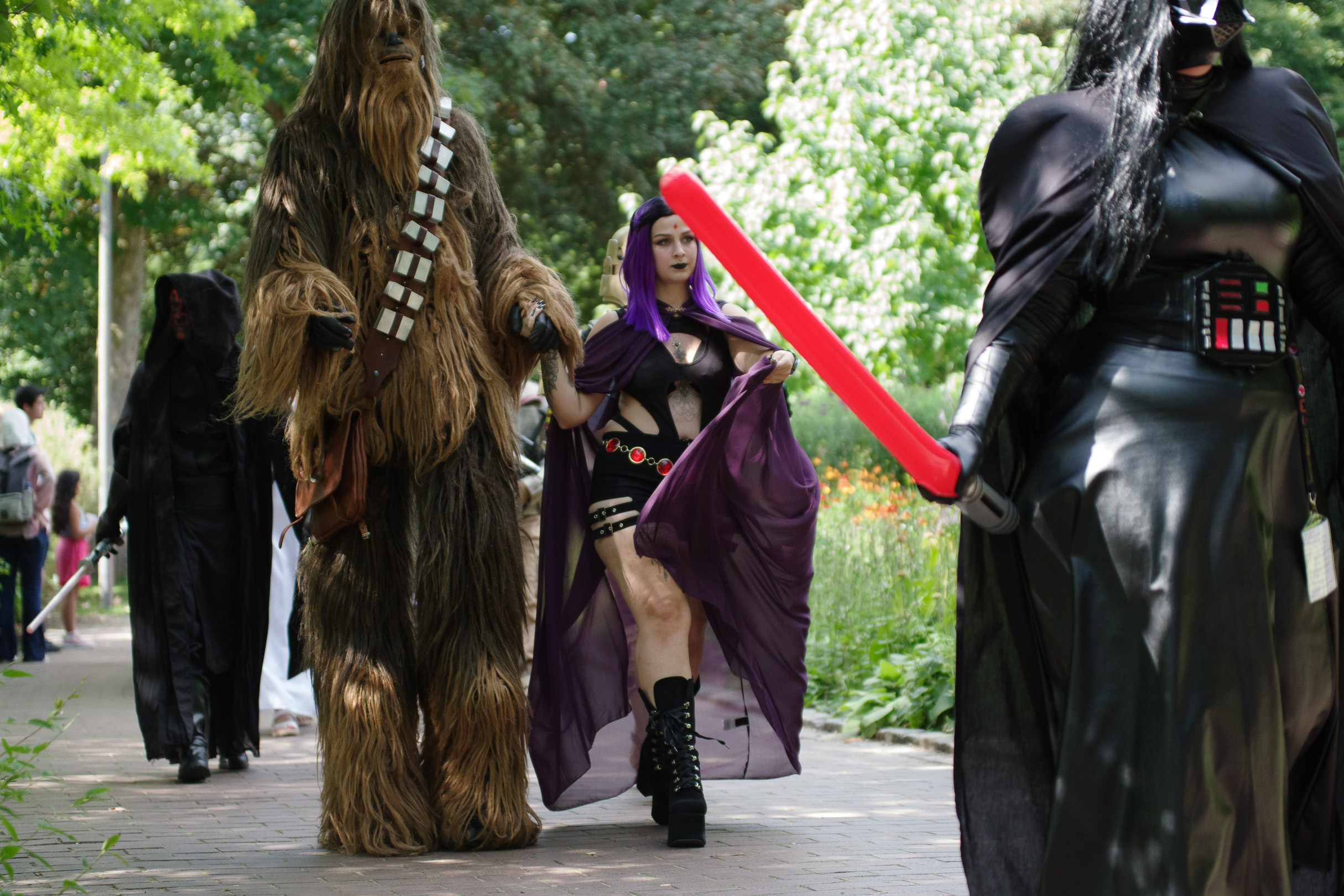 Trotz der zeitigen Abreise waren wir keinesfalls die ersten, die einen Parkplatz suchten. Andere hatten heute die gleiche Idee. Zu Recht, wie sich kurz darauf für mich herausstellte, obwohl ich ja kein ausgesprochener StarWars-Fan bin, sondern eher so mit Terminator und Riddik ’ne etwas andere Vorliebe für SciFi-Filmthemen habe.