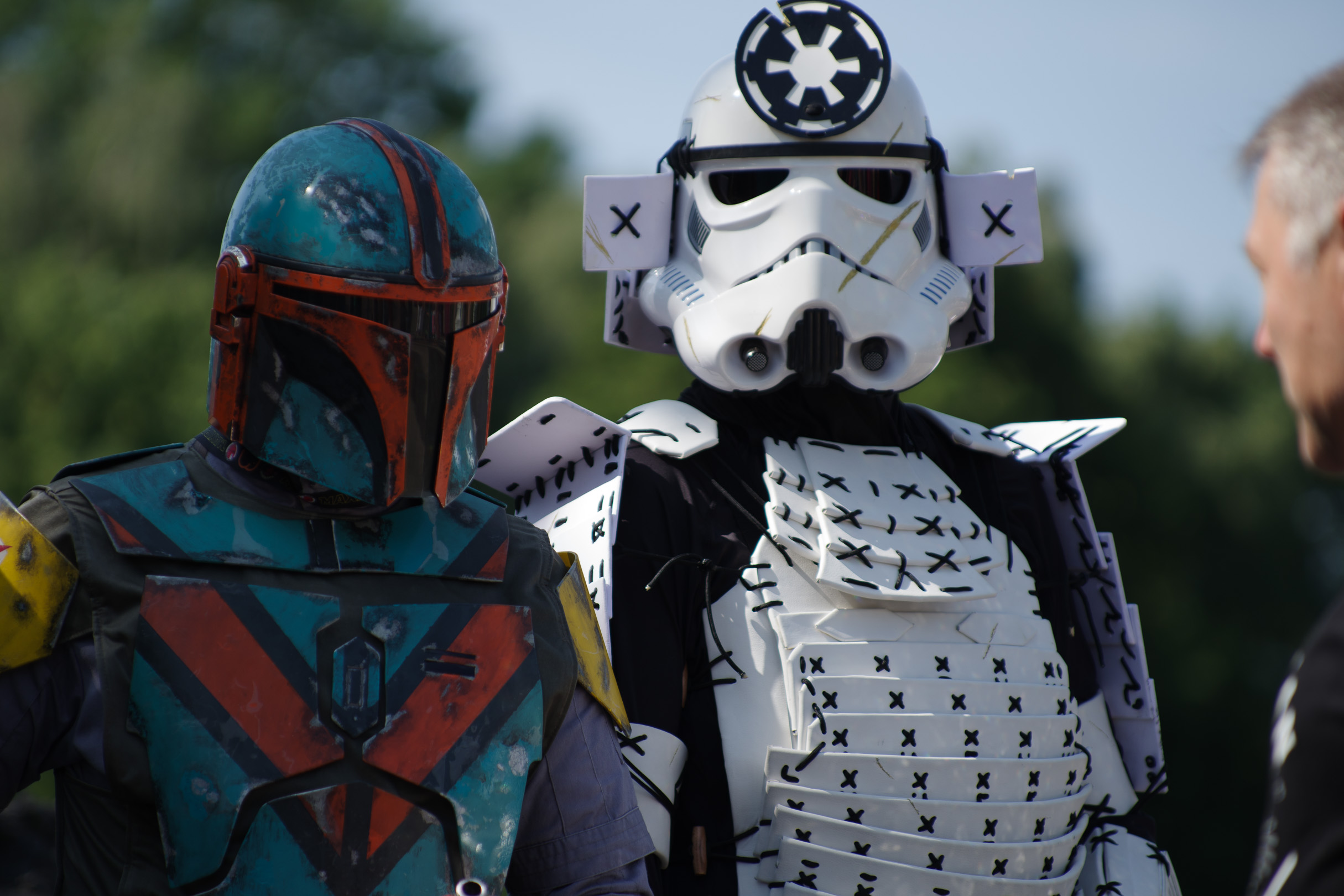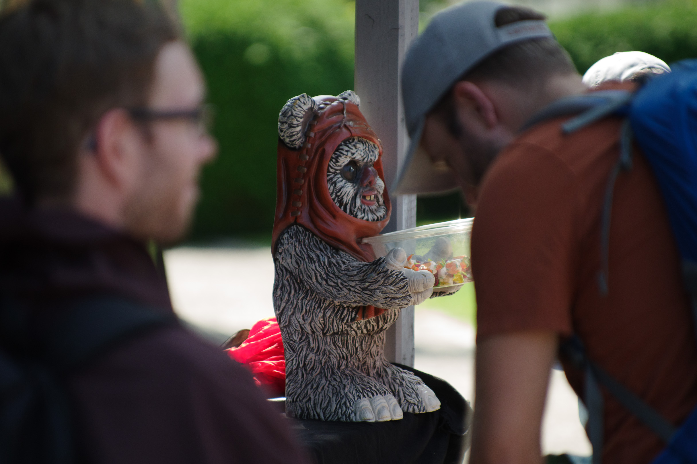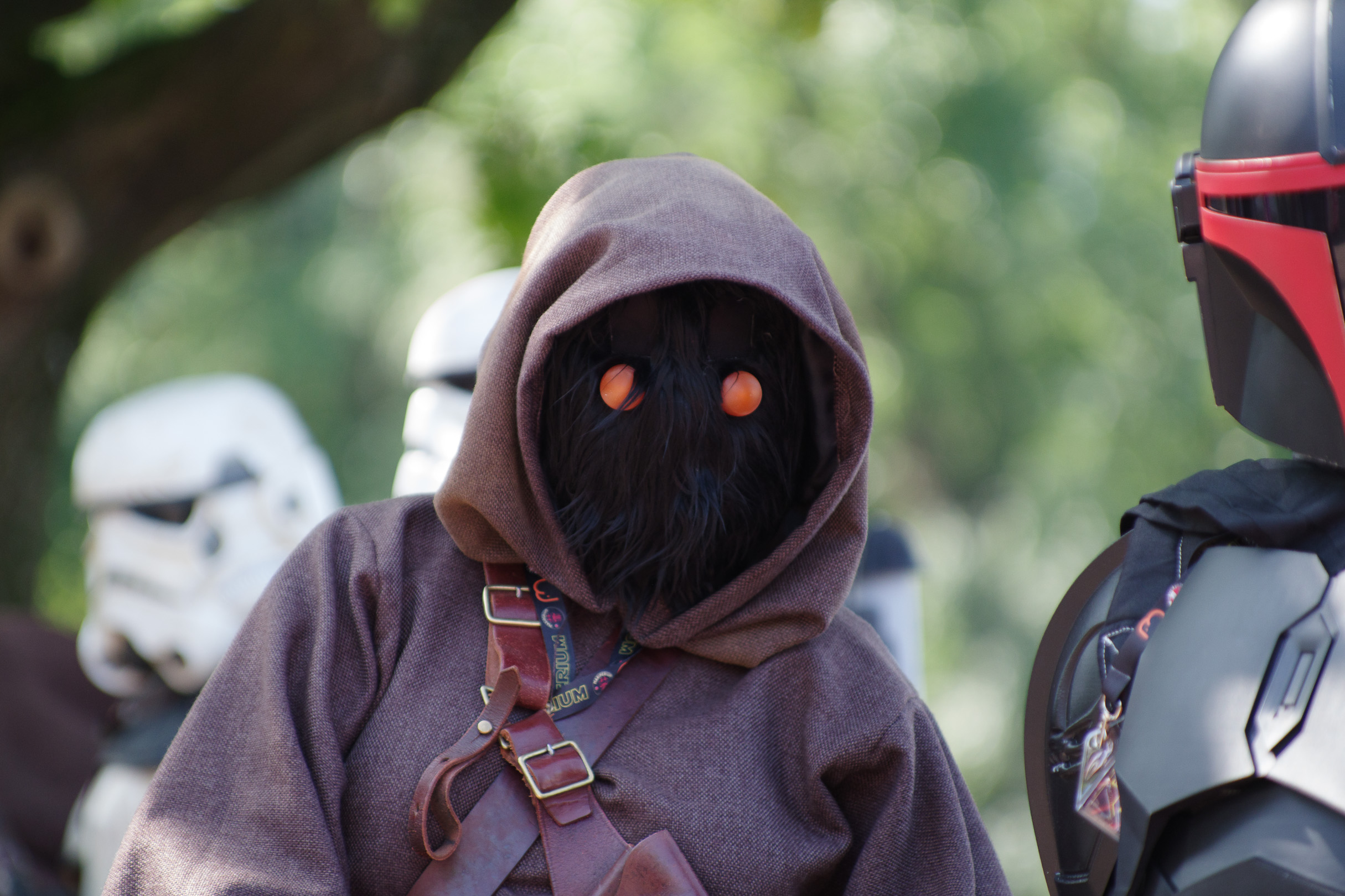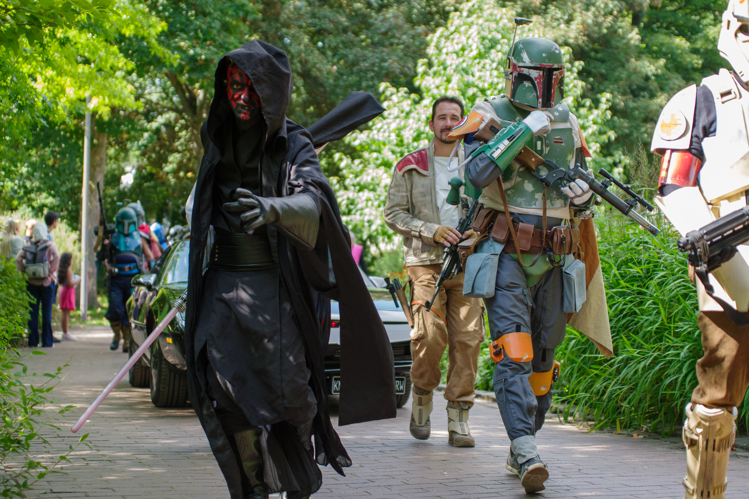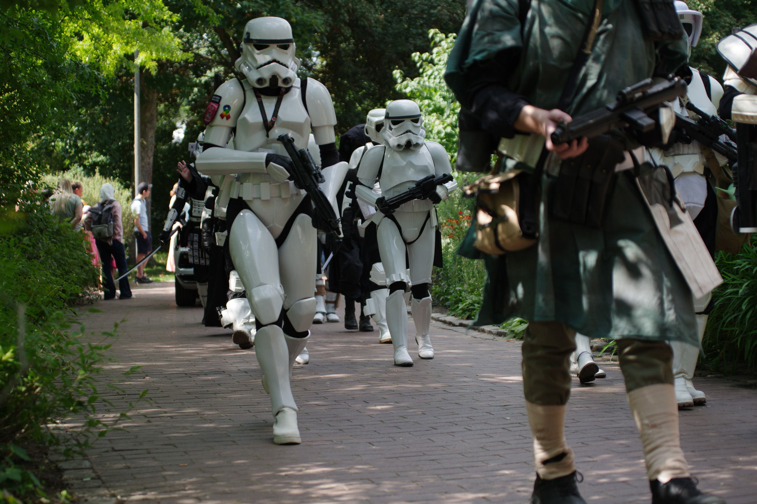 Trotz der zeitigen Abreise waren wir keinesfalls die ersten, die einen Parkplatz suchten. Andere hatten heute die gleiche Idee. Zu Recht, wie sich kurz darauf für mich herausstellte, obwohl ich ja kein ausgesprochener StarWars-Fan bin, sondern eher so mit Terminator und Riddik ’ne etwas andere Vorliebe für SciFi-Filmthemen habe.