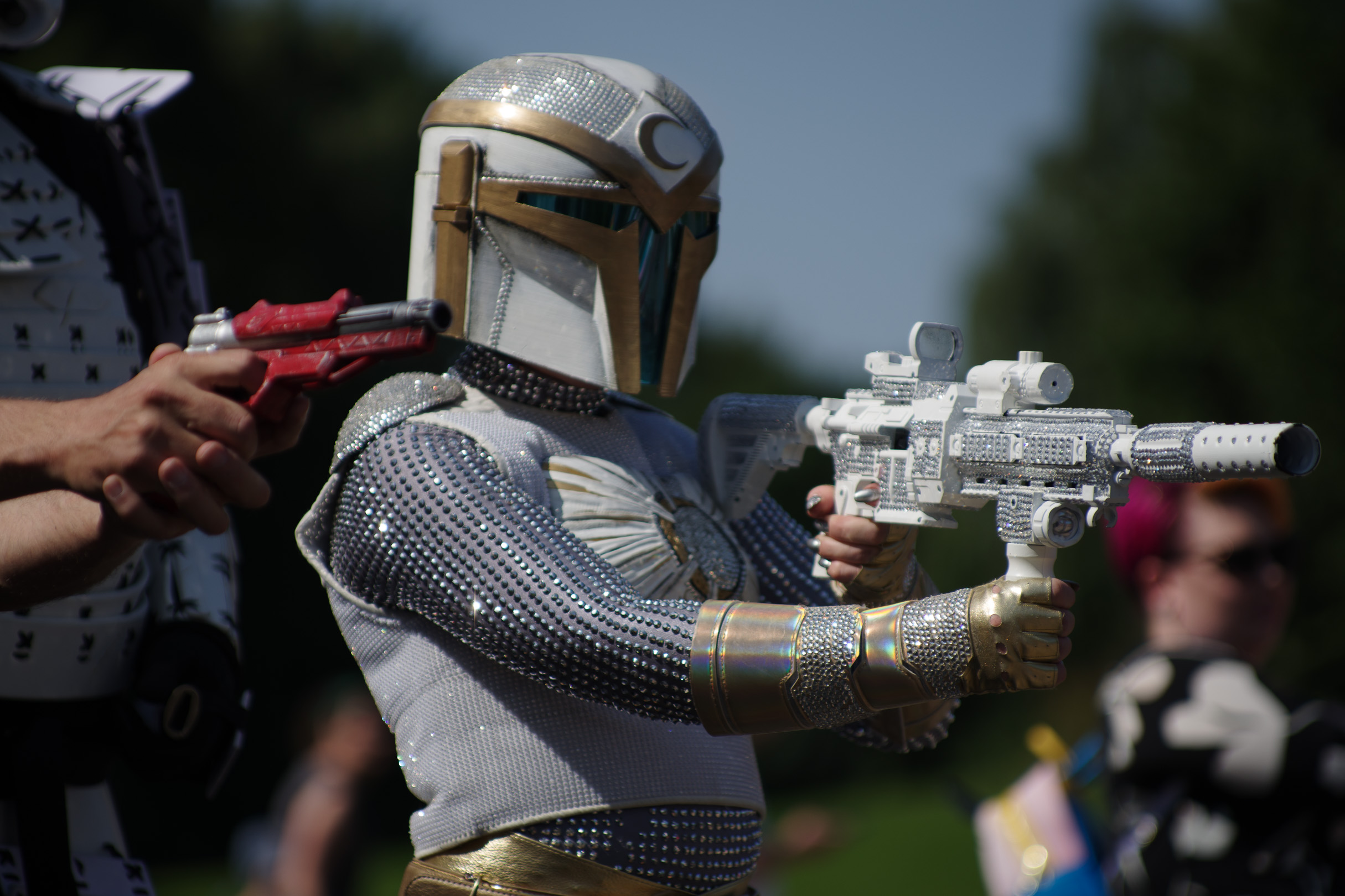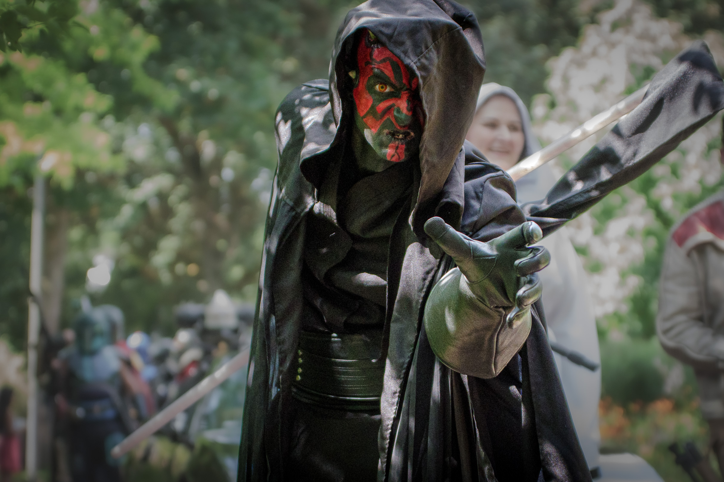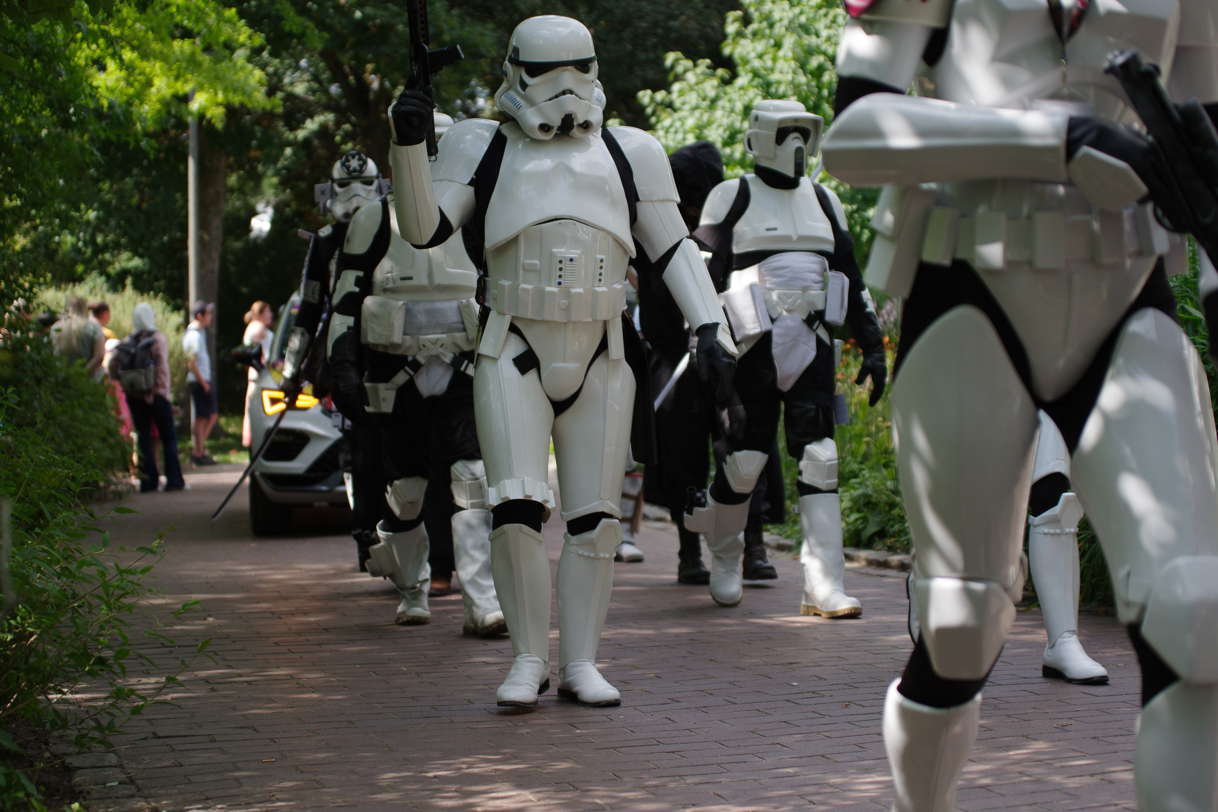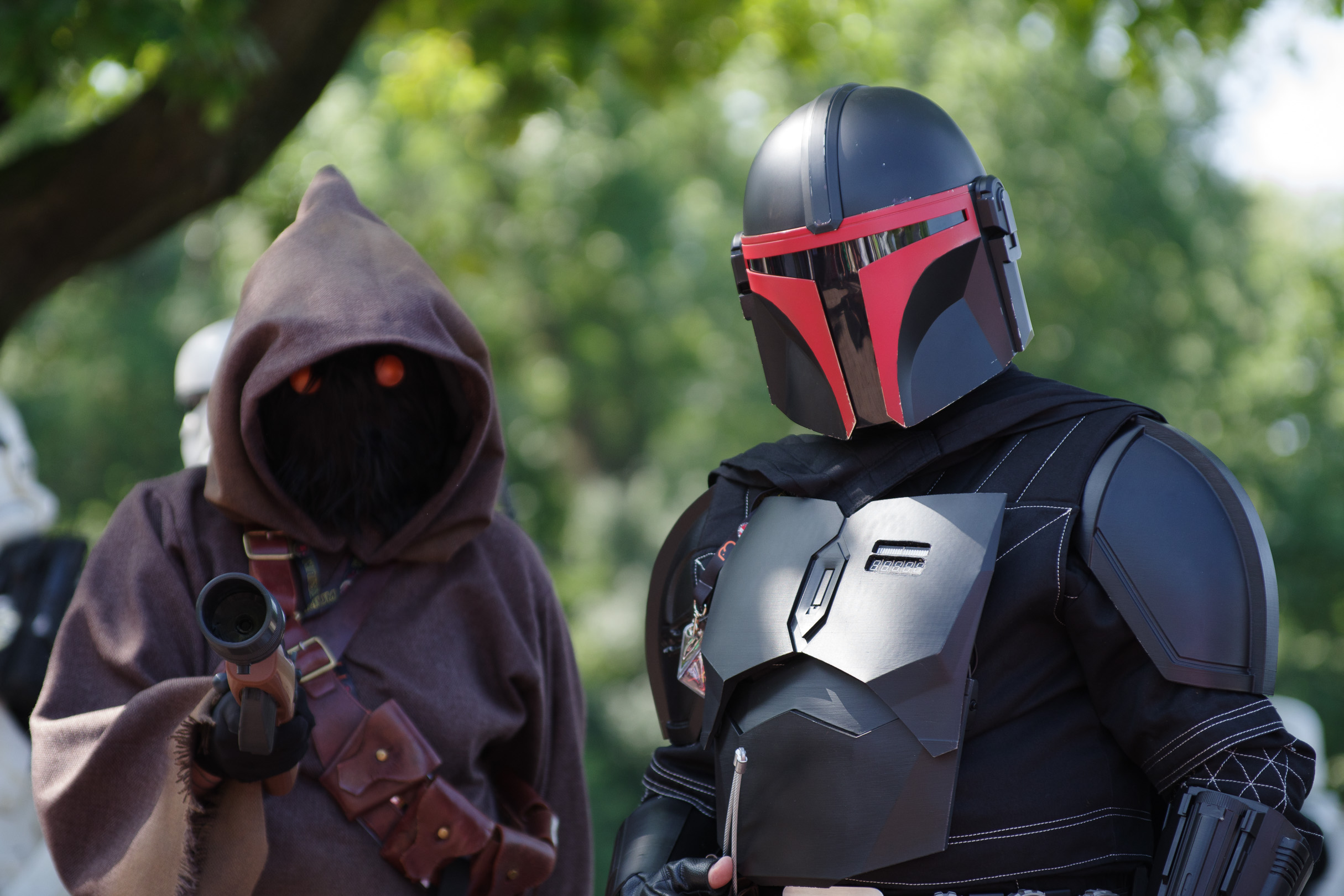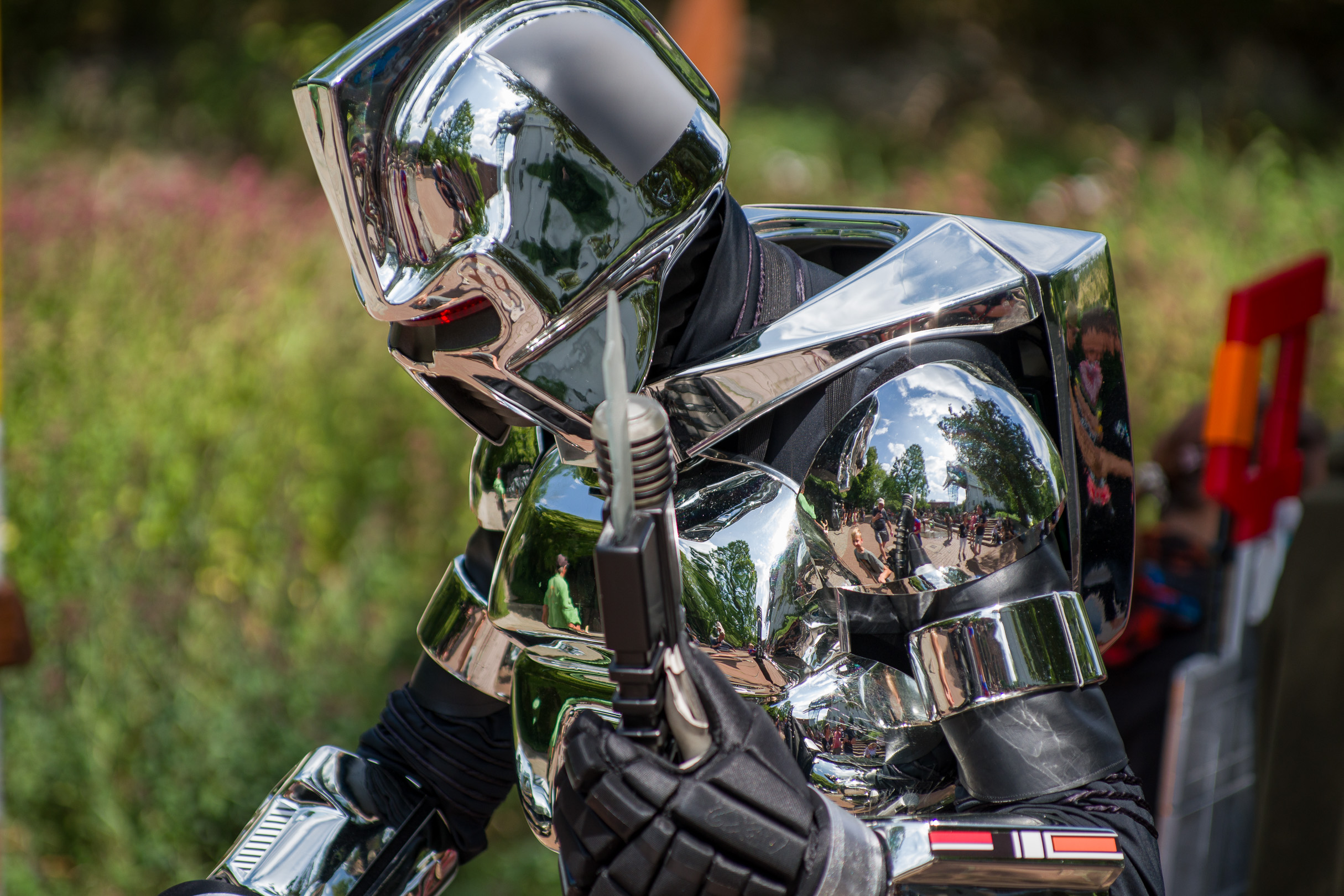 Trotz der zeitigen Abreise waren wir keinesfalls die ersten, die einen Parkplatz suchten. Andere hatten heute die gleiche Idee. Zu Recht, wie sich kurz darauf für mich herausstellte, obwohl ich ja kein ausgesprochener StarWars-Fan bin, sondern eher so mit Terminator und Riddik ’ne etwas andere Vorliebe für SciFi-Filmthemen habe.