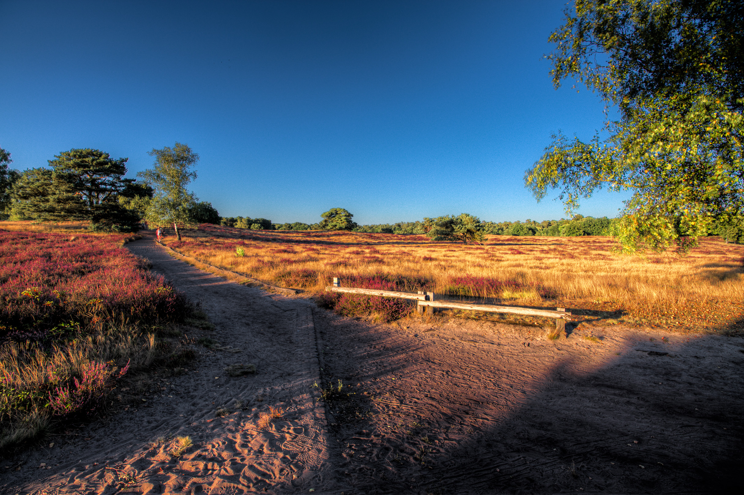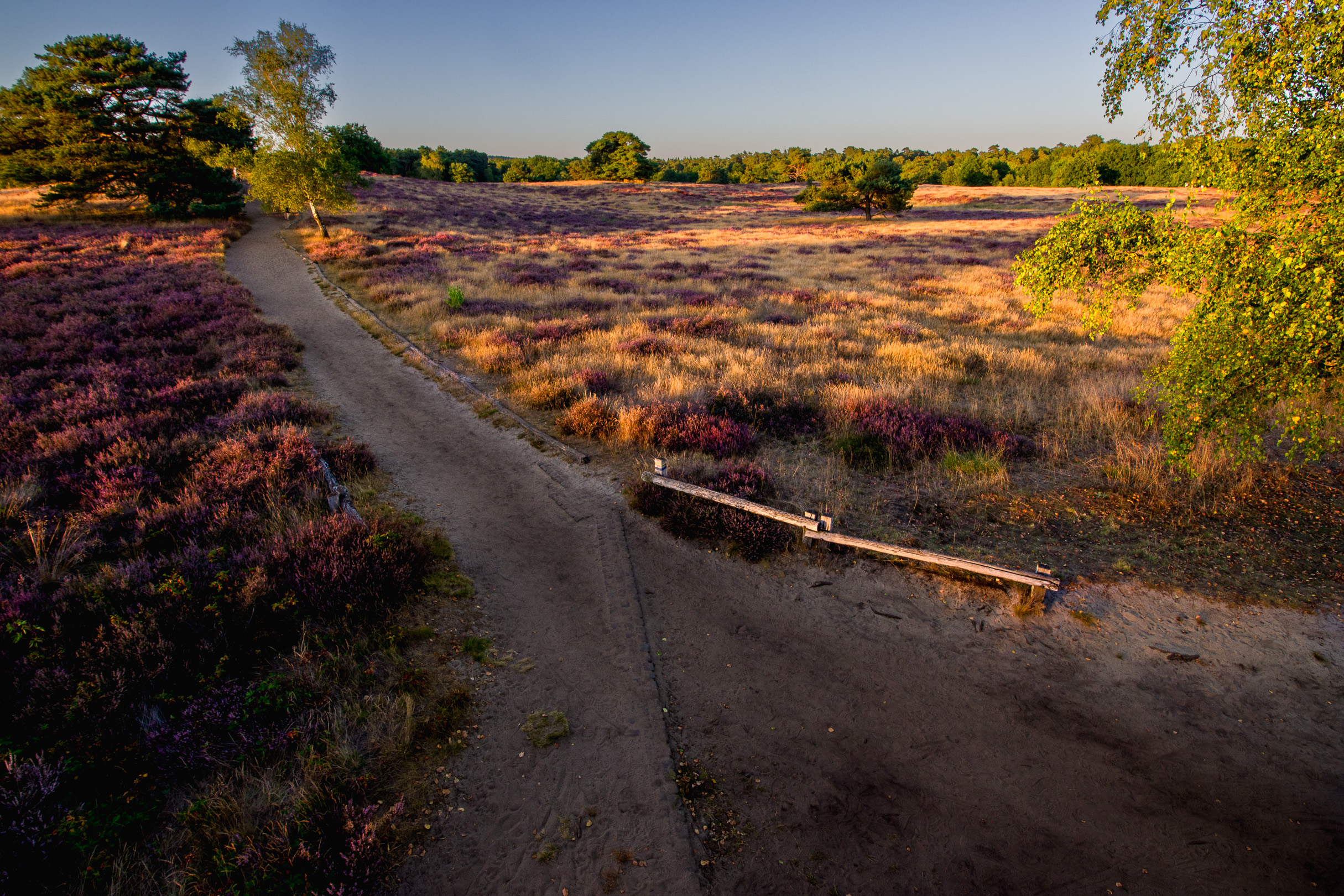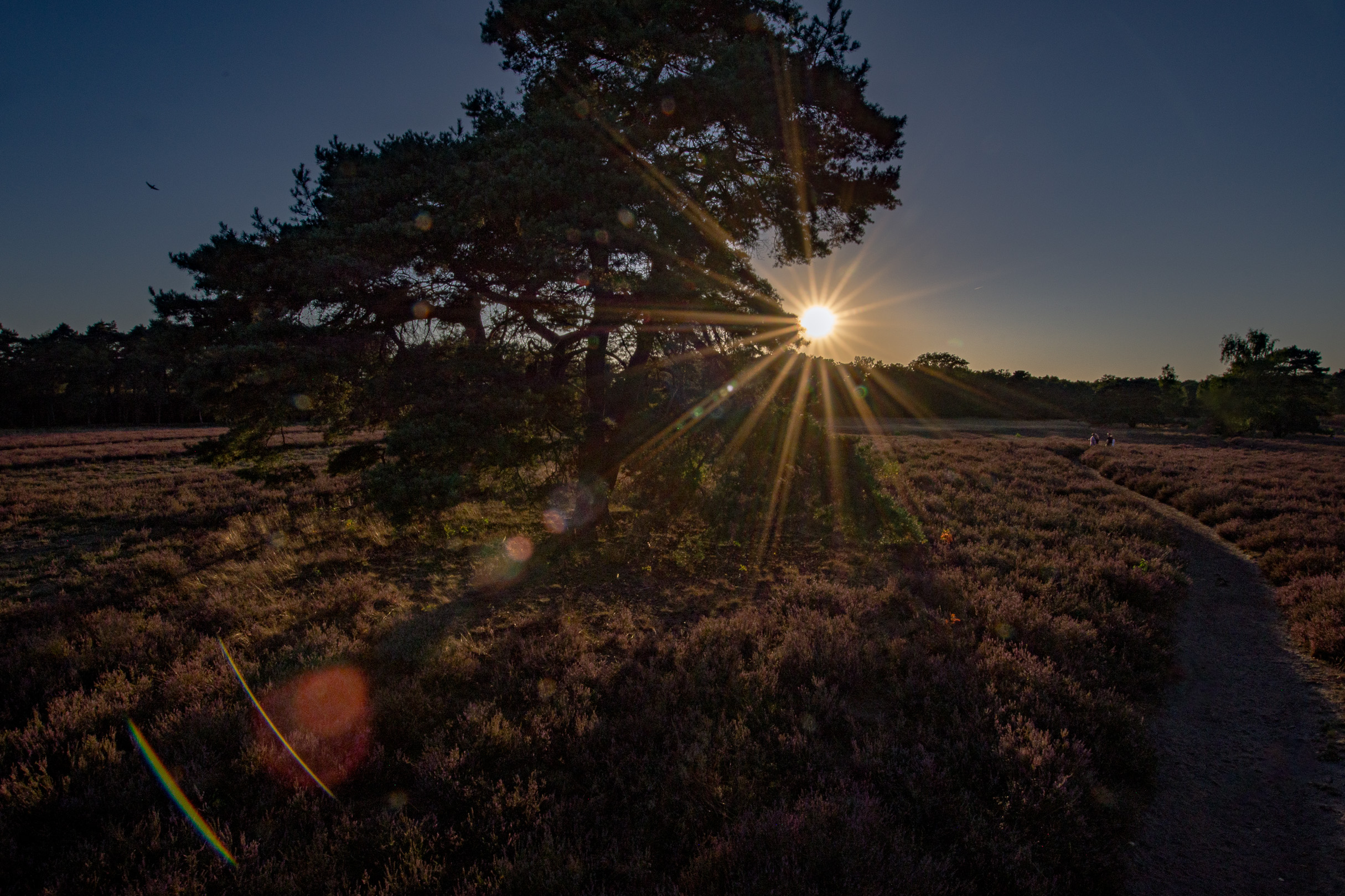 Der Jahreszeit entsprechend ist in der Westruper Heide die Heidekrautblüte zu bewundern, was für mich der ursächliche Anlass zur heutigen Expedition ist. Als ich mit dem Schatzi neulich hier war, hatten wir mehr Glück mit den Wolkenbildern. Heute war nur strahlend blauer Himmel, also für Landschaftsbilder eher weniger dekorativ. Aber zu vorgerückter Stund‘ dann erfreulich hilfreich bei der Nachthimmelfotografie (auf die ich mich so gar nicht vorbereitet hatte und die sich auch nur durch einen sehr netten Zufallstreffer ergeben hat).