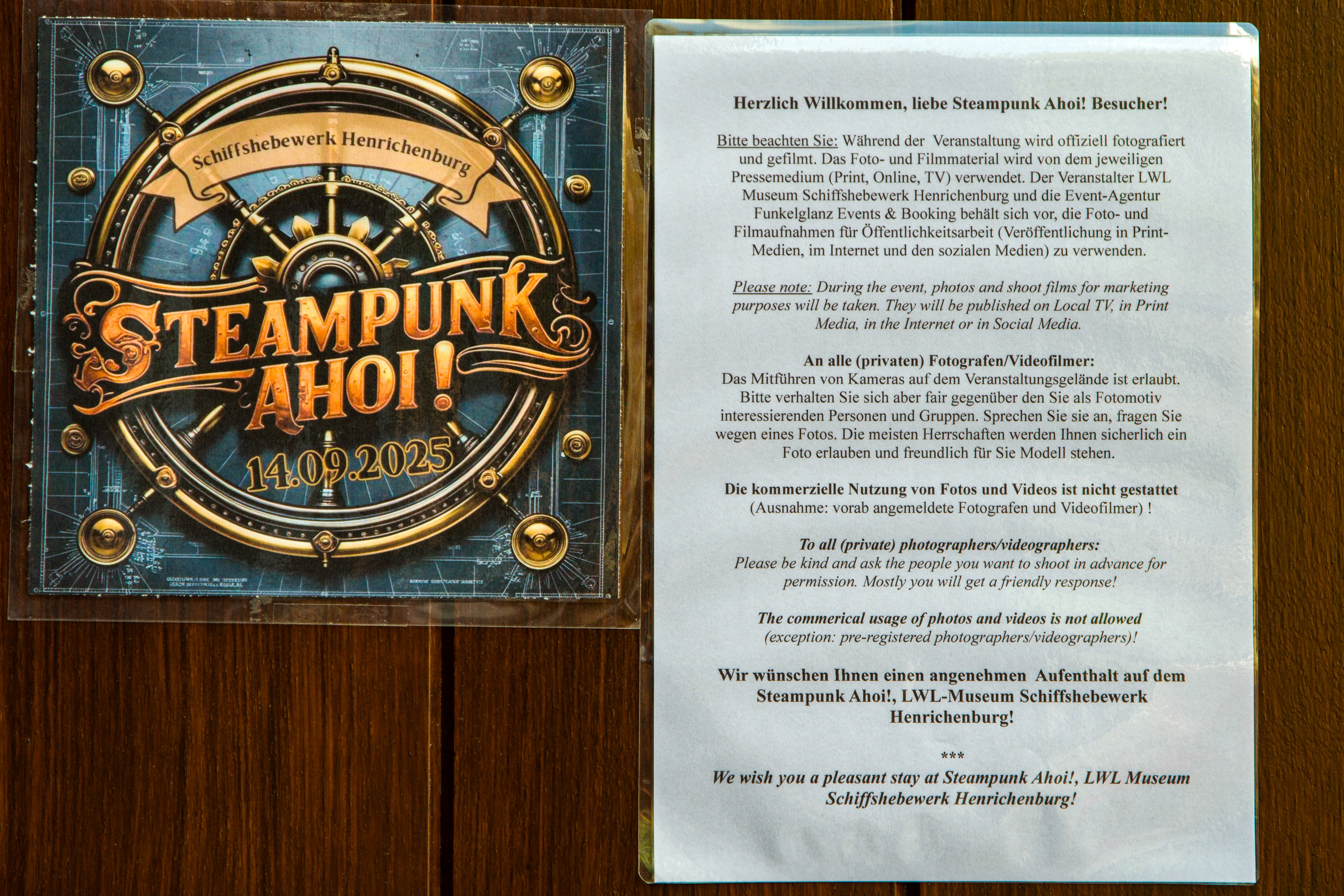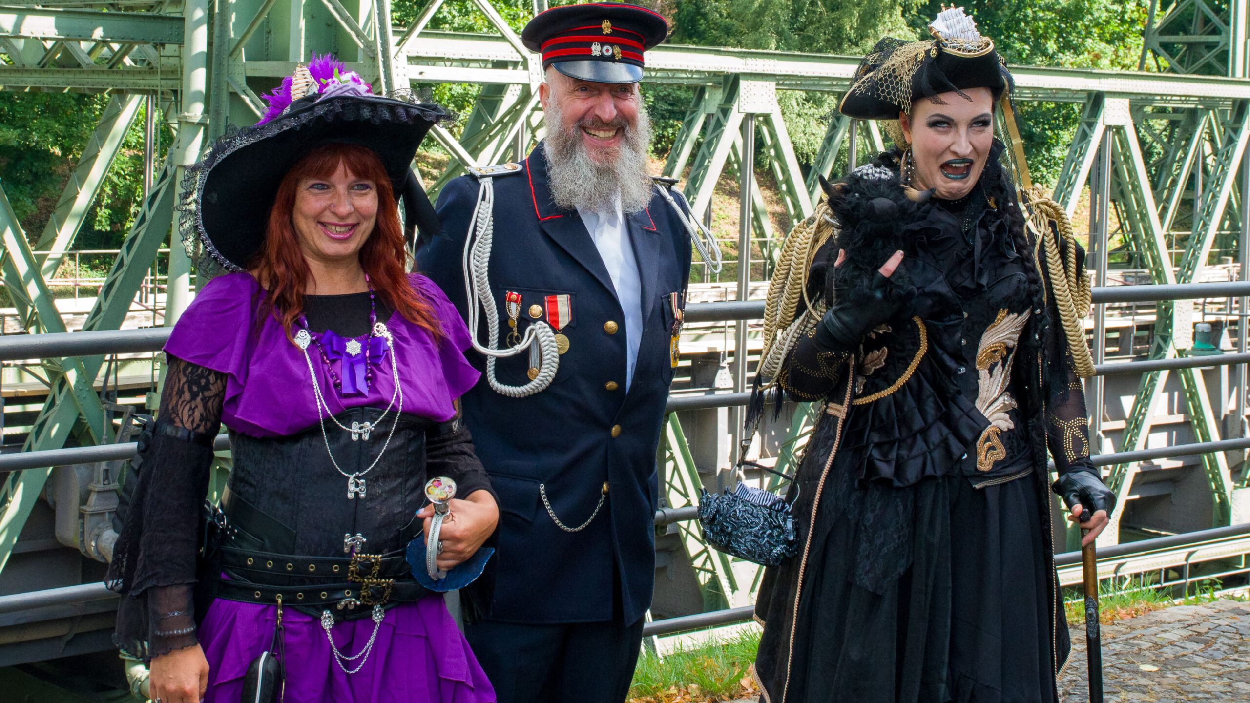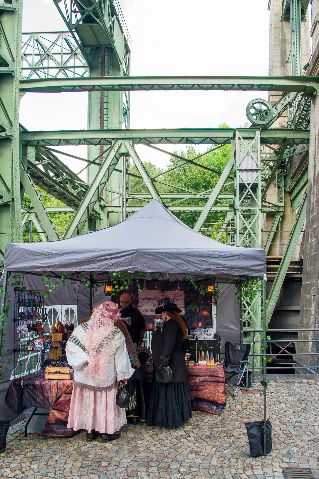 Die Tage werden spürbar kürzer und kühler und die jetzt noch stattfindenden Veranstaltungen und Schaustellungen unterliegen zumeist dem unberechenbaren Einfluss der Witterung. Das heutige Event sollte vom Motto „Steampunk“ geprägt sein und passt eigentlich gut zum Ambiente des historischen Schiffshebewerks.