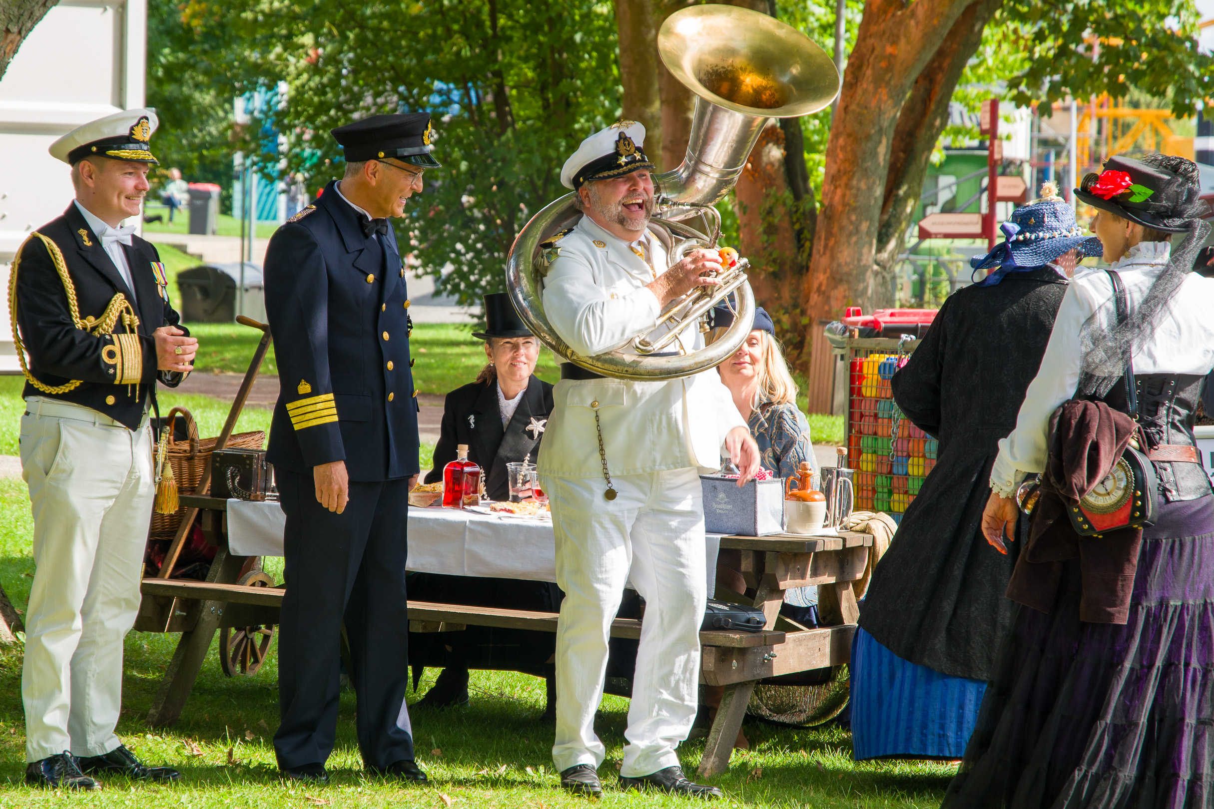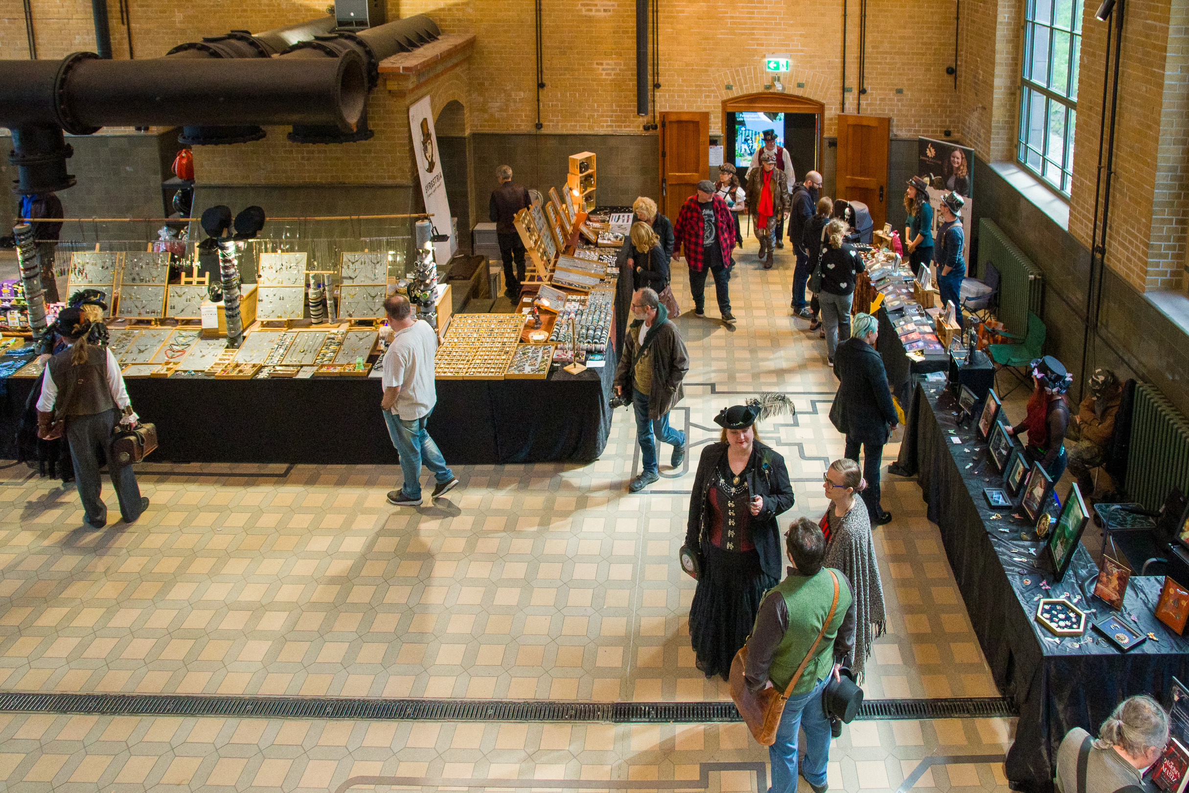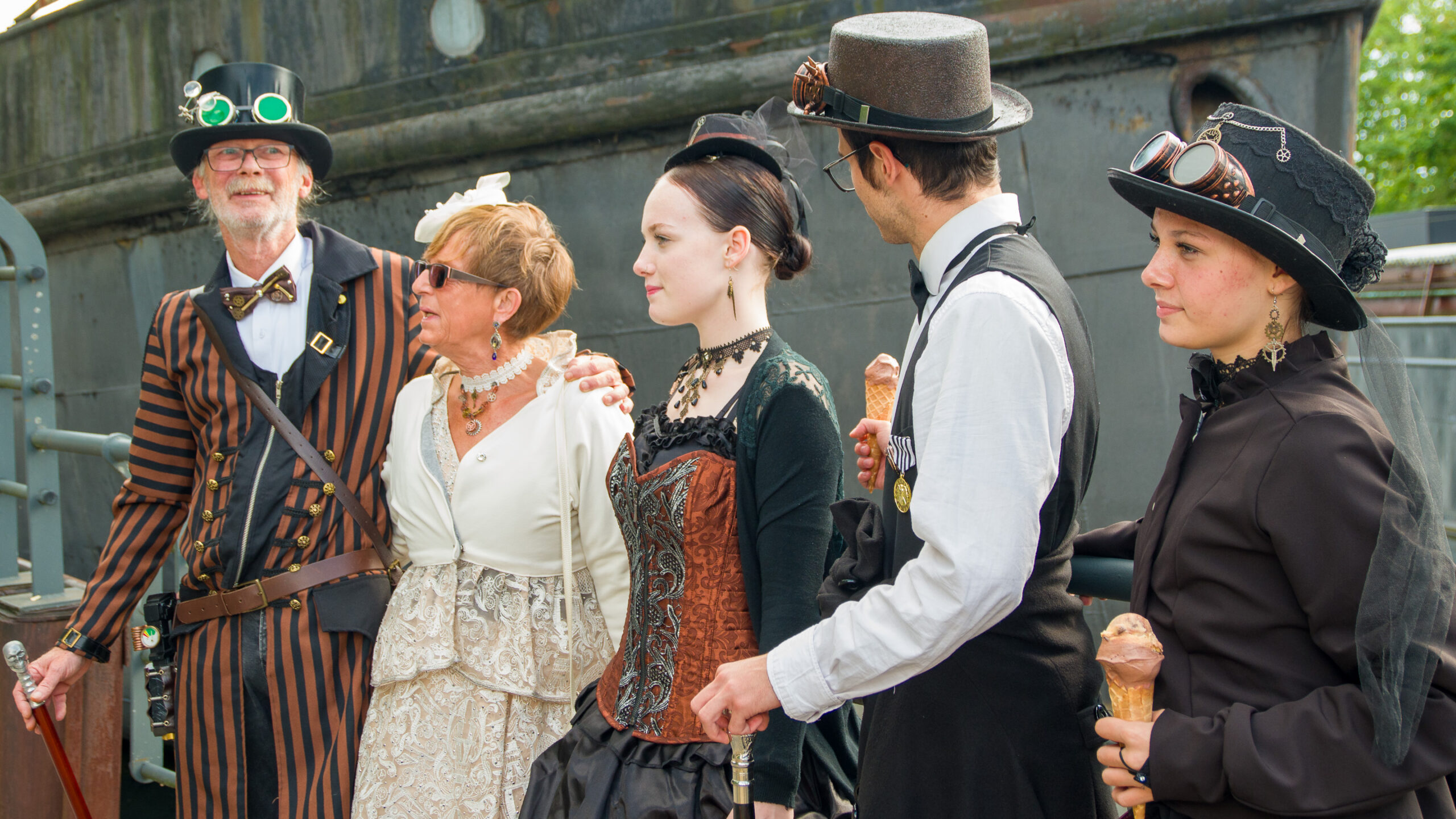 Die Tage werden spürbar kürzer und kühler und die jetzt noch stattfindenden Veranstaltungen und Schaustellungen unterliegen zumeist dem unberechenbaren Einfluss der Witterung. Das heutige Event sollte vom Motto „Steampunk“ geprägt sein und passt eigentlich gut zum Ambiente des historischen Schiffshebewerks.