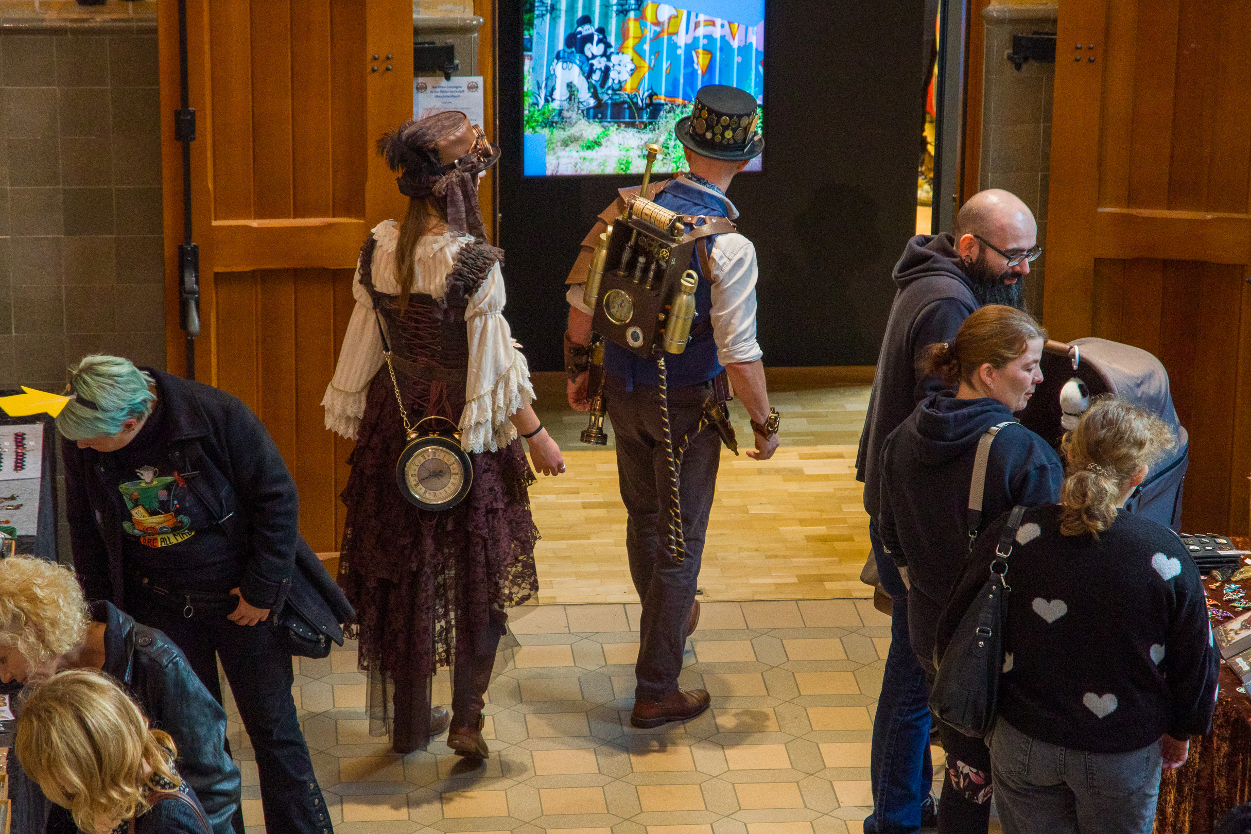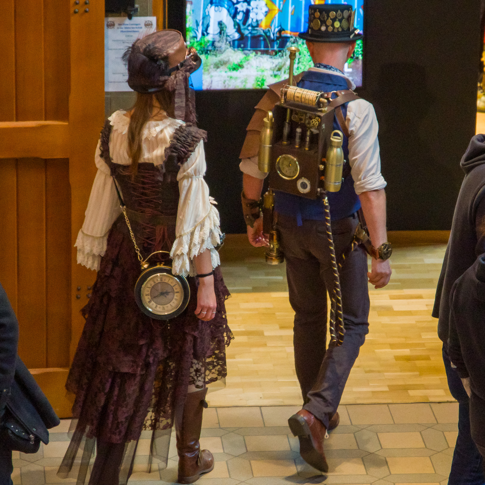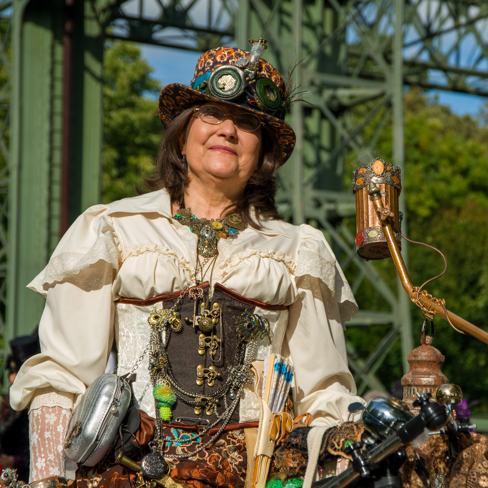 Erstaunlich, wieviele Menschen sich mit Steampunk-Bekleidung und Accessiores beschäftigen und das auch wie normale Kleidung tragen (können). Wobei es ja heute keine normale Kleidung gibt. Sondern nur billige Klamotten, die vermeintlich modisch sind, zumeist nur einmal getragen werden um dann im Sack zu landen.