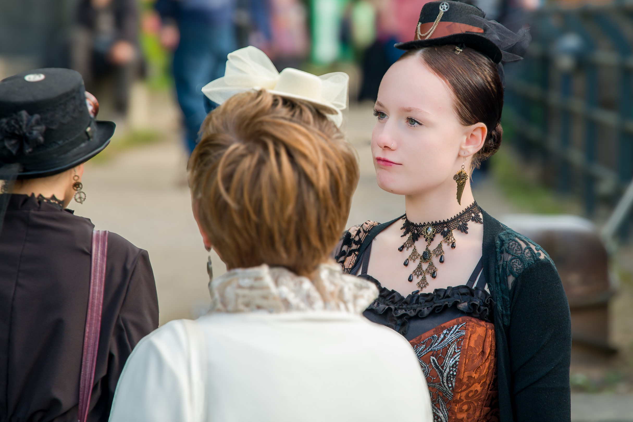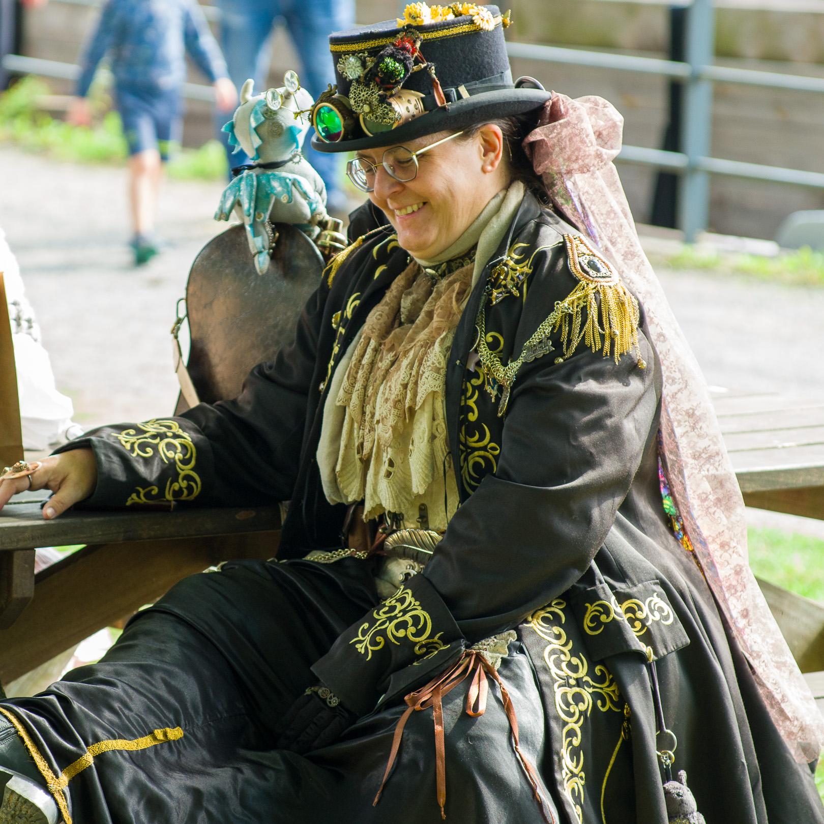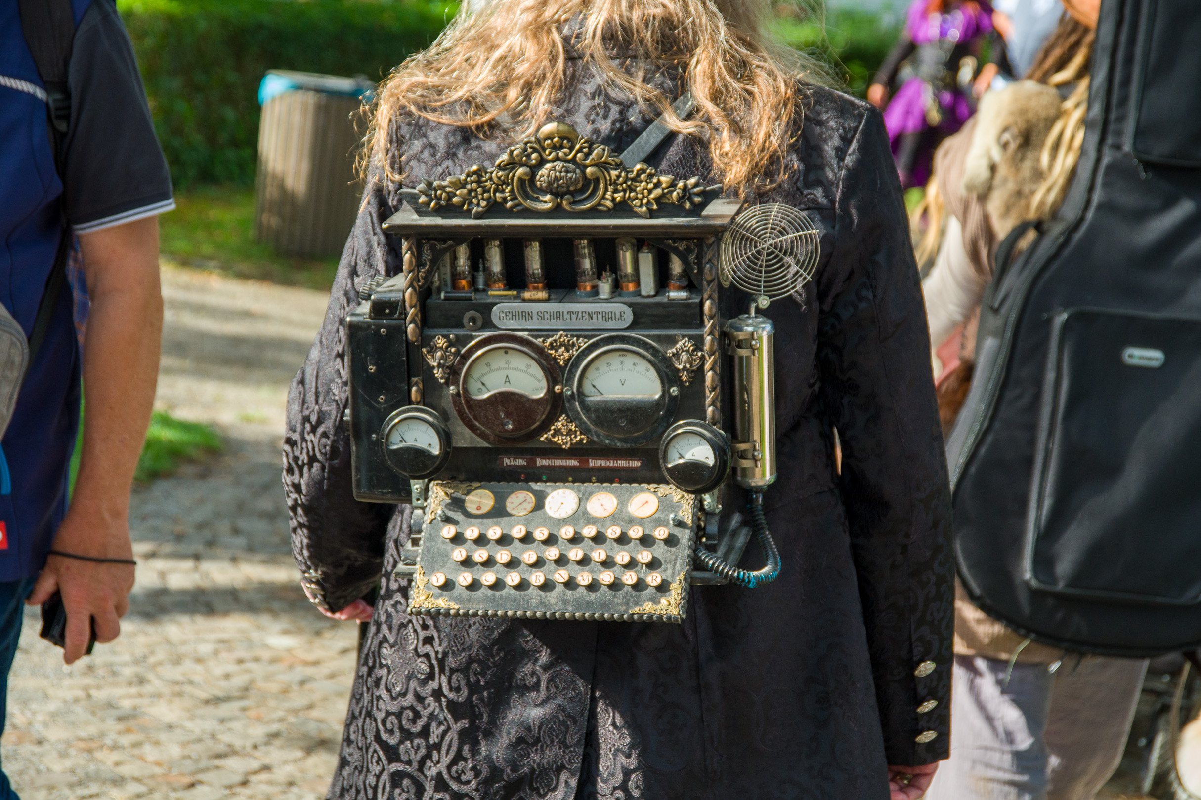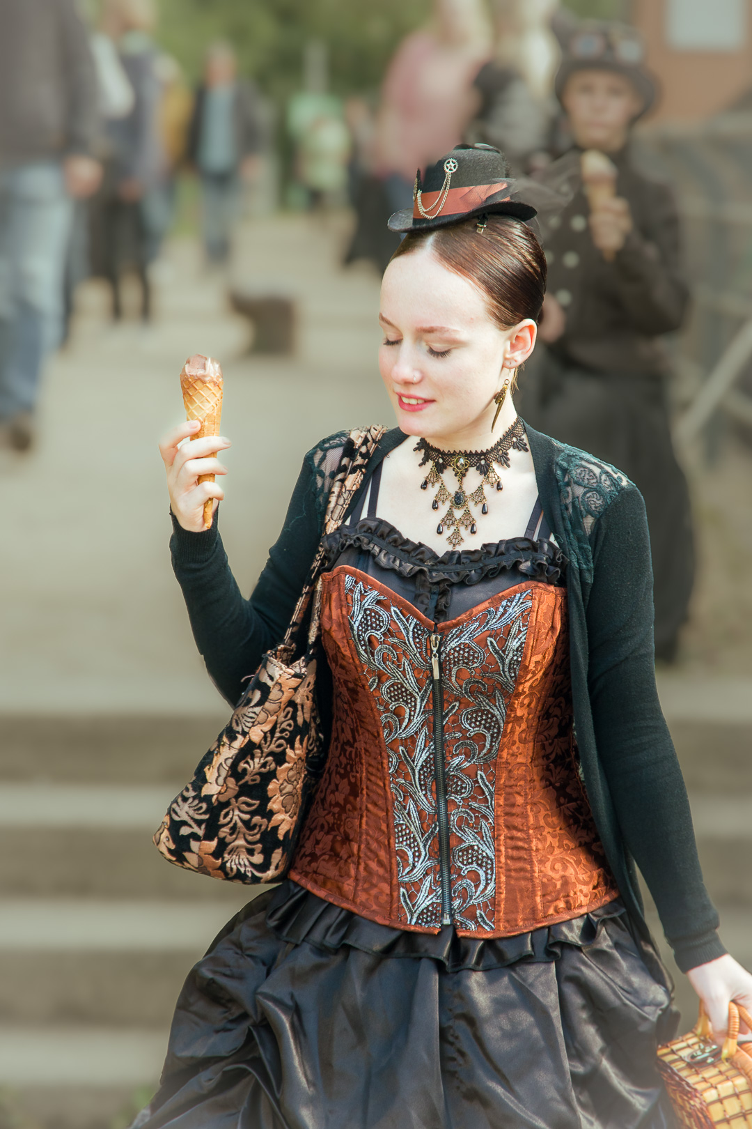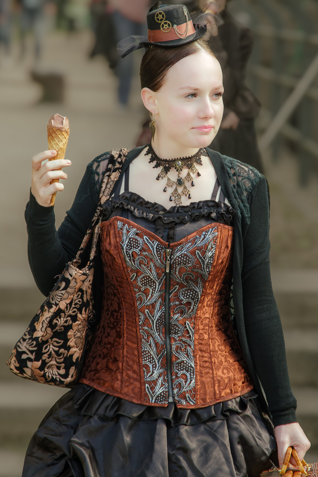 Ich hab keine Ahnung von Mode. Genausowenig wie von Kunst. Aber den Steampunk-Stil, den empfinde ich als erhaben, elegant, einfach nur schön. Und wer’s tragen kann und das auch tut, dem gebührt mein tief empfundener Respekt und meine höchste Anerkennung.