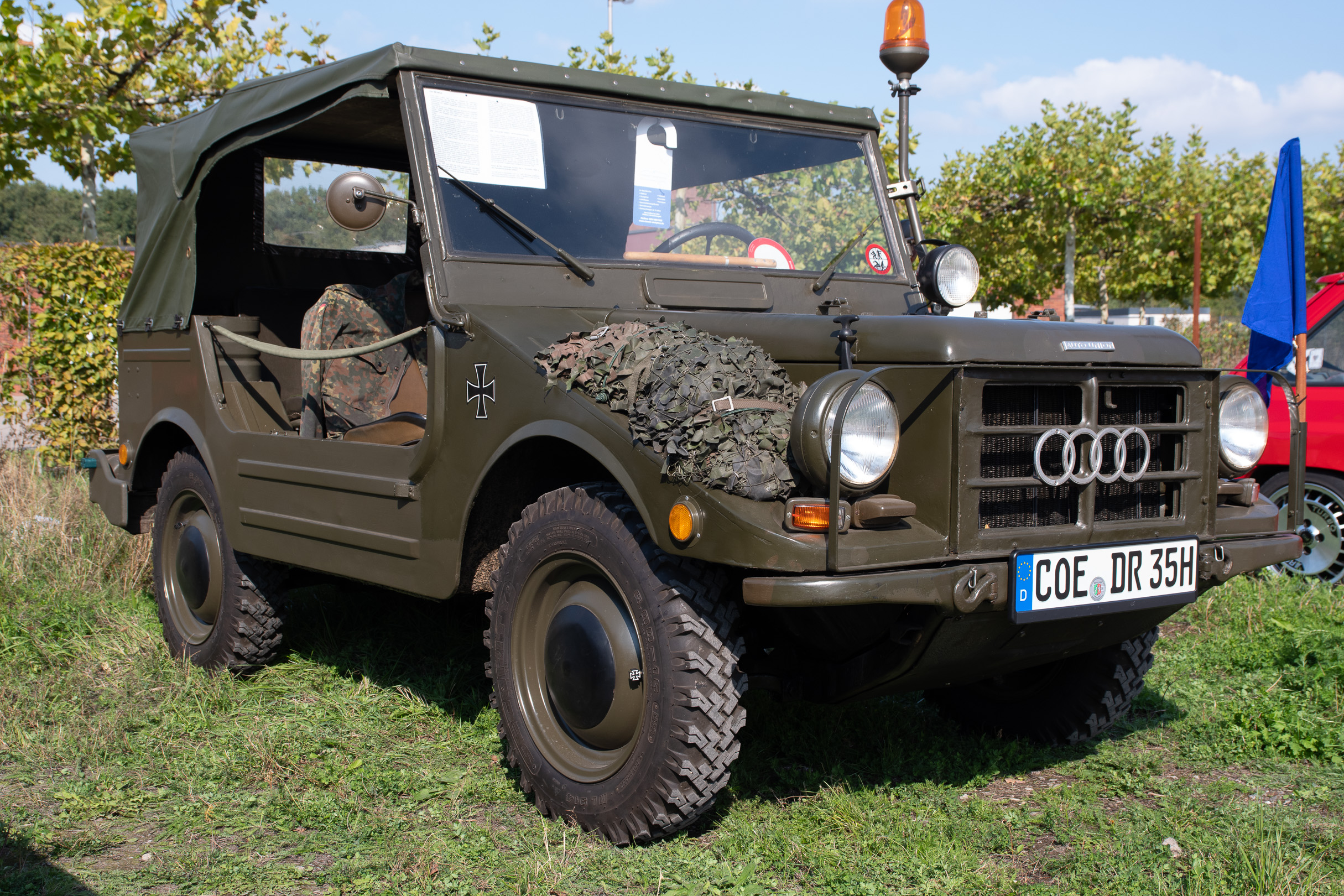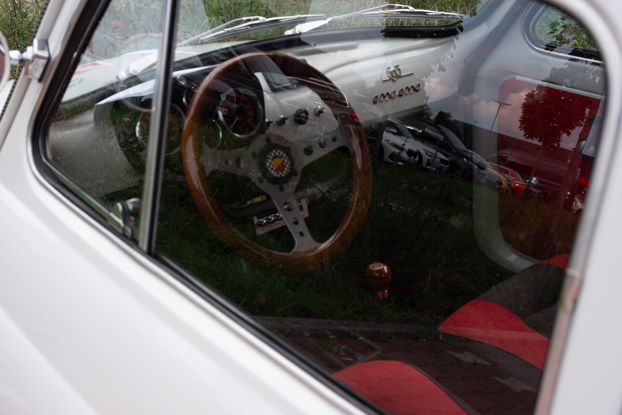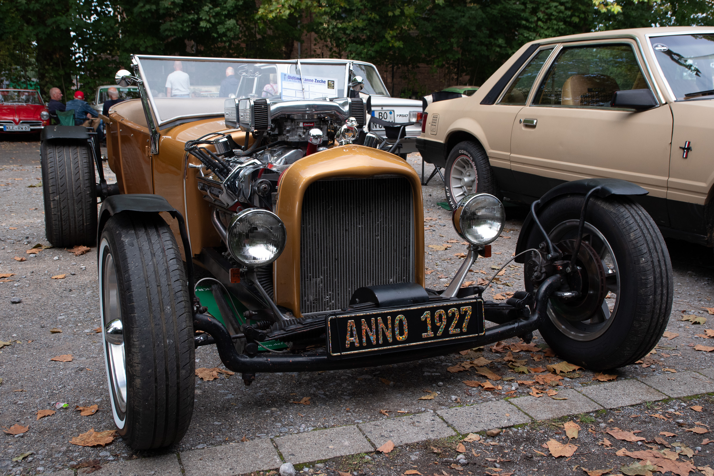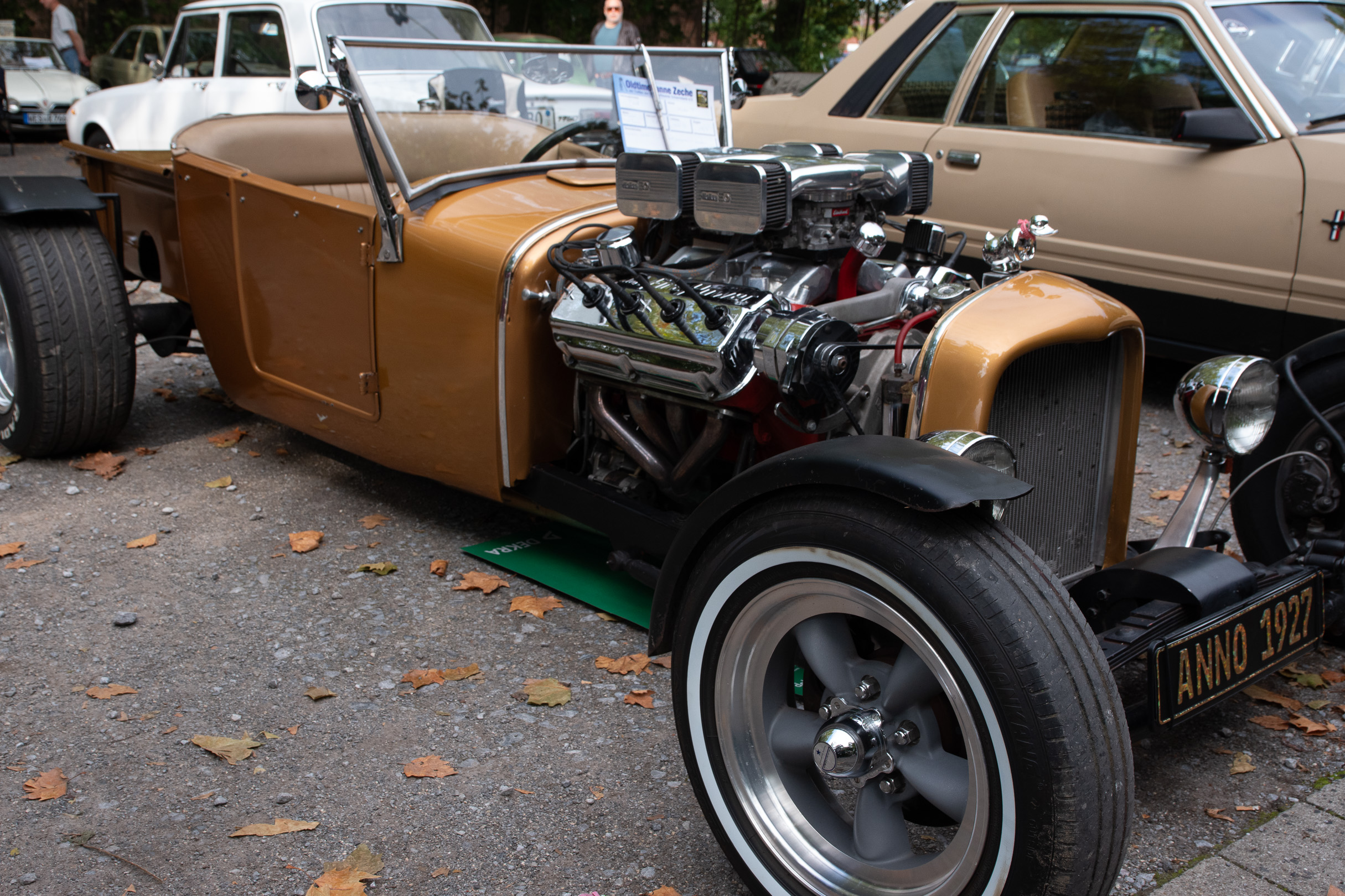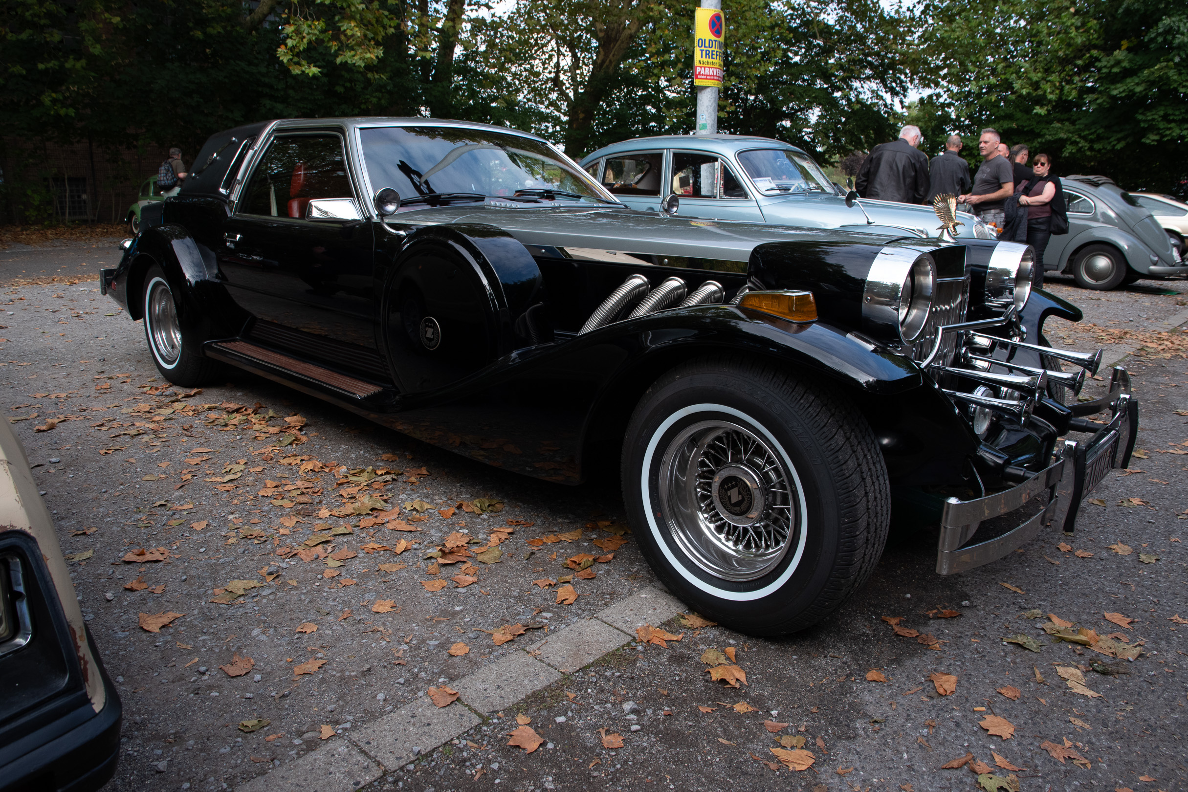 Ich hatte eigentlich gar nicht vor, mal wieder Autos zu knipsen. Hab ich dann auch nur sporadisch gemacht und mich statt dessen angeregt mit den Menschen unterhalten, die die Autos besitzen. Das erschien mir interessanter als mich in die Hocke zu quälen und zu versuchen, schon während der Aufnahme das Motiv freizustellen. Was zu ’ner blödsinnigen Aufgabe geriet, weil die Menschenmassen nicht aufzuhalten und schlußendlich auch nicht auszuhalten waren.