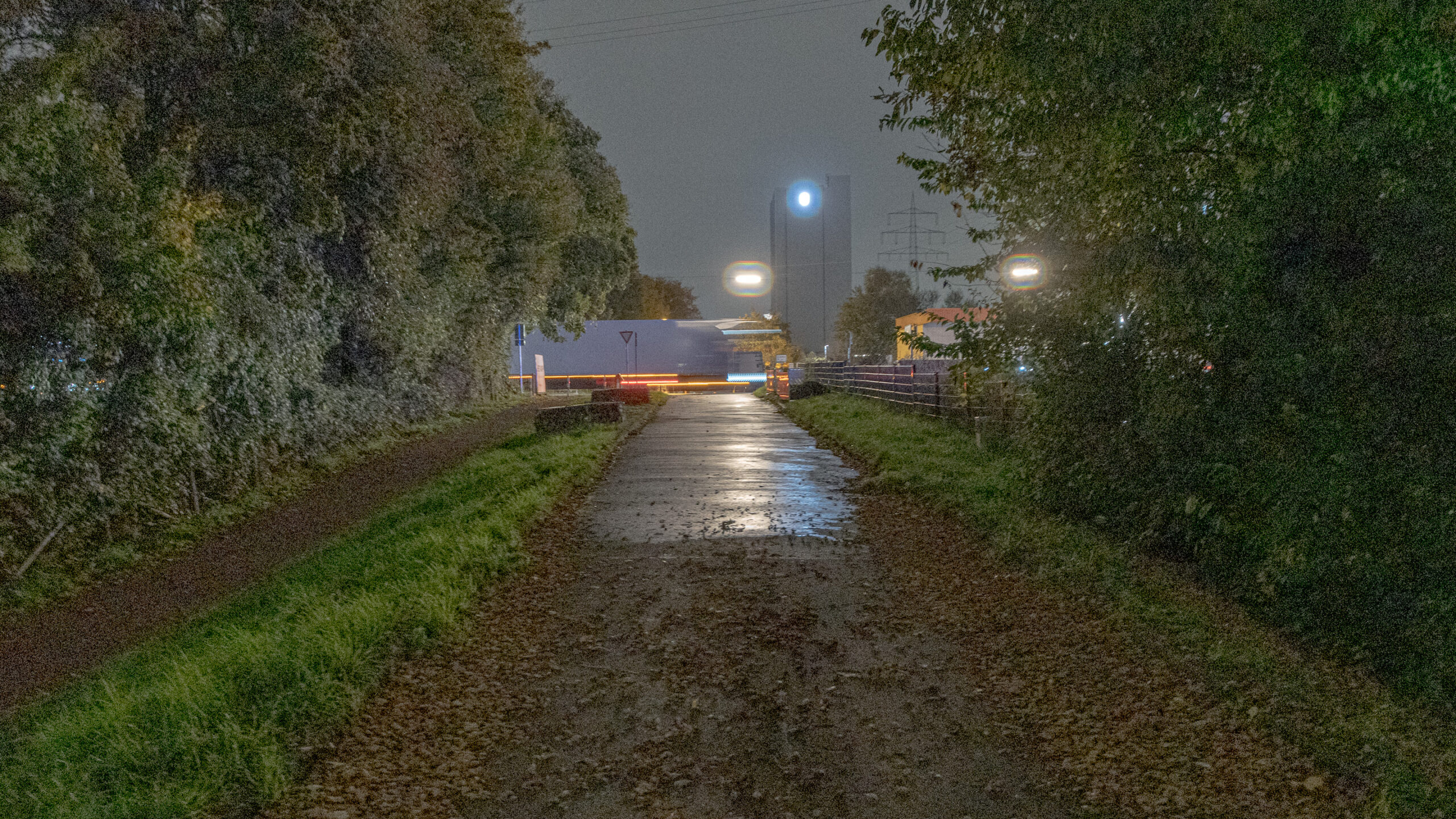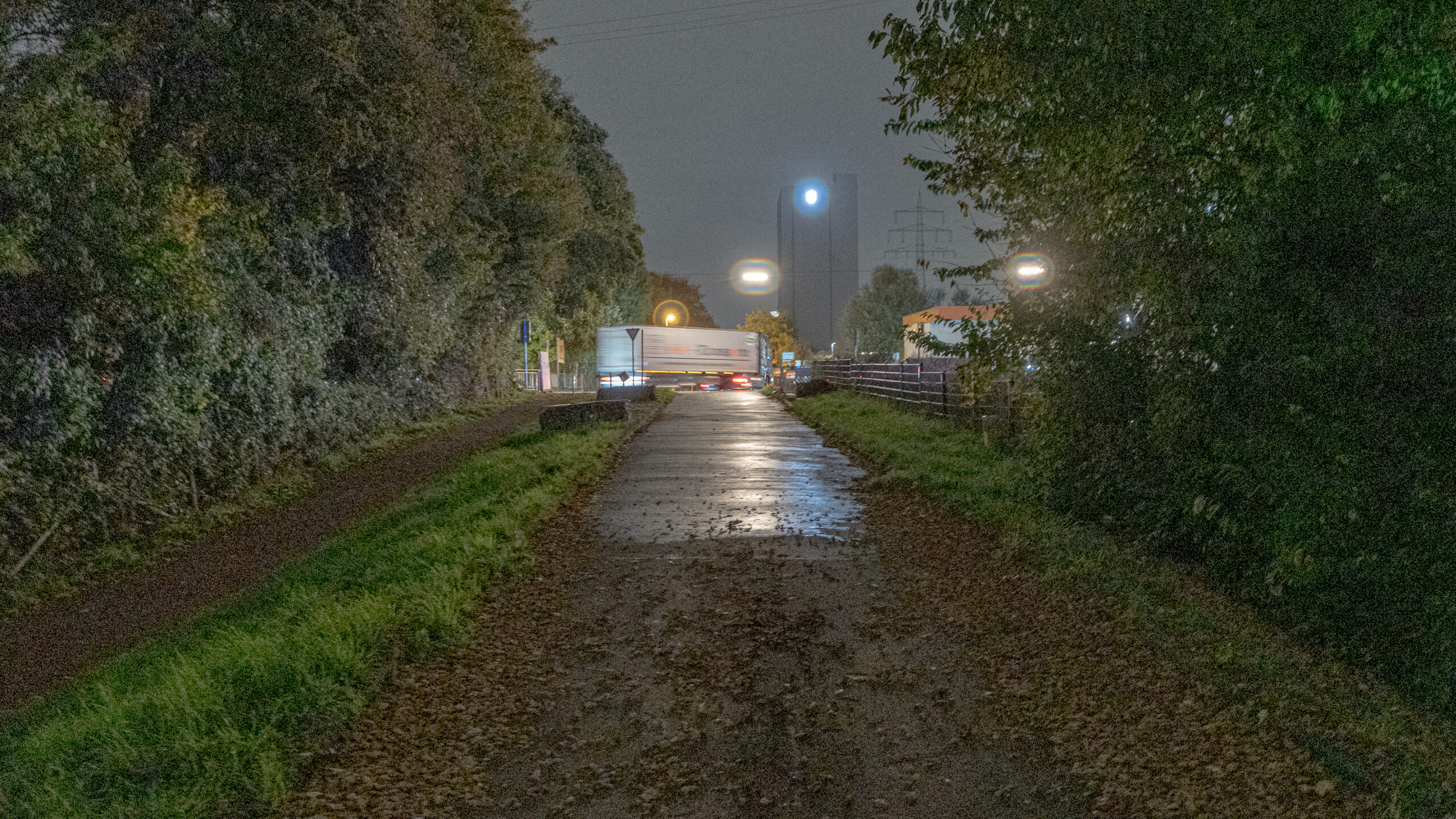 Aber so’n eigentlich nutzloses weil blendend überflüssiges Nachtlicht ist beim Knipsen dann schon wieder hilfreich, hebt es doch die Nachtfotografie auf ein gewisses ästhetisches Niveau, sofern man bei solchen nichtssagenden Motiven wie eine Bushaltestelle oder einem vorbeidonnernden LKW von Ästhetik sprechen möchte und das beknallte Licht dann auch nicht so hell wie eine Stadion- und/oder Flugzeuglandebahnbeleuchtung ist.