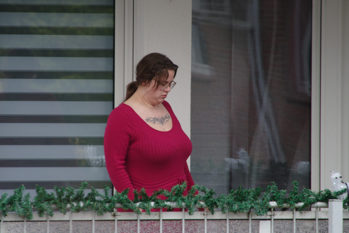 Und der dicke Tüpp hat auch ’ne Frau, die da mit eingezogen ist. Beide haben die gleiche Marotte wie alle anderen: die glauben, die wohnen da alleine und können machen was die wollen. Unglaublich entspannte Leute sind das.
