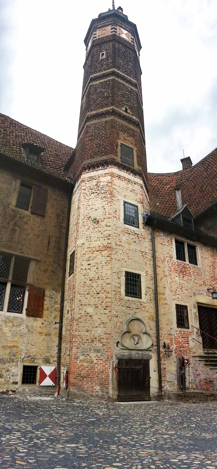 Dieses „Turmpanorama“, also eine aus mehreren Aufnahmen zusammengesetzte Ansicht des Turmes, kann man sonst so nicht oder nur mit spezieller Optik vom Burghof aus ablichten. Die Einzelaufnahmen sind mit der Samsung Galaxy Note2 Kamera gemacht.