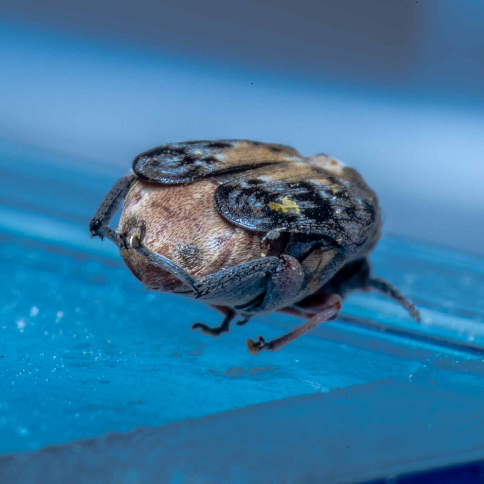 Am 19.03.2020 habe ich den Käfer das erste Mal im Wohnzimmer auf dem TV-Bildschirm herumkrabbelnd entdeckt. Zunächst konnte ich mir die Herkunft nicht erklären und nahm an, dass er von draussen reingekommen sein könnte.