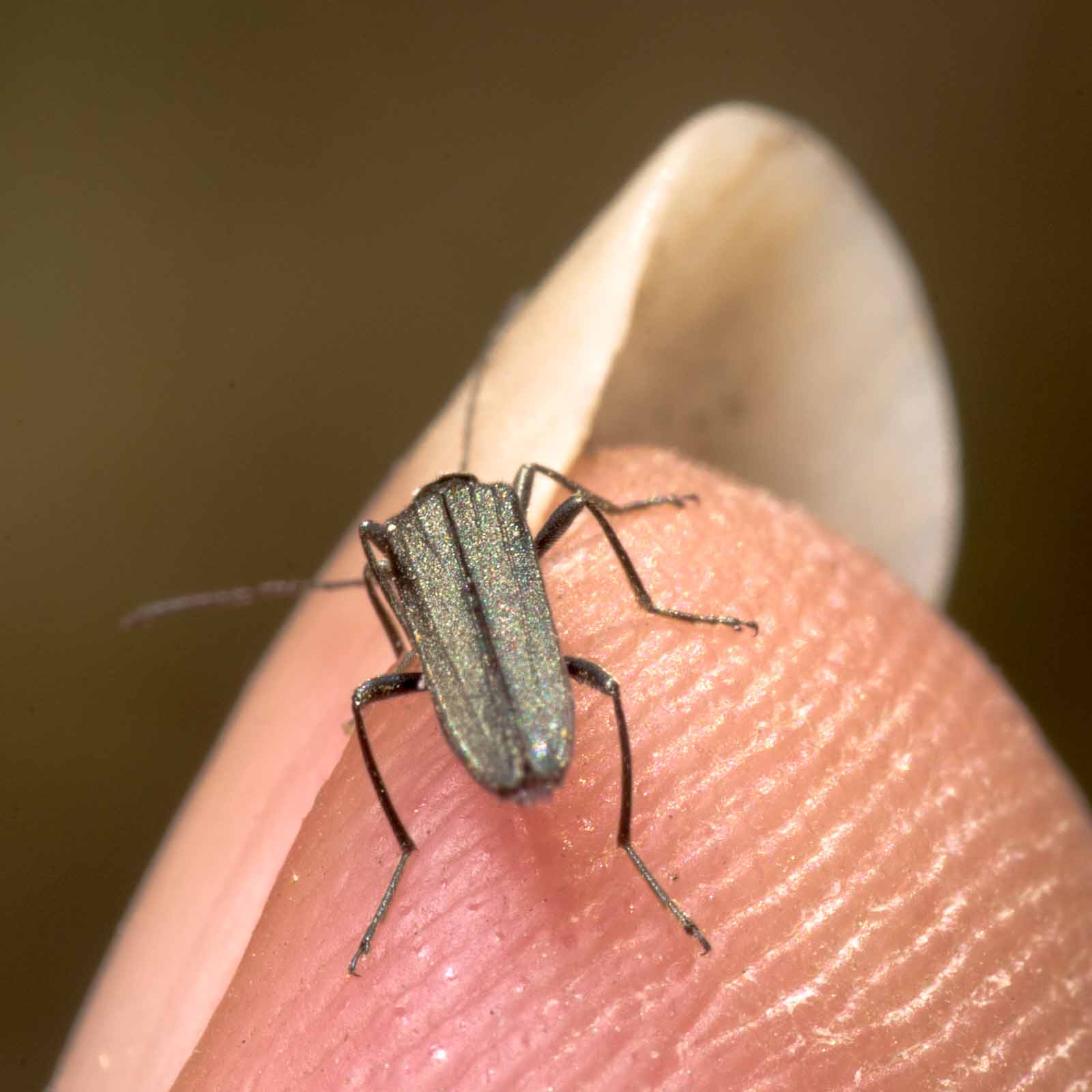 Die Käfer werden etwa 10 Millimeter lang. Kopf, Halsschild und Flügeldecken sind bläulich bis grünlich schimmernd. Über die Flügeldecken verlaufen vier Längsrippen. Die Femora sind leicht verdickt. Die Klauen der Tarsen besitzen einen kleinen Basalzahn.