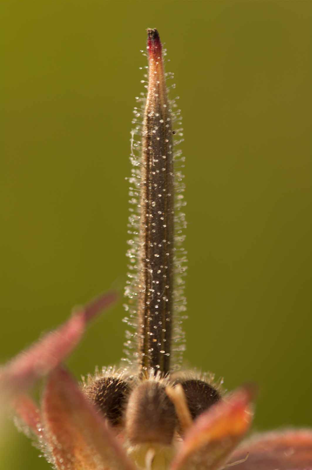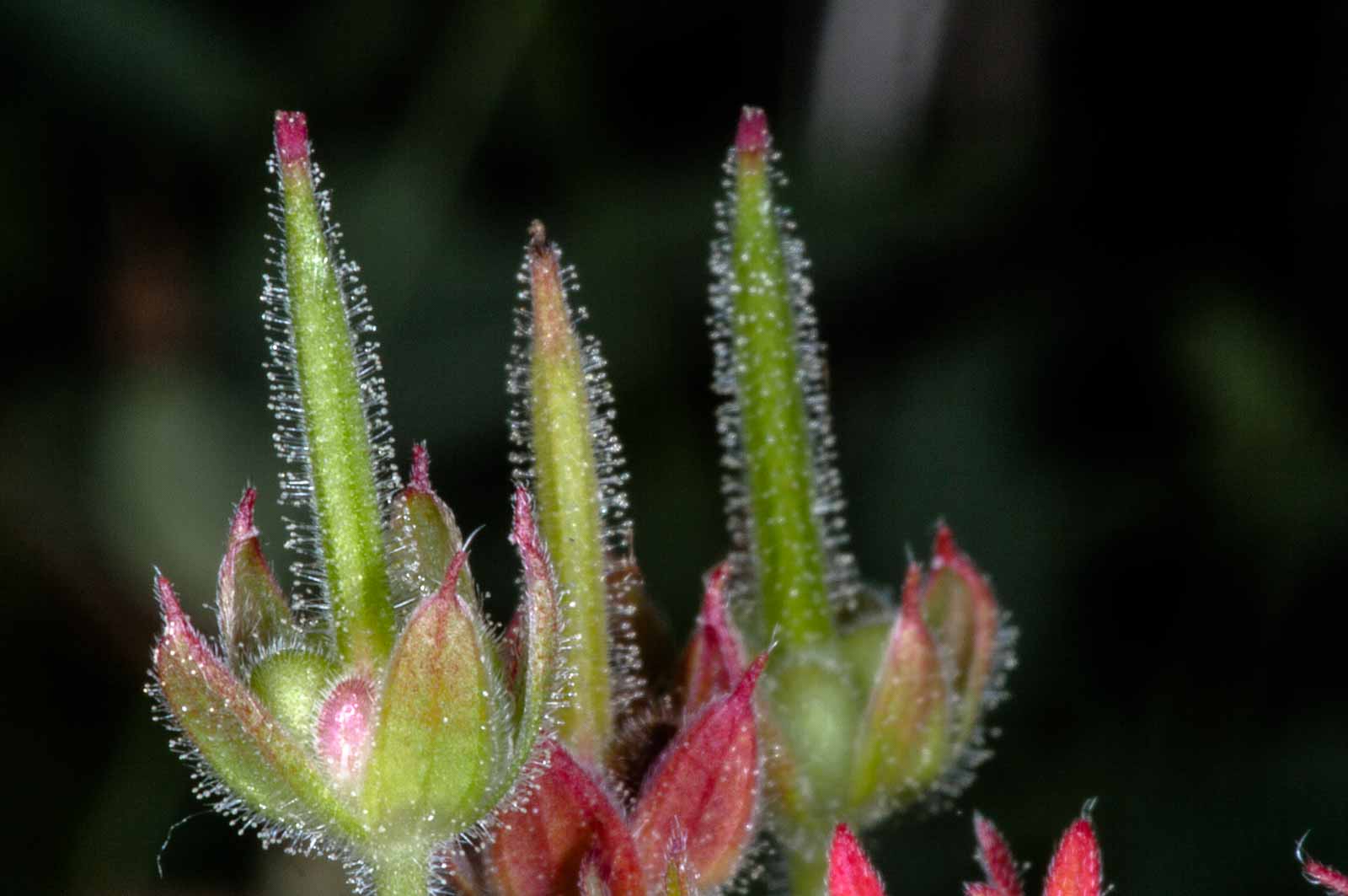 Der Blutrote Storchschnabel ist eine ausdauernde krautige Pflanze und erreicht Wuchshöhen von 15 bis 50 (selten 60) cm. Er bildet ein weit kriechendes, bei einem Durchmesser von etwa 1 cm relativ dickes Rhizom, das verzweigt, mit Niederblättern besetzt und innen rot ist. Die Stängel sind niederliegend bis aufsteigend und meist vom Grund an gabelig verzweigt. Die hellgrünen, im Herbst blutroten Stängel sind dicht mit 1 bis 2,5 mm langen, waagrecht oder nach hinten abstehenden Haaren besetzt bis fast kahl. Drüsenhaare sind selten.