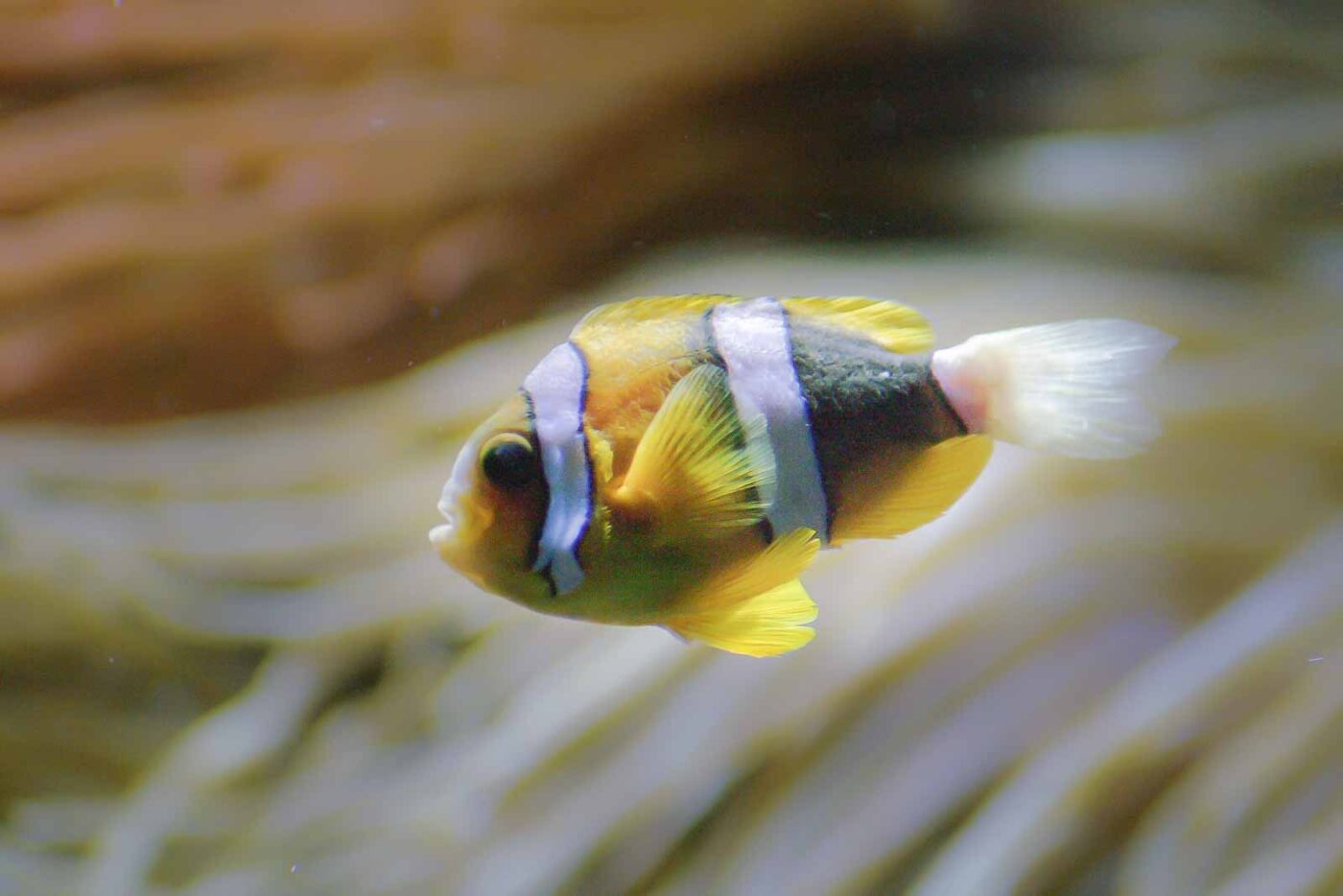 Als ökologischer Generalist akzeptiert er alle zehn Symbioseanemonen als Partner. Amphiprion clarkii wird mit bis zu 15 Zentimeter für einen Anemonenfisch recht groß.