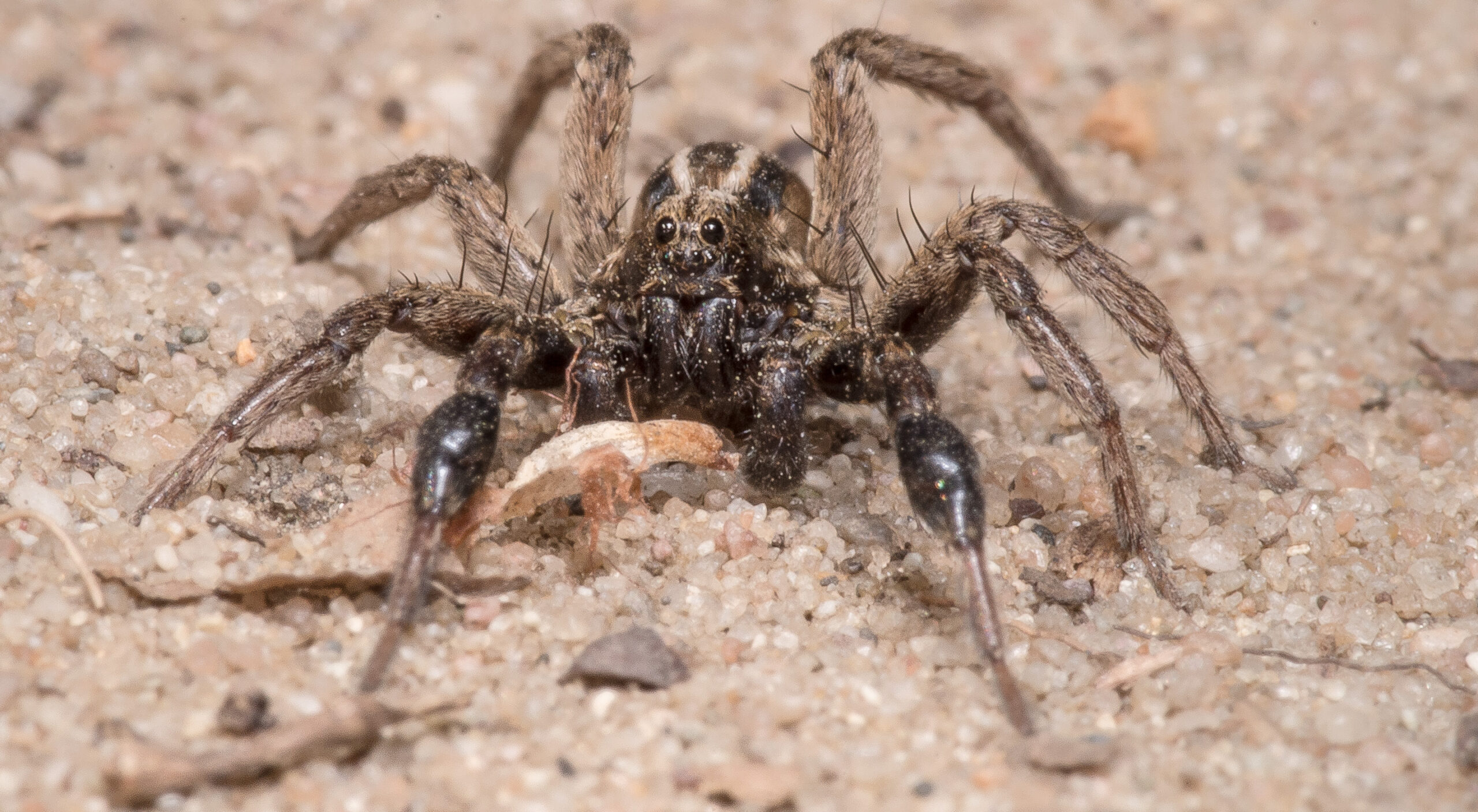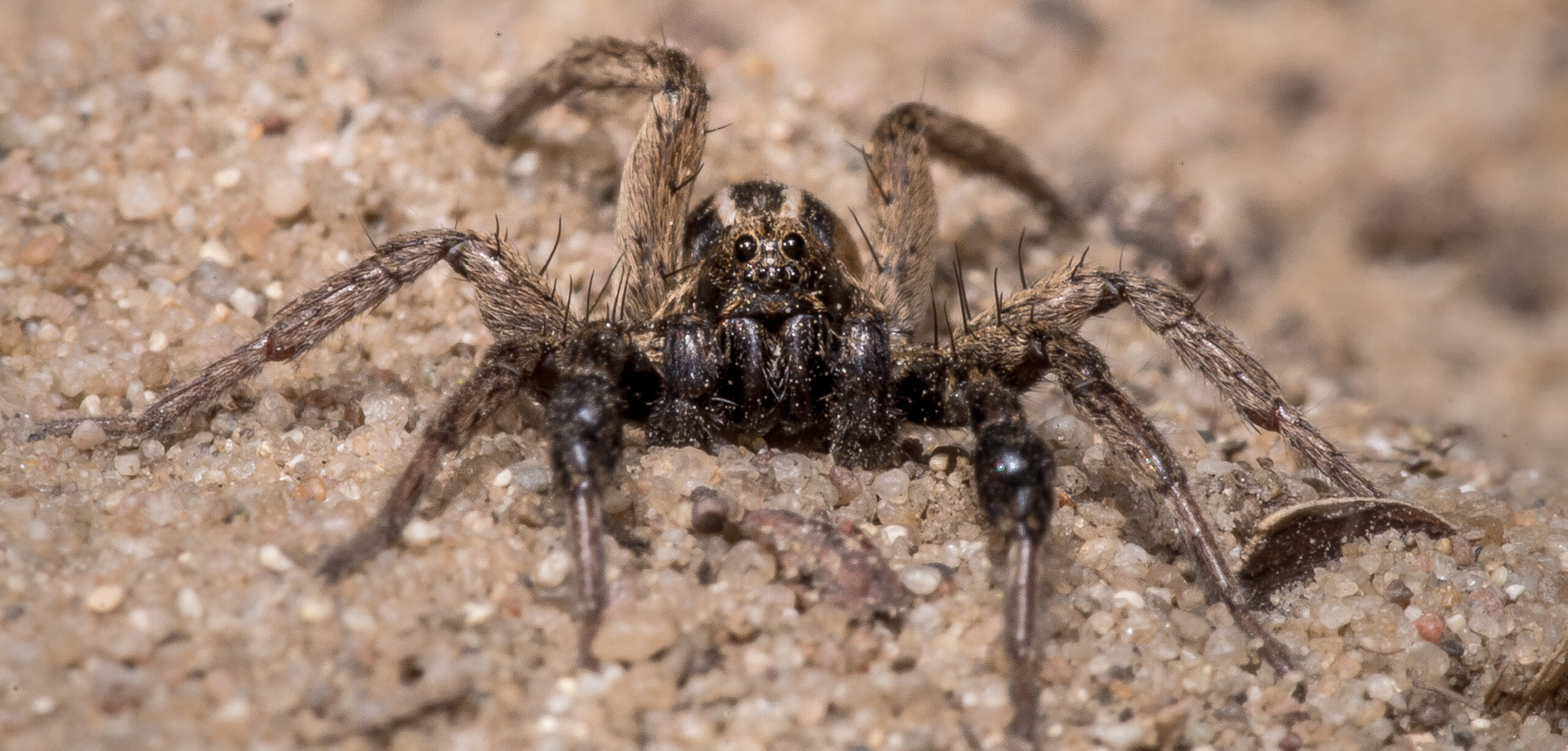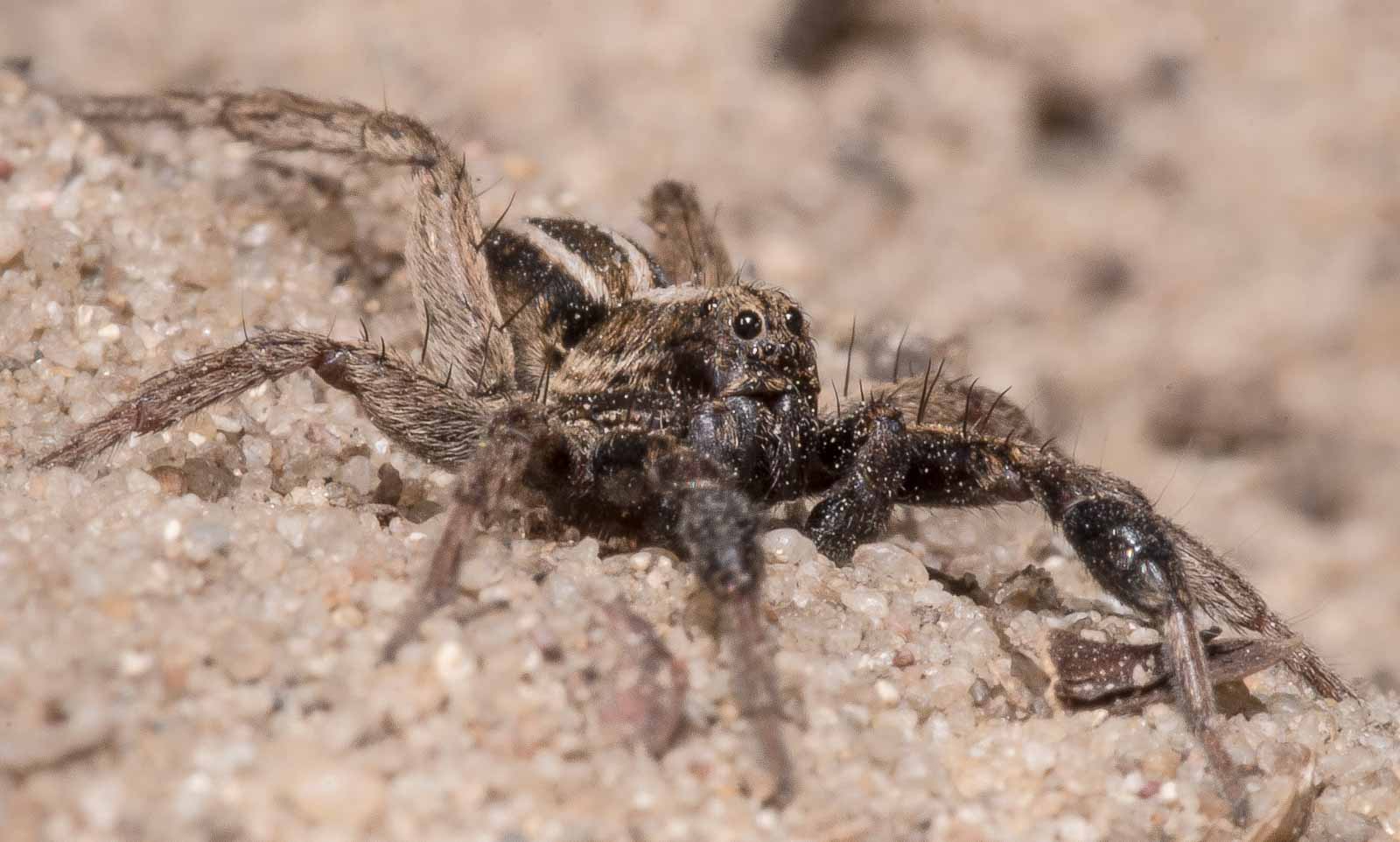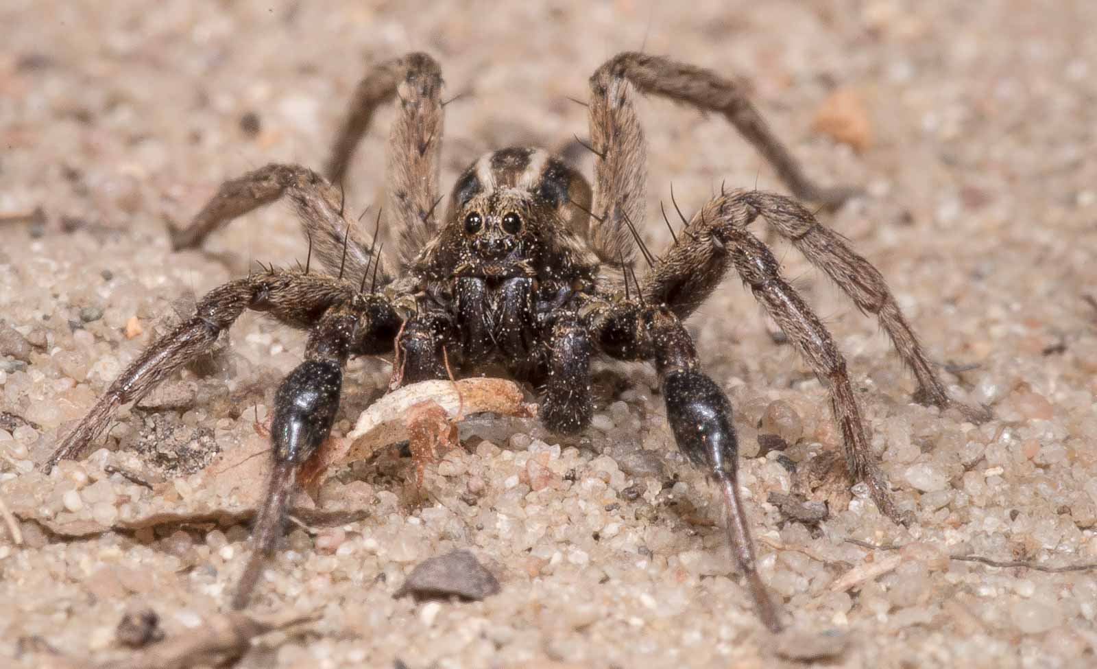Bei der Dickfußpantherspinne handelt es sich um eine tag- und nachtaktive Spinne, die wie die anderen Arten der Gattung in selbstgegrabenen Wohnröhren lebt. Wie andere Wolfsspinnen ist auch die Dickfußpantherspinne ein Lauerjäger, der Beutetiere in passender Größe erlegt, ohne dafür ein Netz zu weben.