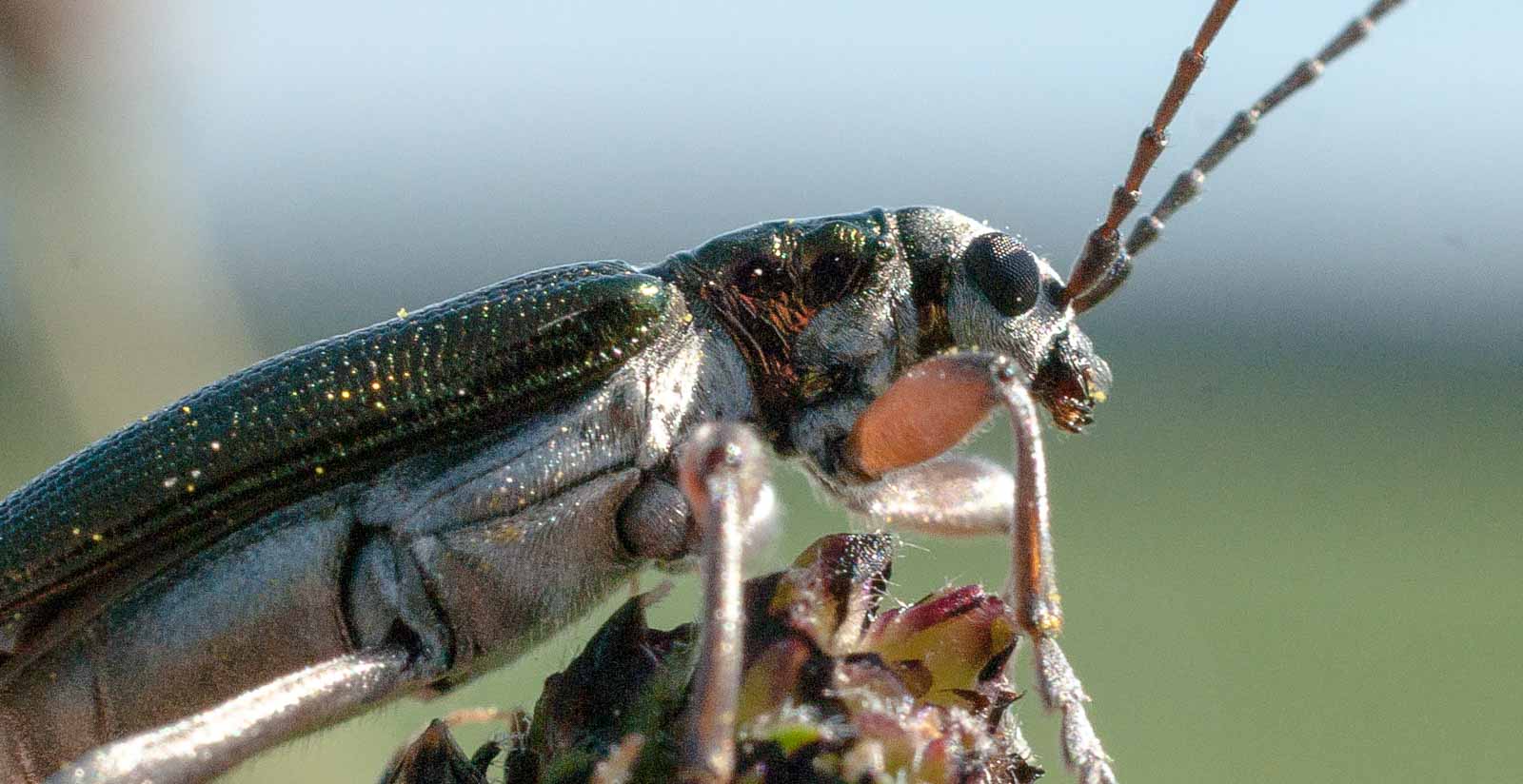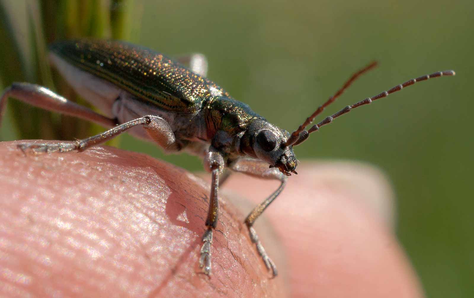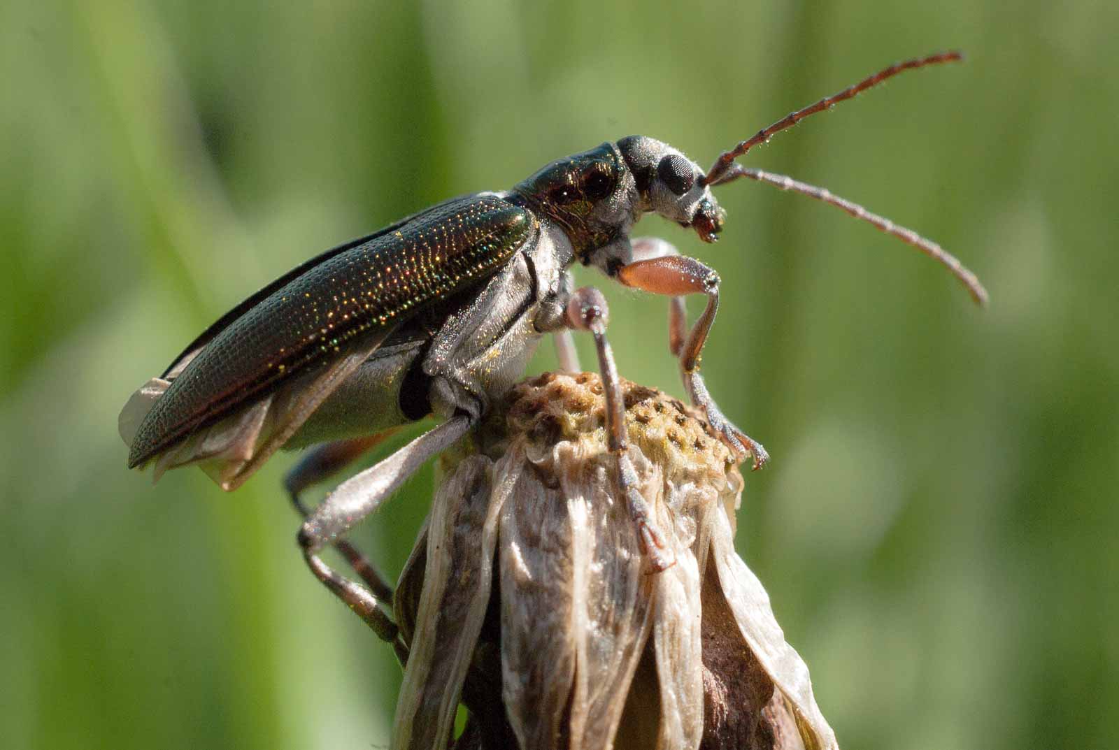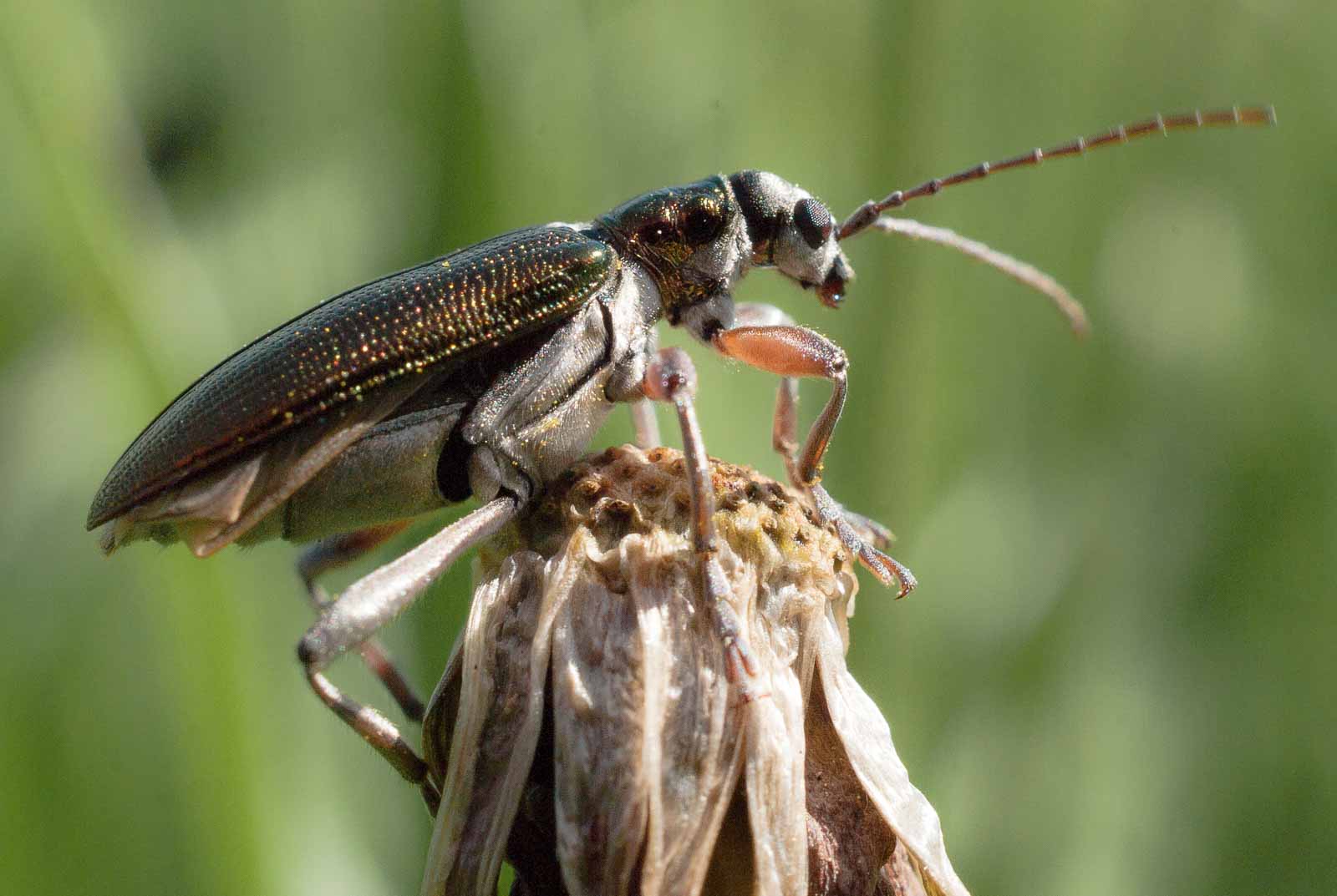 Erwachsene Käfer sind 7-12 Millimeter lang. Elytron ist ganz oben abgerundet. Hinterfemur erreicht die Spitze des Elytrons, die keine Zähne haben. Elytron hat keine Einkerbungen. Antenne und Beine sind rötlich gefärbt, die Oberseite ist bronzegrün.