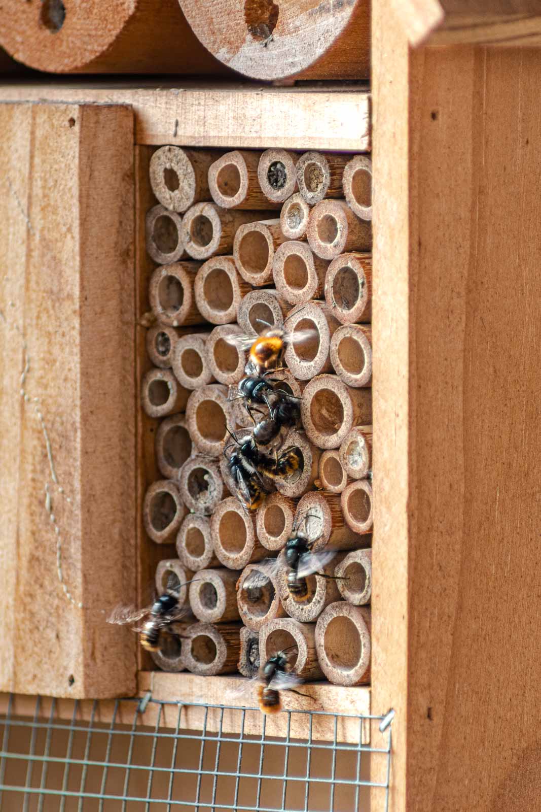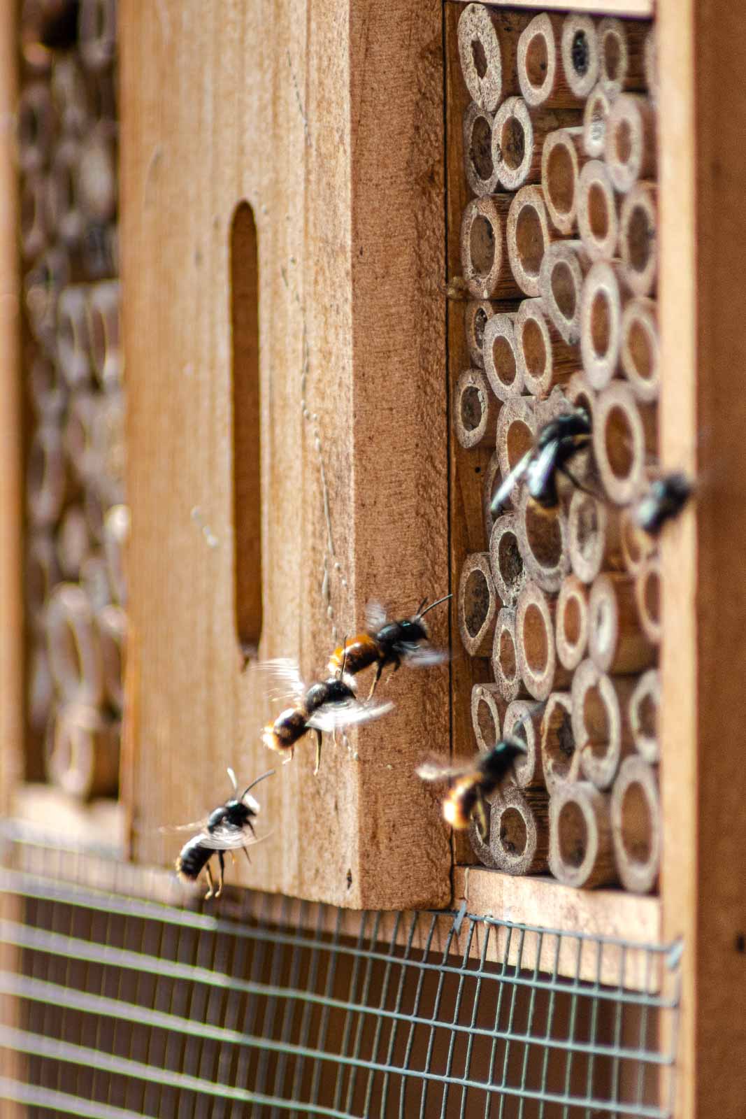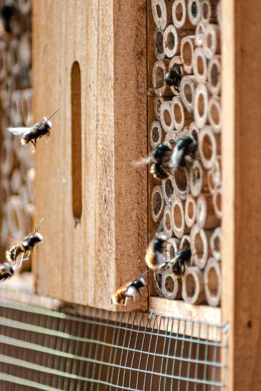 Mauerbienen sind friedfertig, selbst wenn Hunderte von ihnen auf engem Raum nisten.