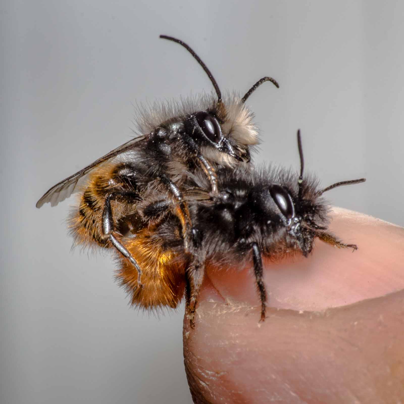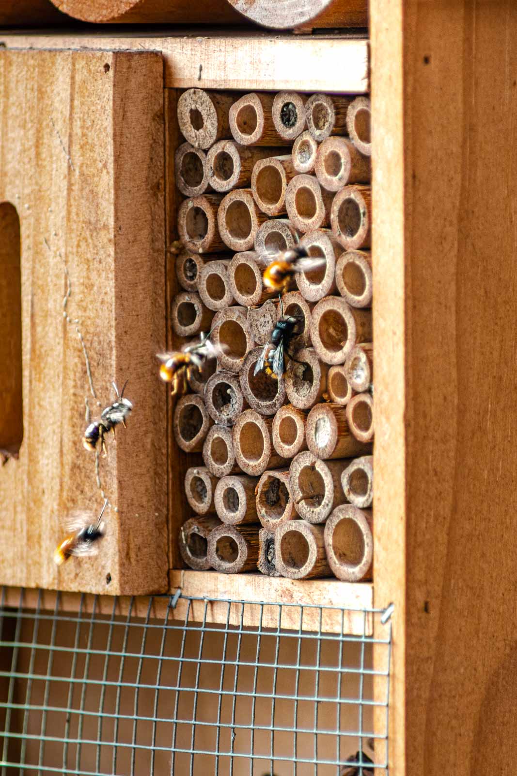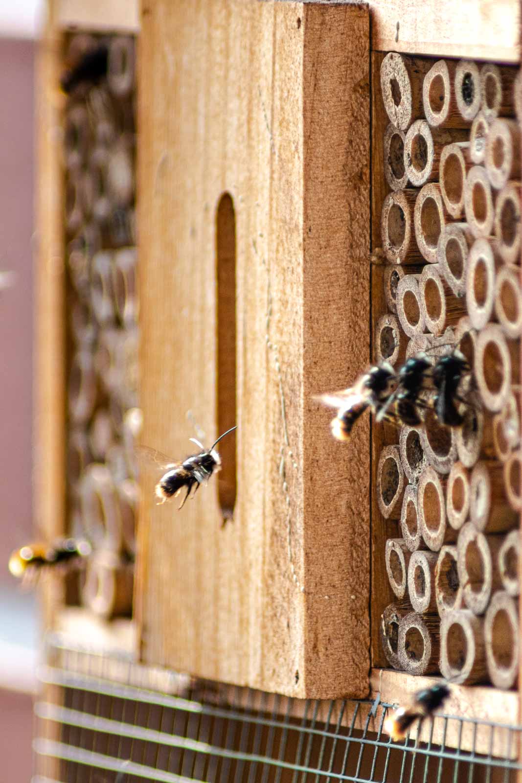 Mauerbienen sind friedfertig, selbst wenn Hunderte von ihnen auf engem Raum nisten.