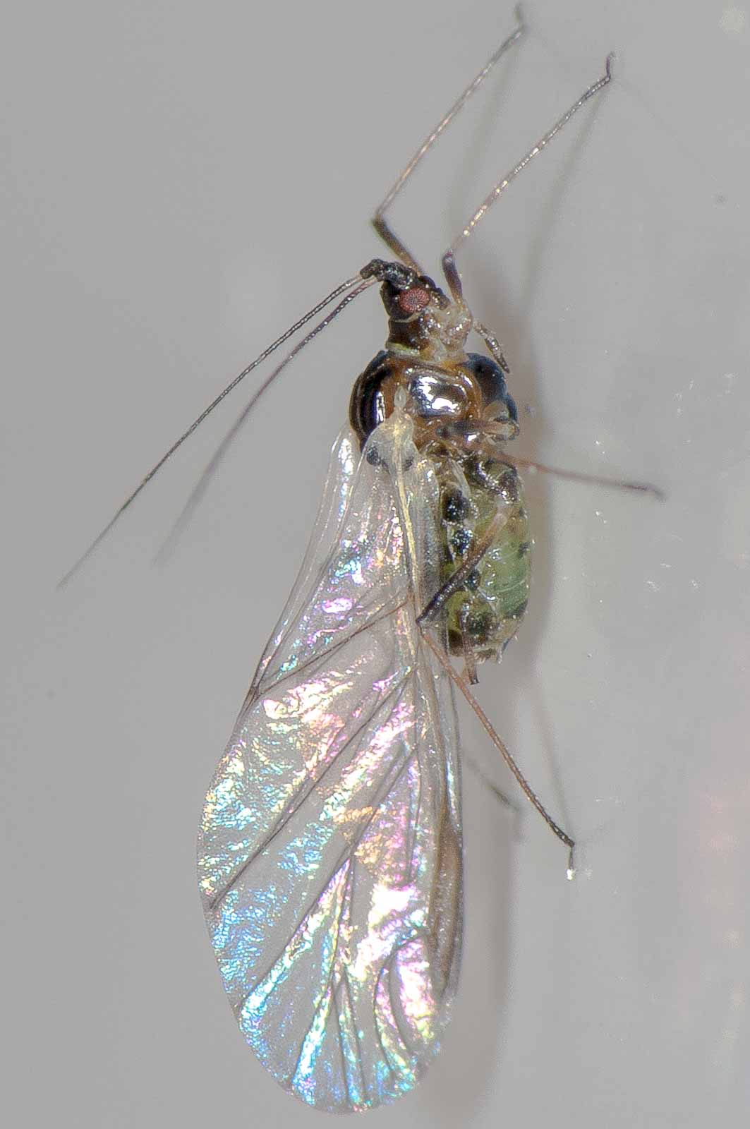 Die Läuse erreichen eine Körperlänge von zwei Millimetern. Sie kommen in zwei Farbvarianten vor. Die flugunfähigen Tiere der Sommergeneration, die keine Flügel besitzen, sind grün gefärbt; bei den folgenden, flugfähigen Generationen sind Kopf und Teile des Thorax schwarzbraun bis schwarz gefärbt.