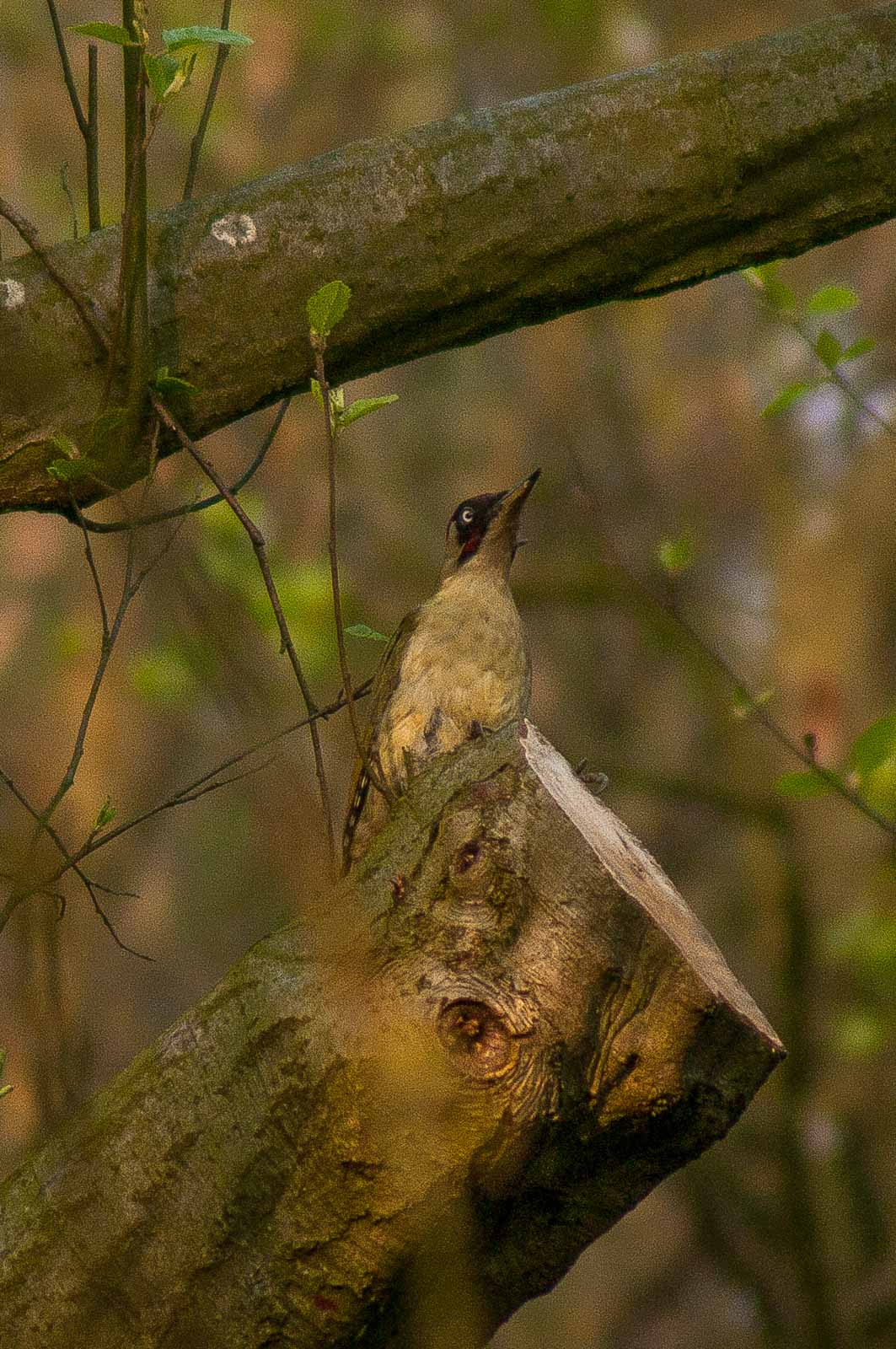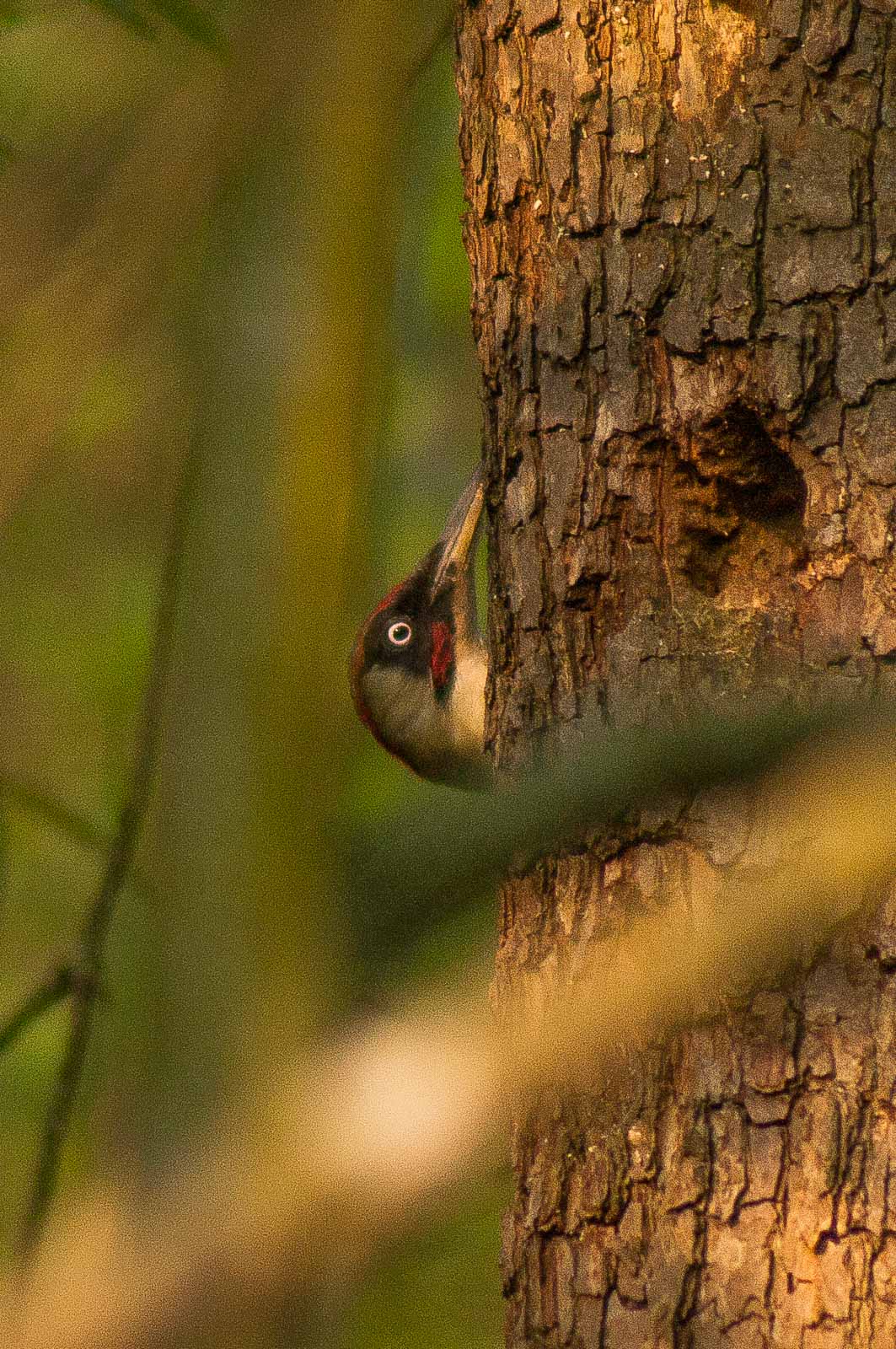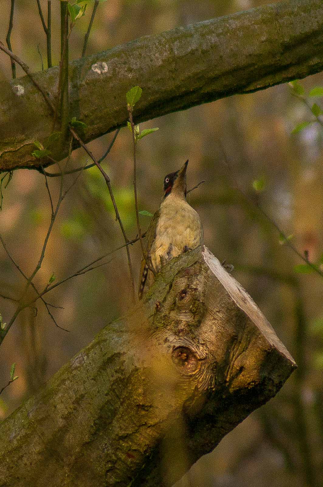 Der Grünspecht sucht seine Nahrung fast ausschließlich auf dem Boden, er hackt viel weniger an Bäumen als die anderen Spechte. Von allen mitteleuropäischen Spechten ist der Grünspecht am meisten auf bodenbewohnende Ameisen spezialisiert. Diese fängt er in ihren Gängen mit seiner 10 Zentimeter langen Zunge, die in ein verhorntes und mit Widerhaken bestücktes Ende ausläuft