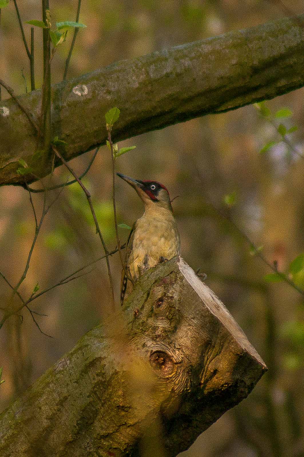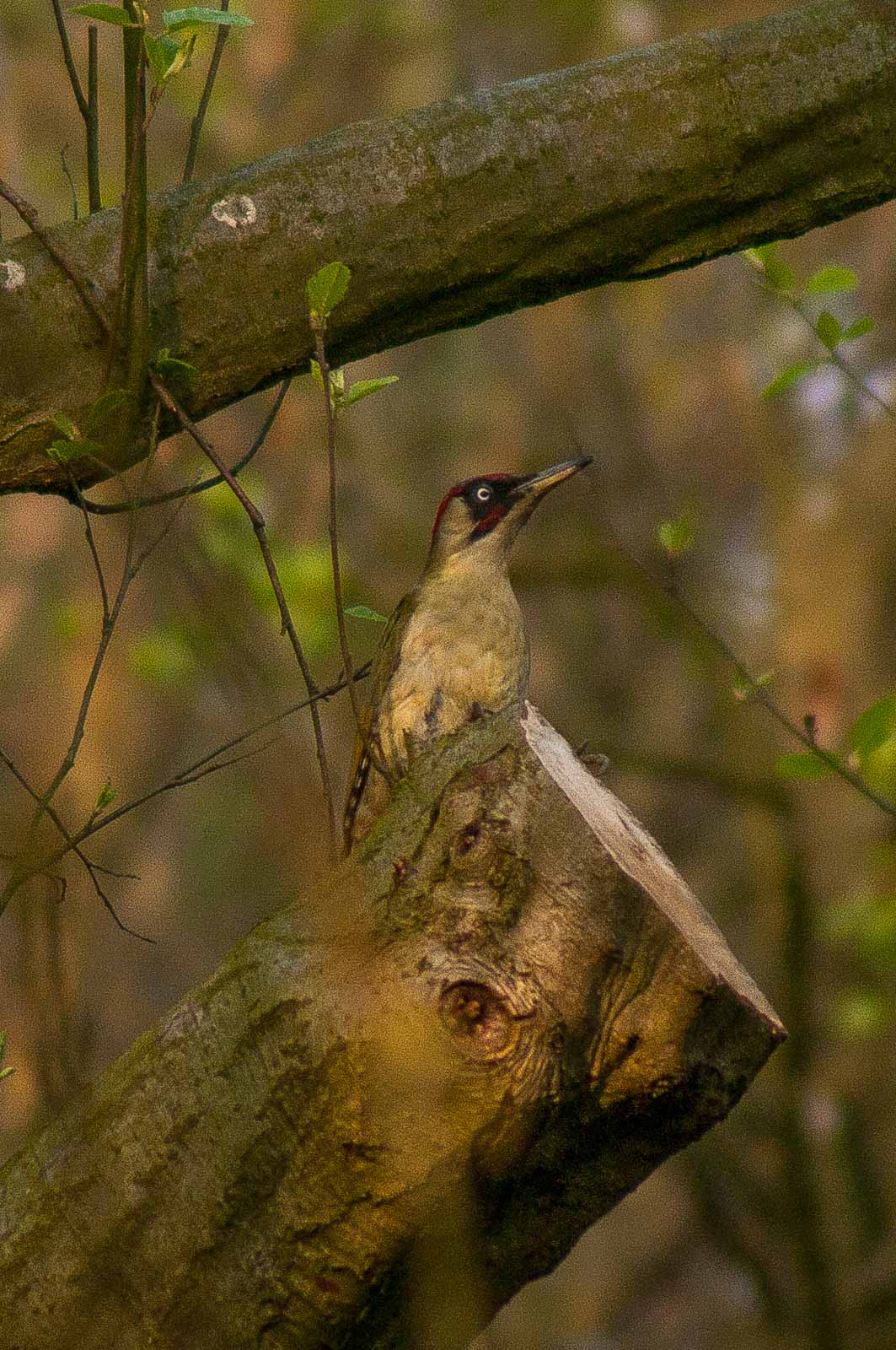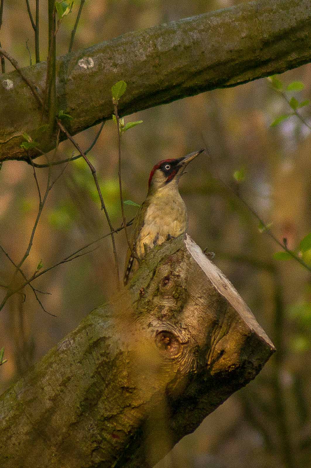 Der Grünspecht sucht seine Nahrung fast ausschließlich auf dem Boden, er hackt viel weniger an Bäumen als die anderen Spechte. Von allen mitteleuropäischen Spechten ist der Grünspecht am meisten auf bodenbewohnende Ameisen spezialisiert. Diese fängt er in ihren Gängen mit seiner 10 Zentimeter langen Zunge, die in ein verhorntes und mit Widerhaken bestücktes Ende ausläuft
