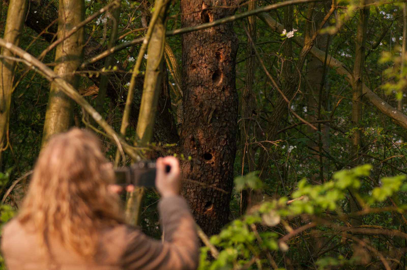 Der Grünspecht ist tagaktiv, bei Dunkelheit bewegt er sich nur noch kletternd. Er hat eine regelmäßige Aktivitätsphase und kann in dieser über Wochen täglich die gleichen Routen abfliegen und an denselben Plätzen seine Nahrung suchen. Die Aktivitätsphase selbst dauert abhängig vom Tageslicht zwischen acht Stunden im Dezember und 15 Stunden im Juli.