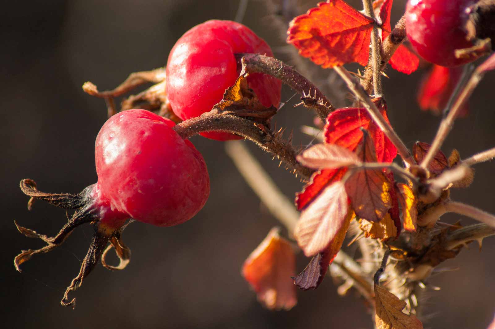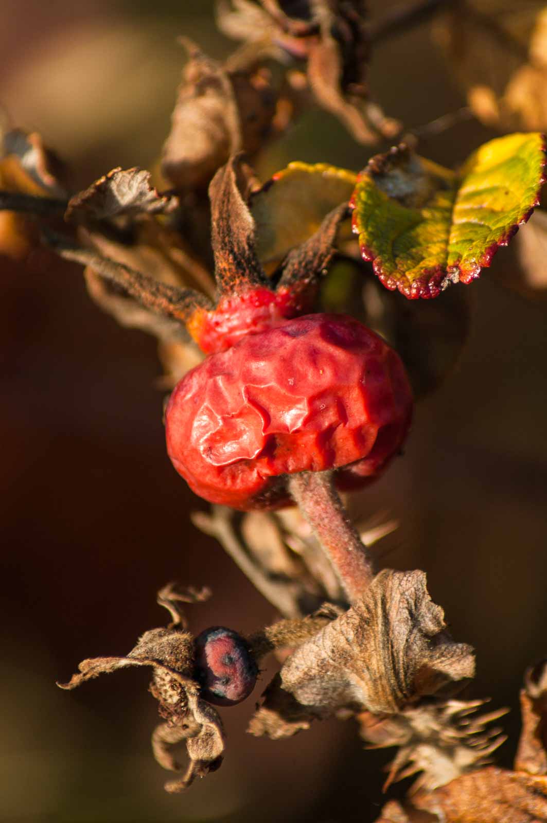 Die Hagebutte ist eine Sammelfrucht, die viele kleine Nüsse enthält.