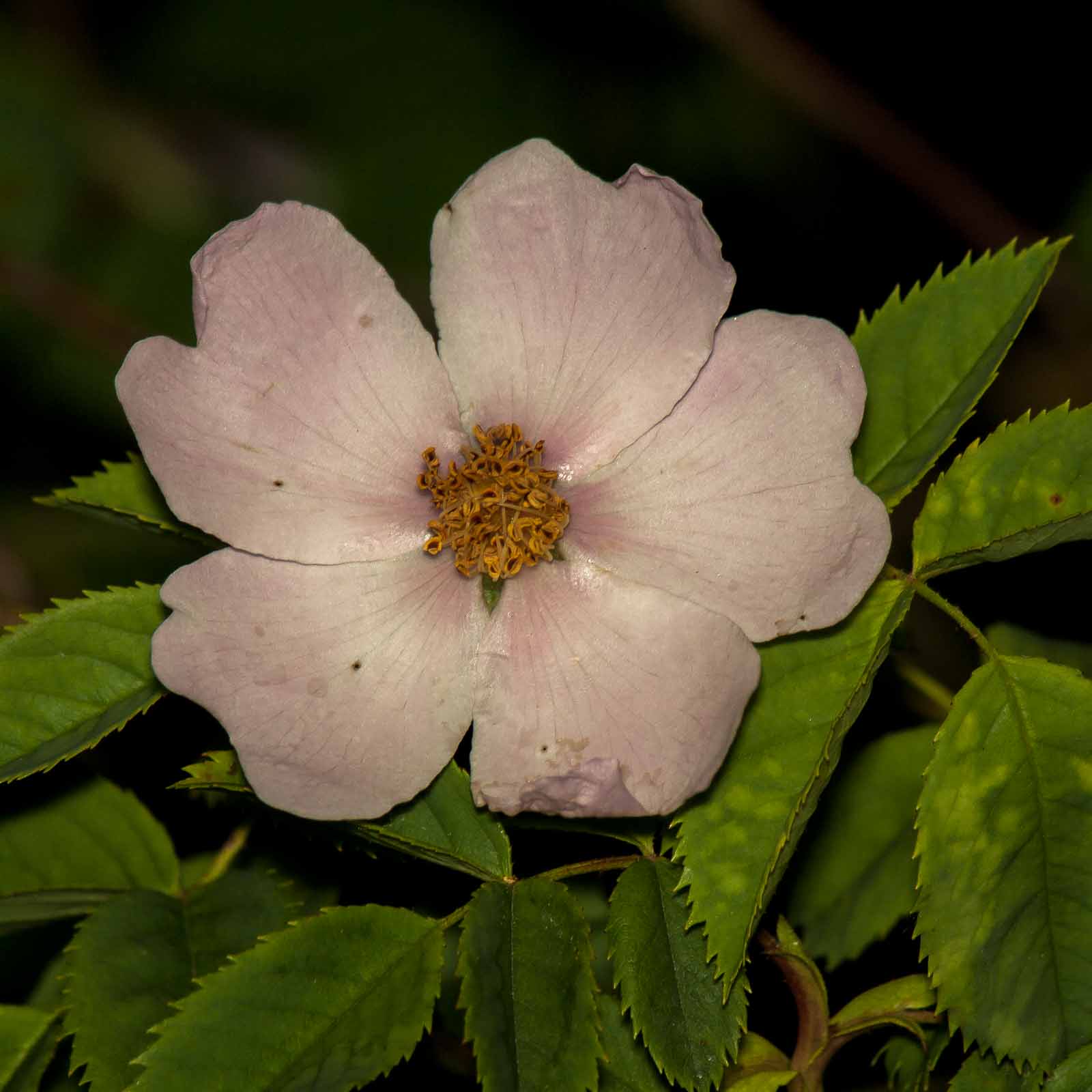 Die zwittrigen Blüten sind radiärsymmetrisch und fünfzählig mit doppelter Blütenhülle. Die fünf kahlen und drüsenlosen bis drüsig gewimperten Kelchblätter sind nach der Anthese zurückgeschlagen und fallen frühzeitig ab, so dass sie zur Fruchtreife nicht mehr vorhanden sind. Der Durchmesser der Blütenkrone beträgt meist 3,5 bis 4,5 cm, seltener zwischen 2,5 und 5 cm. Die fünf Kronblätter sind meist hellrosafarben, selten weiß oder kräftig rosafarben.