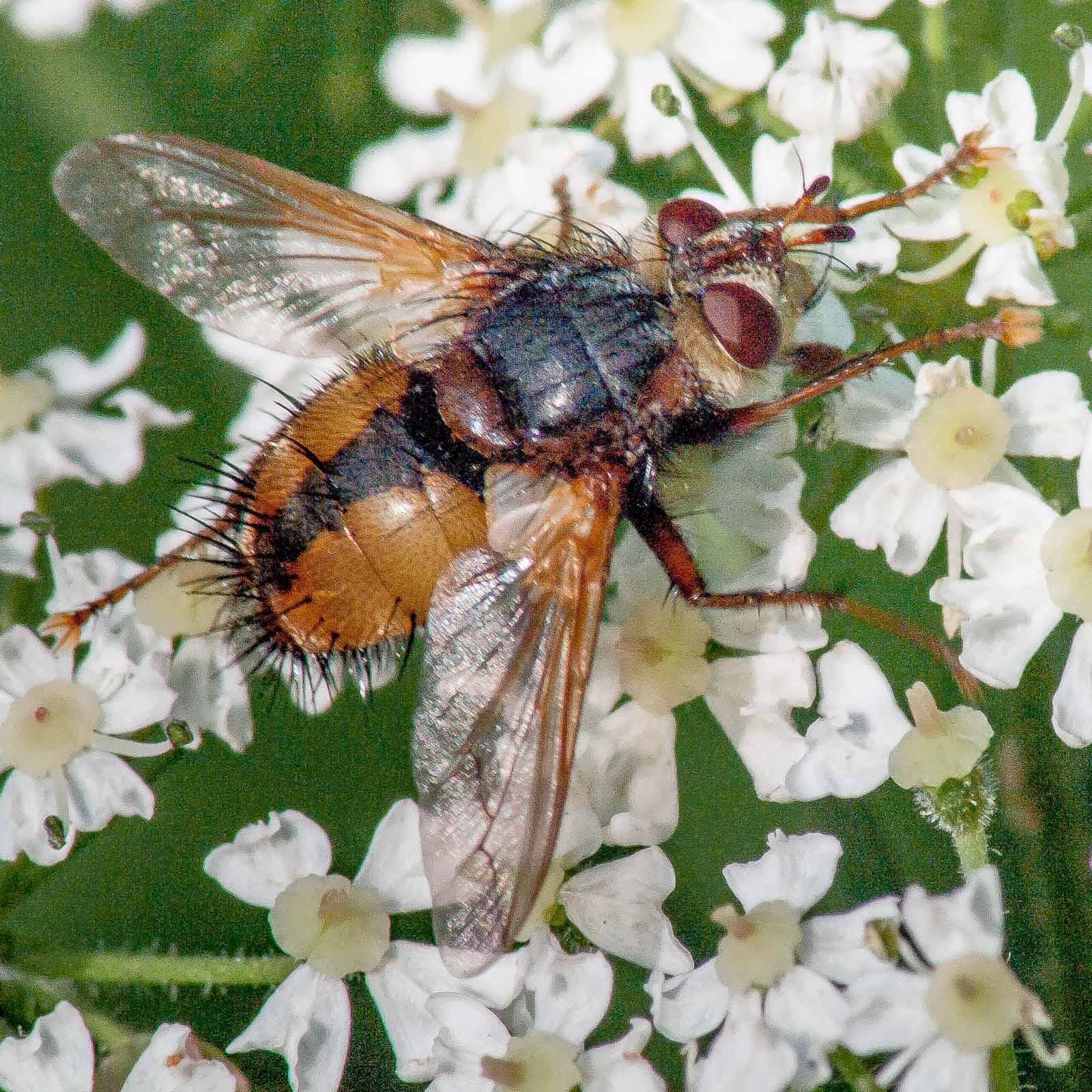 Die Igelfliege (Tachina fera) gehört zur Familie der Raupenfliegen (Tachinidae).