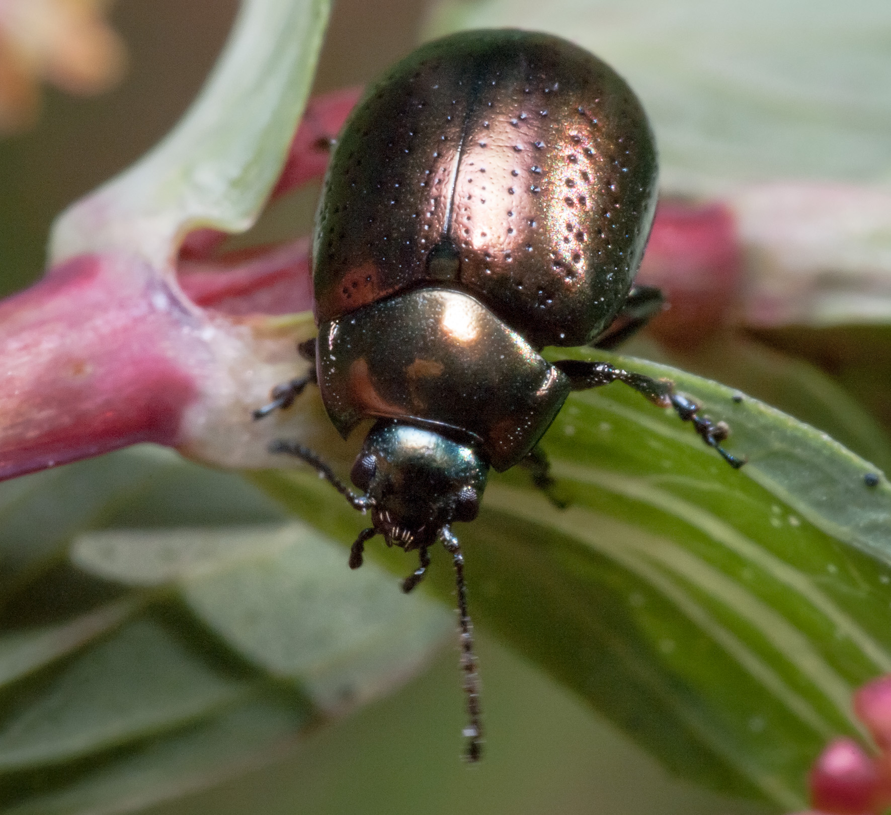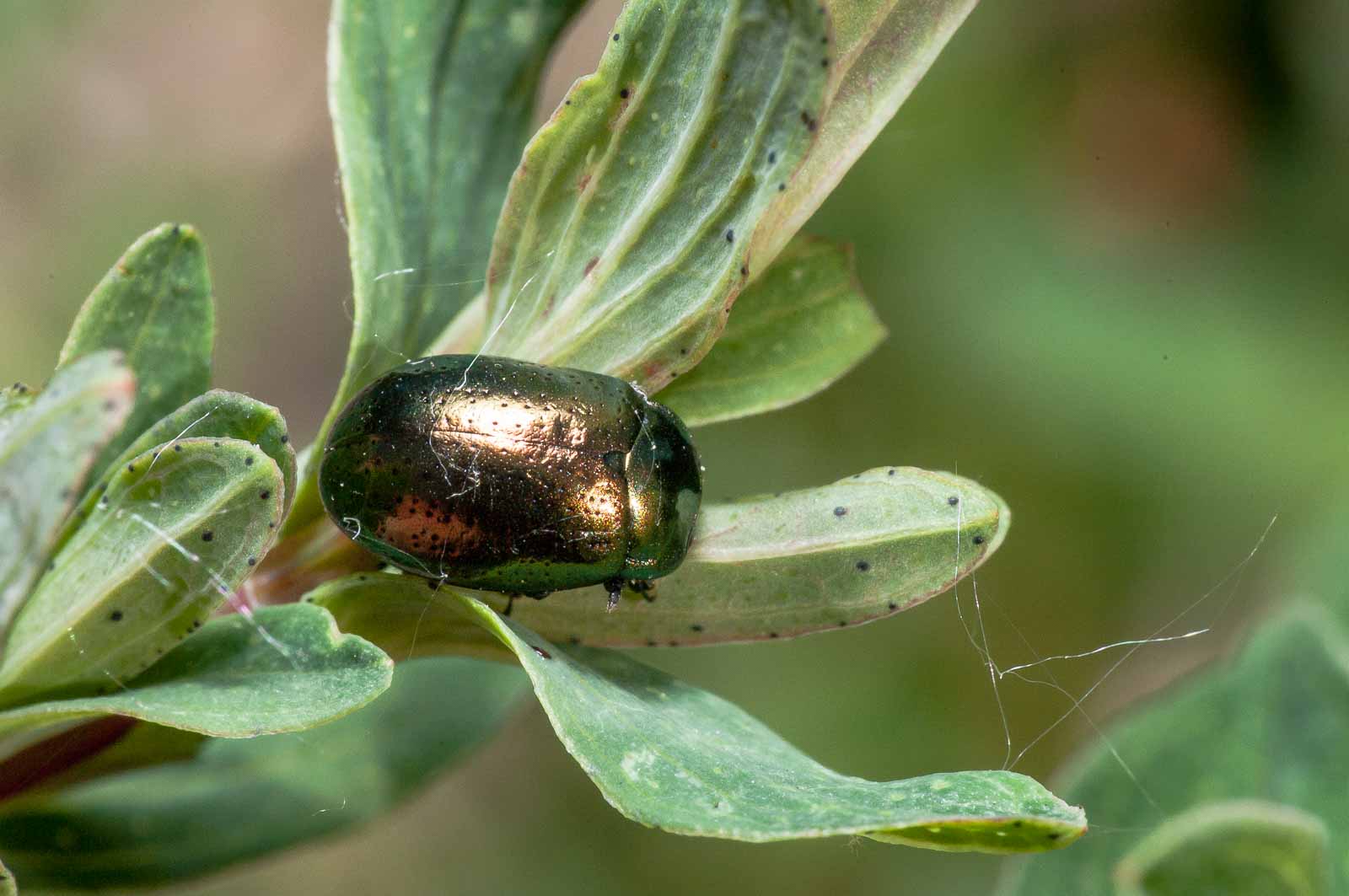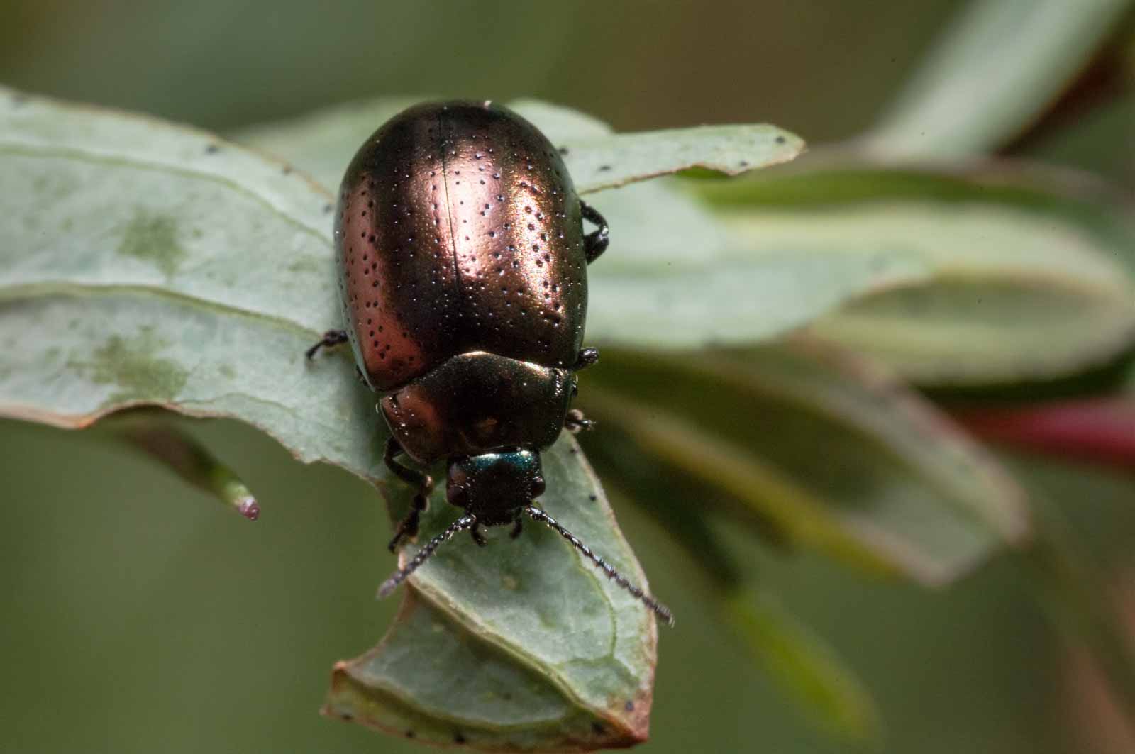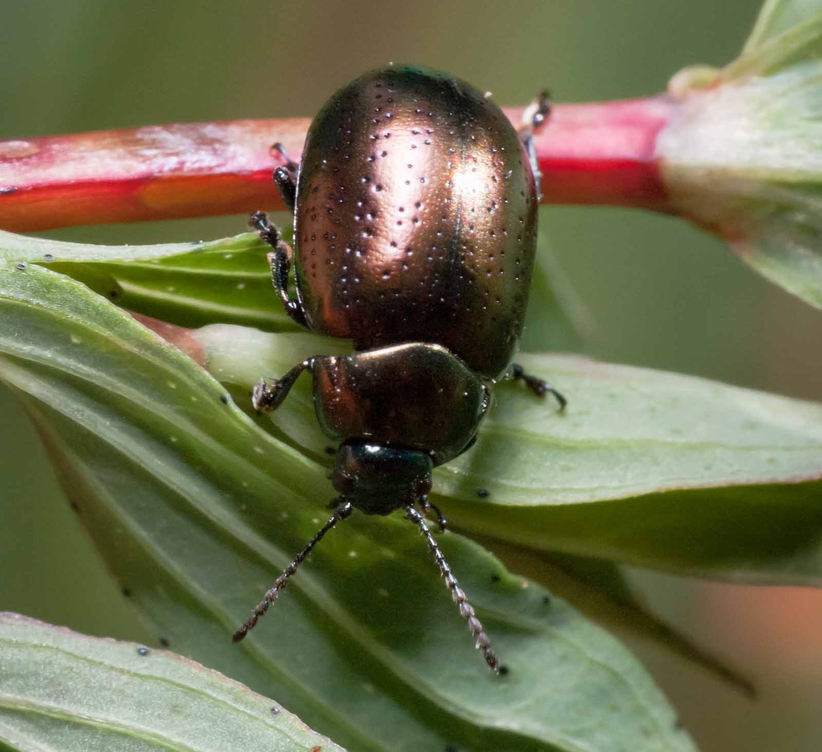 Die Käfer fliegen in der Sommerjahreshälfte in den Monaten Mai bis September. Sie fressen an Minze und Johanniskräutern (Hypericum). Die Larven schlüpfen gewöhnlich im Mai.