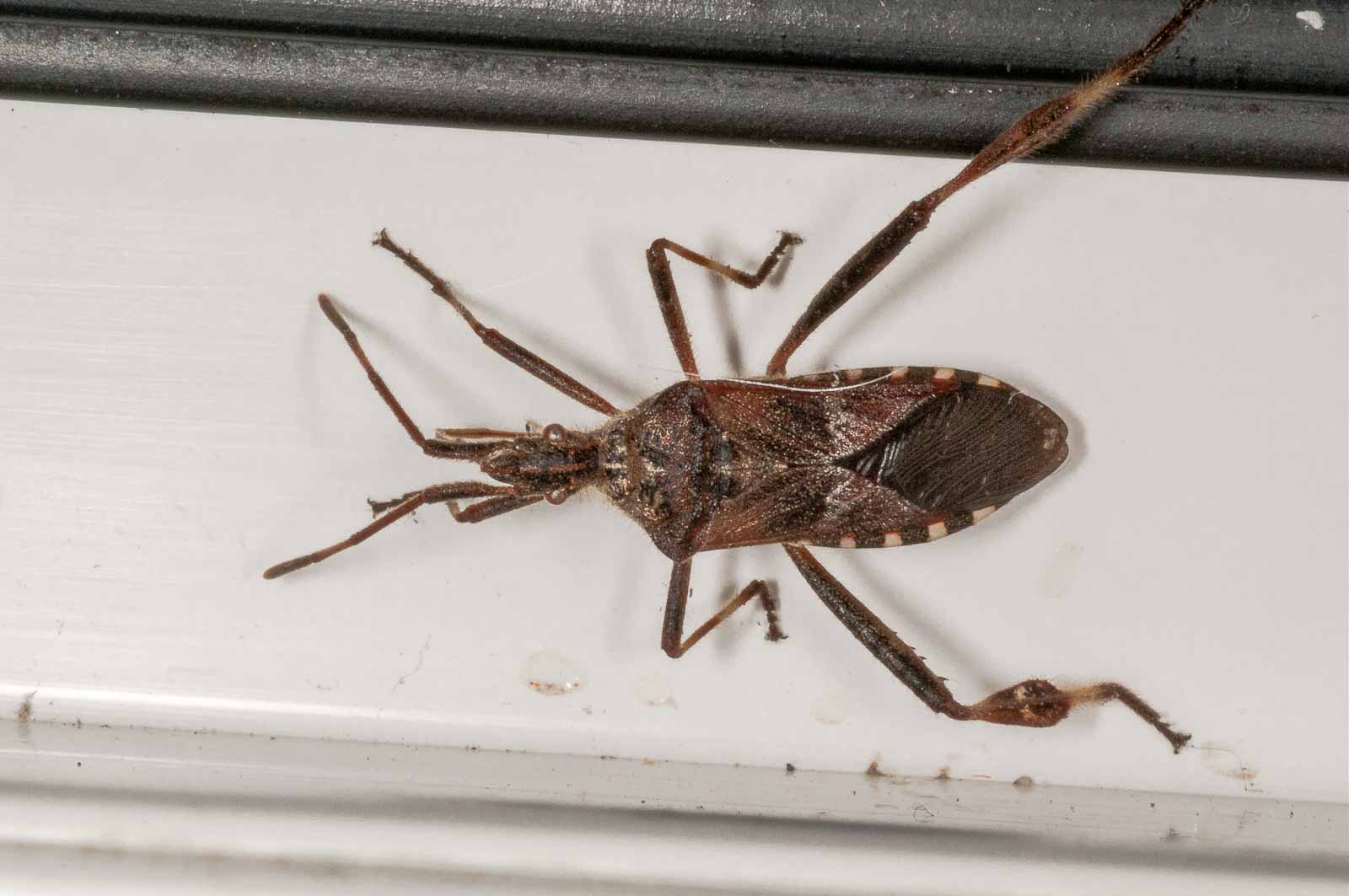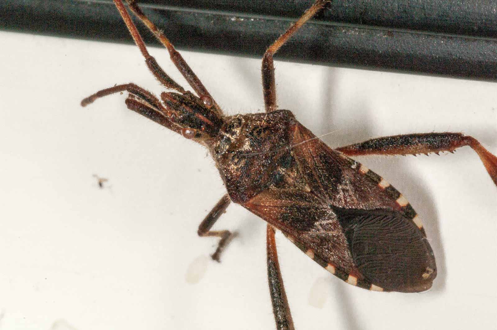 Amerikanische Kiefernwanzen sind vergleichsweise große und auffällige Wanzen. Die mit langen Fühlern ausgestatteten Tiere haben eine Körperlänge von 15 bis 20 Millimeter und sind 5 bis 7 Millimeter breit. Die Tibien der Hinterbeine sind auffällig verbreitert. Die Oberseite ist rötlich braun bis schwarz, in der Mitte der Flügeldecken verläuft quer ein charakteristisches, schmal weißes Zickzackband, dieses kann aber auch schwach ausgeprägt sein oder fehlen. Die Oberseite des Abdomens zeigt, nur im Flug sichtbar und sonst von den Flügeln verdeckt, auf orangem oder gelben Grund fünf schwarze Querbänder.