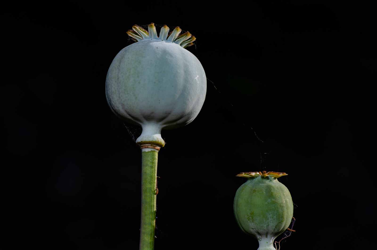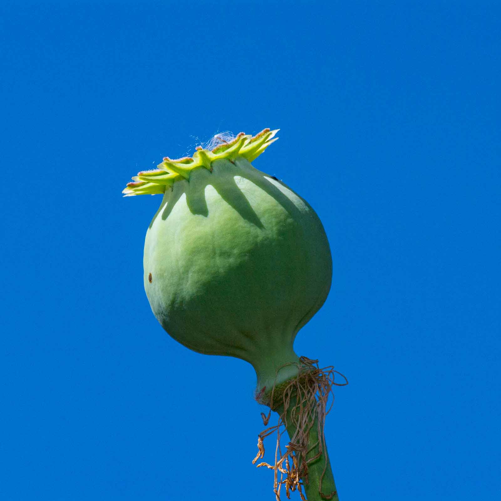 Die typische, bei einer Länge von 10 bis 22 Millimetern bis zu doppelt so lange wie breite und an ihrer Basis abgerundete Kapselfrucht enthält einige hundert Samen. Die Kapselfrucht ist durch zahlreiche „falsche Scheidewände“ (= Wucherungen der Samenleisten) in unvollständig gefächerte Porenkapseln (= „Streubüchsen“) unterteilt. Die dunklen Samen („Mohnkörner“) sind bei einem Durchmesser von bis zu 1 Millimeter sehr klein.