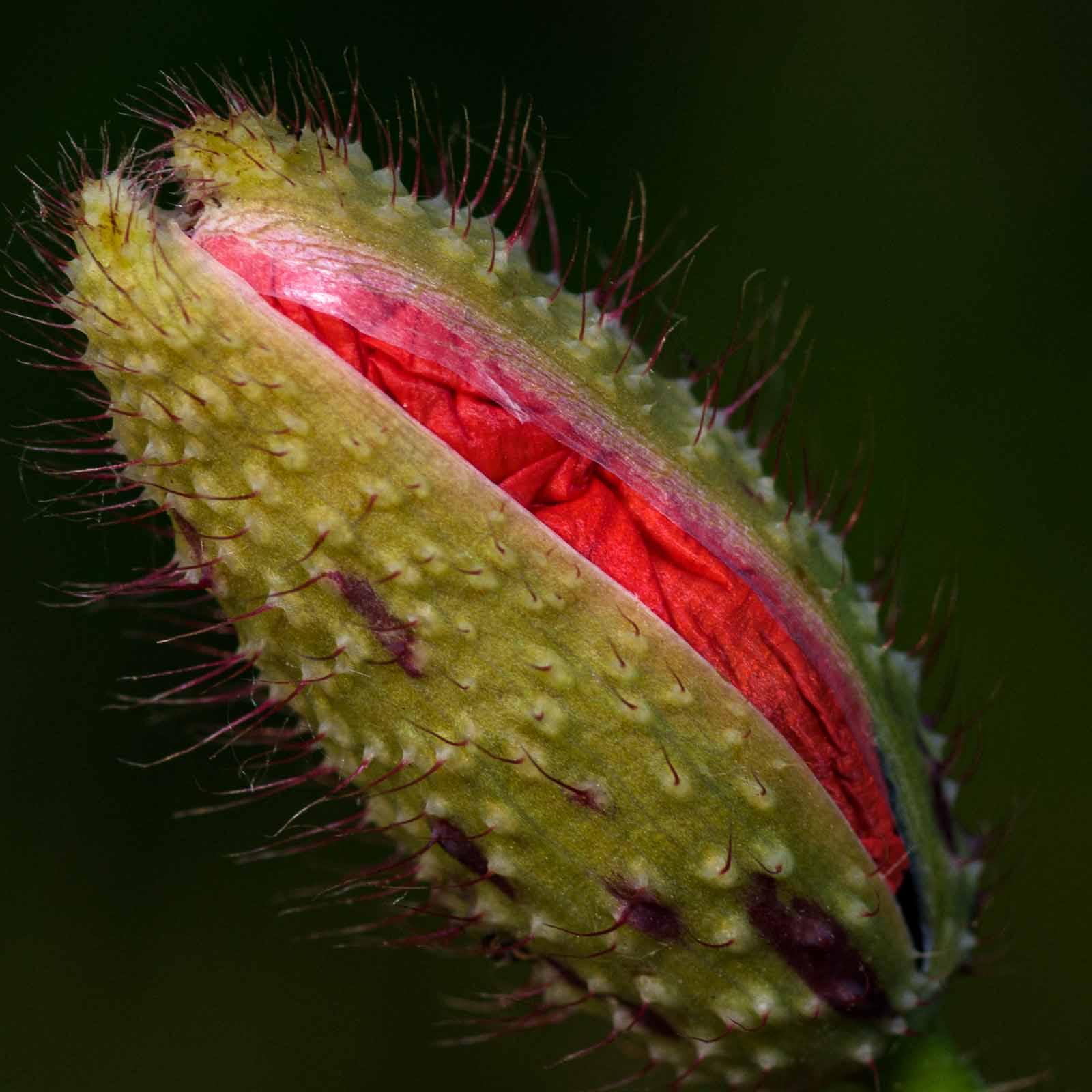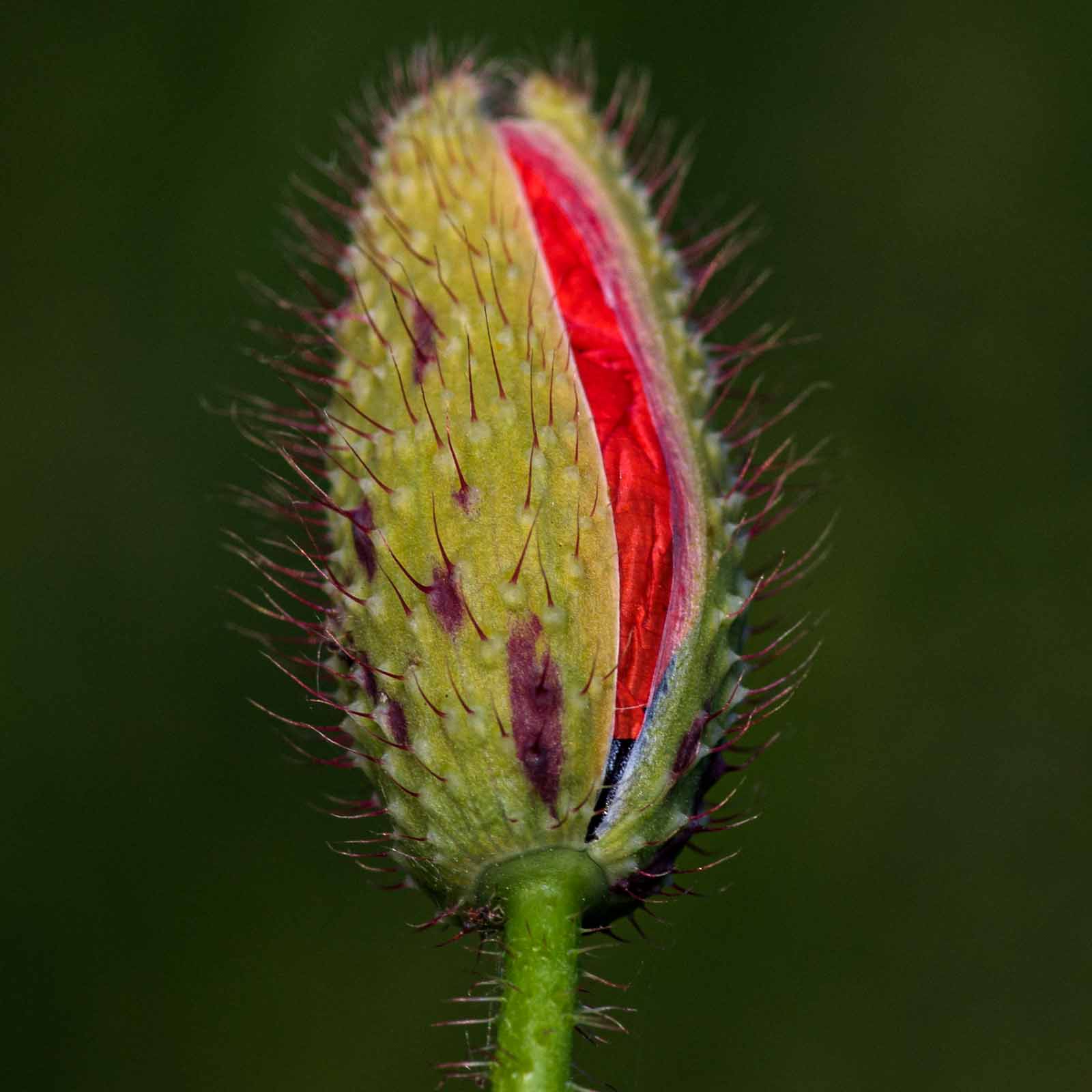 Ein Exemplar blüht nur zwei bis drei Tage. Die Nektar– und duftlosen Blüten sind vormännliche „Pollen-Scheibenblumen“. Die durch Anthocyane (beispielsweise Mecocyanin) rot gefärbten Kronblätter werden von den rotblinden, dafür aber UV-Licht wahrnehmenden Bienen wegen ihrer starken UV-Reflexion wahrscheinlich blauviolett gesehen. Die schwarzen Flecksaftmale entstehen durch Überlagerung von blauen und roten Farbzellen (Subtraktionsfarbe). Je Blüte werden etwa 2,5 Millionen grünschwarze Pollenkörner produziert; diese ungewöhnlich hohe Anzahl wird nur noch von der Pfingstrose übertroffen. Die Pollendarbietung unterliegt einer Tagesrhythmik. Am reichlichsten ist sie zur Zeit des Hauptbesuchs bis 10 Uhr morgens. Die „streifenförmigen“ Narben liegen einer Scheibe des Fruchtknotens auf, die als Anflugplatz für verschiedene Insekten dient. Auch Windbestäubung ist möglich. Die Blüten sind selbststeril.