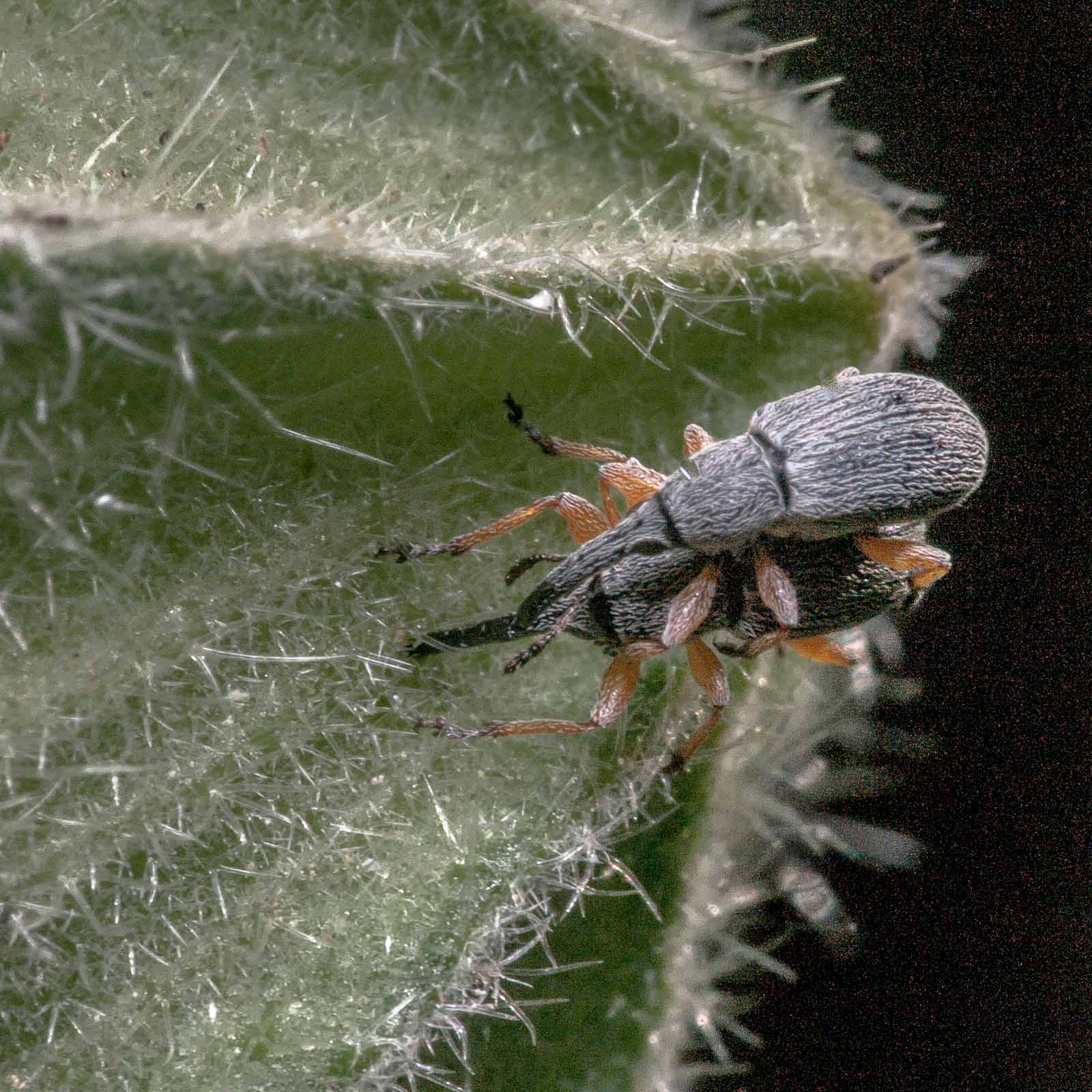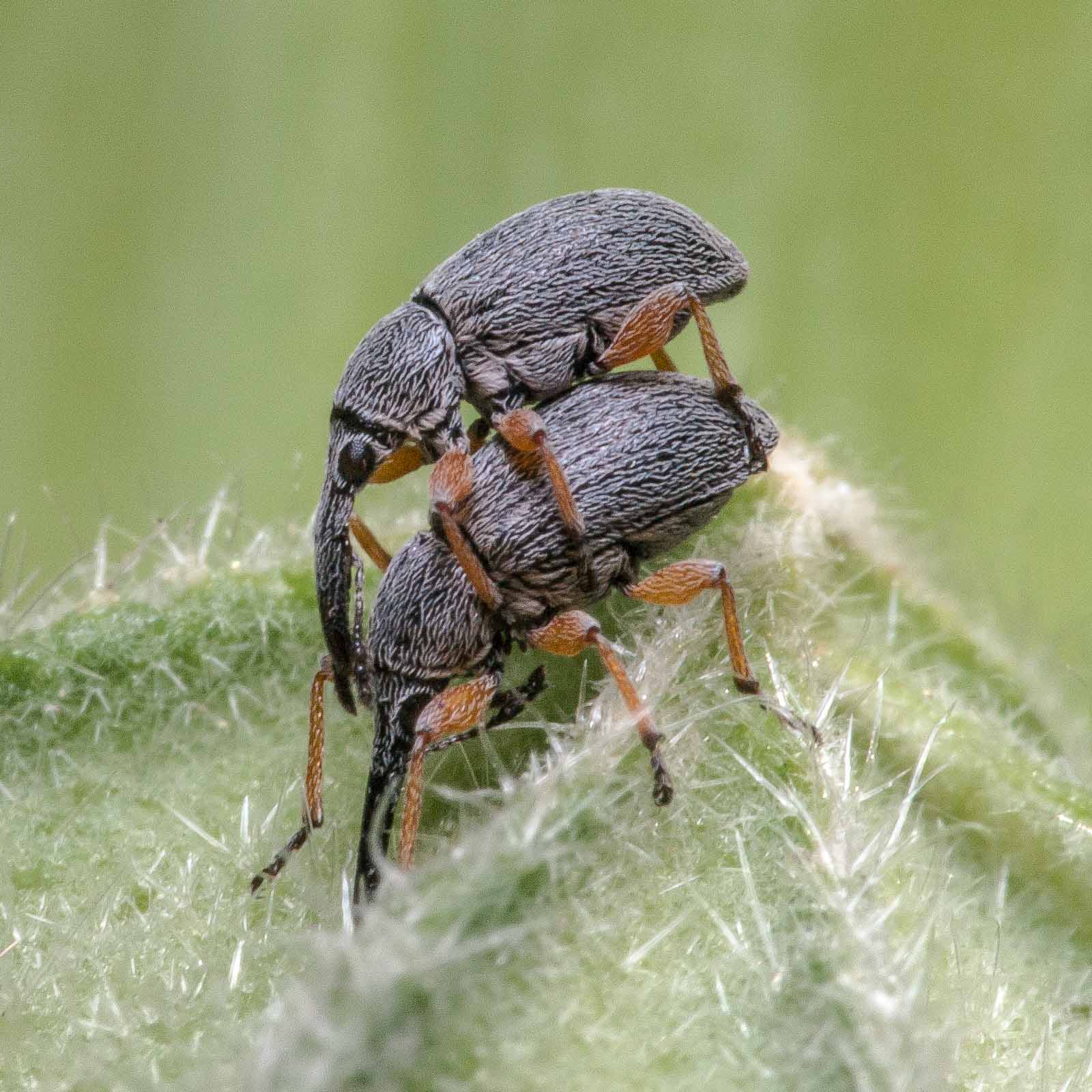 Die Käfer werden ohne die rüsselartige Kopfverlängerung ca. 2 bis 4 mm lang. Der Körper ist schwarz, allerdings dicht hellgrau behaart, so dass die Käfer bei flüchtiger Betrachtung grau wirken. Neben dem Schildchen ist die Behaarung etwas verdichtet. Die Beine sind gelbbraun gefärbt. Die Fühlerkeule setzt sich aus drei locker aneinandergefügten Gliedern zusammen und ist ungewöhnlich lang, so lang wie die sechs vorhergehenden Fühlerglieder zusammen.