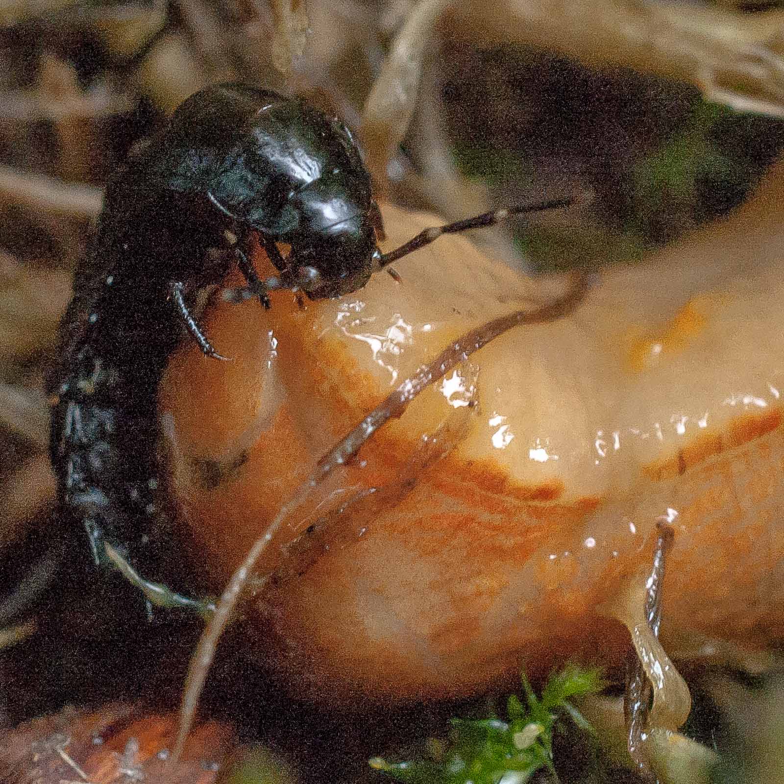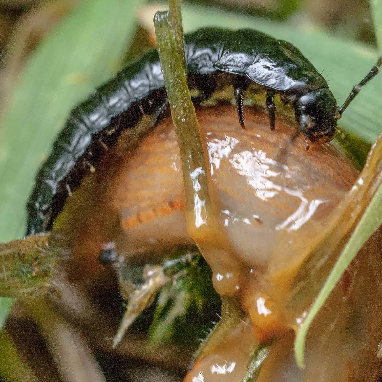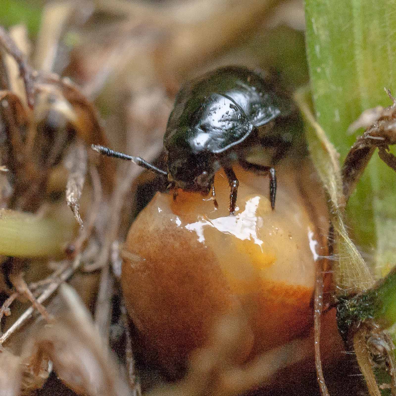 Die flugunfähigen, nachtaktiven Tiere jagen am Waldboden Insekten, Schnecken, Würmer und Aas, manchmal gehen sie auch an Obst. Tagsüber verstecken sich die Käfer unter Moos oder Steinen, nur sehr selten kann man sie auch am Tage beobachten. Bei Gefahr sondern sie aus Drüsen am Hinterleib eine übel riechende Flüssigkeit aus. Die Larven verpuppen sich nach mehreren Häutungen im Boden. Aus ihnen schlüpft dann der fertige Käfer. Die Art bildet eine Generation im Jahr, die von August bis September angetroffen werden kann. Die Käfer leben etwa zwei bis drei Jahre.