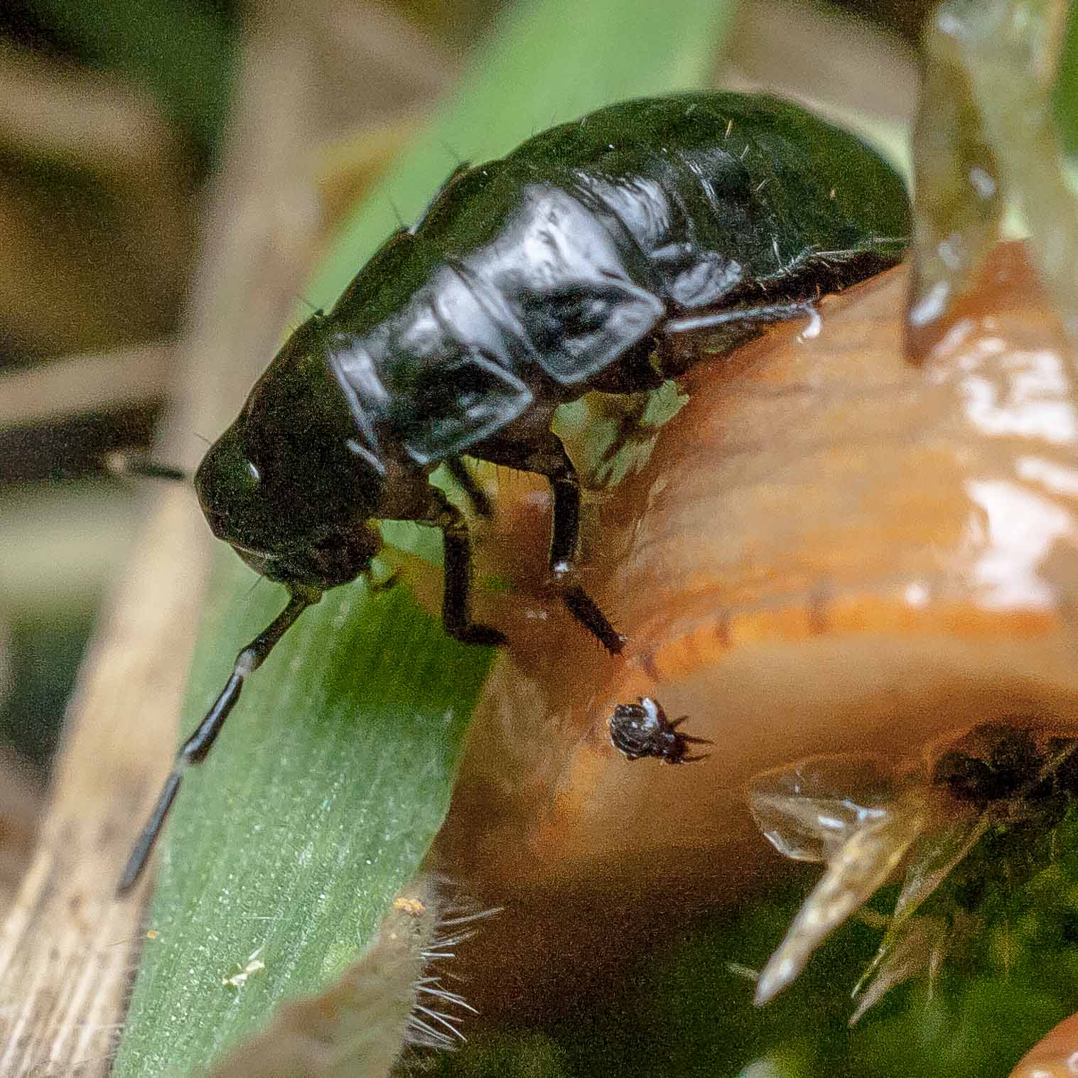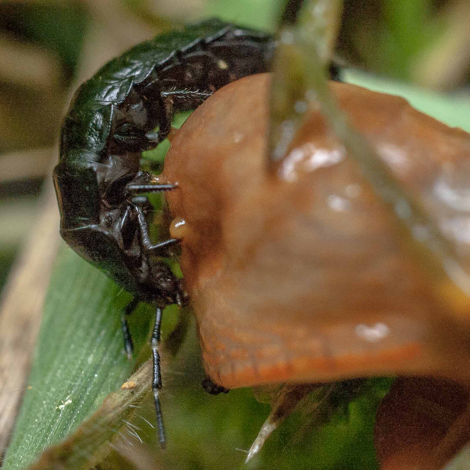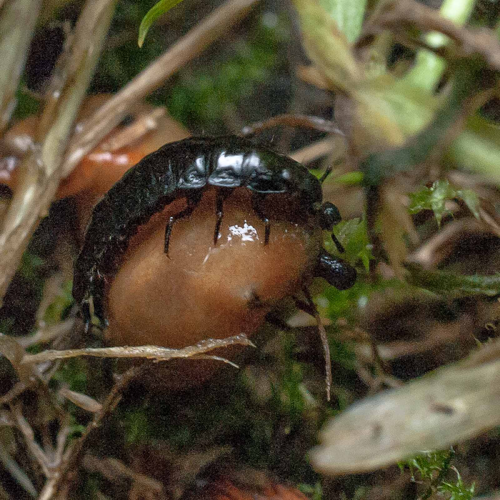 Die flugunfähigen, nachtaktiven Tiere jagen am Waldboden Insekten, Schnecken, Würmer und Aas, manchmal gehen sie auch an Obst. Tagsüber verstecken sich die Käfer unter Moos oder Steinen, nur sehr selten kann man sie auch am Tage beobachten. Bei Gefahr sondern sie aus Drüsen am Hinterleib eine übel riechende Flüssigkeit aus. Die Larven verpuppen sich nach mehreren Häutungen im Boden. Aus ihnen schlüpft dann der fertige Käfer. Die Art bildet eine Generation im Jahr, die von August bis September angetroffen werden kann. Die Käfer leben etwa zwei bis drei Jahre.