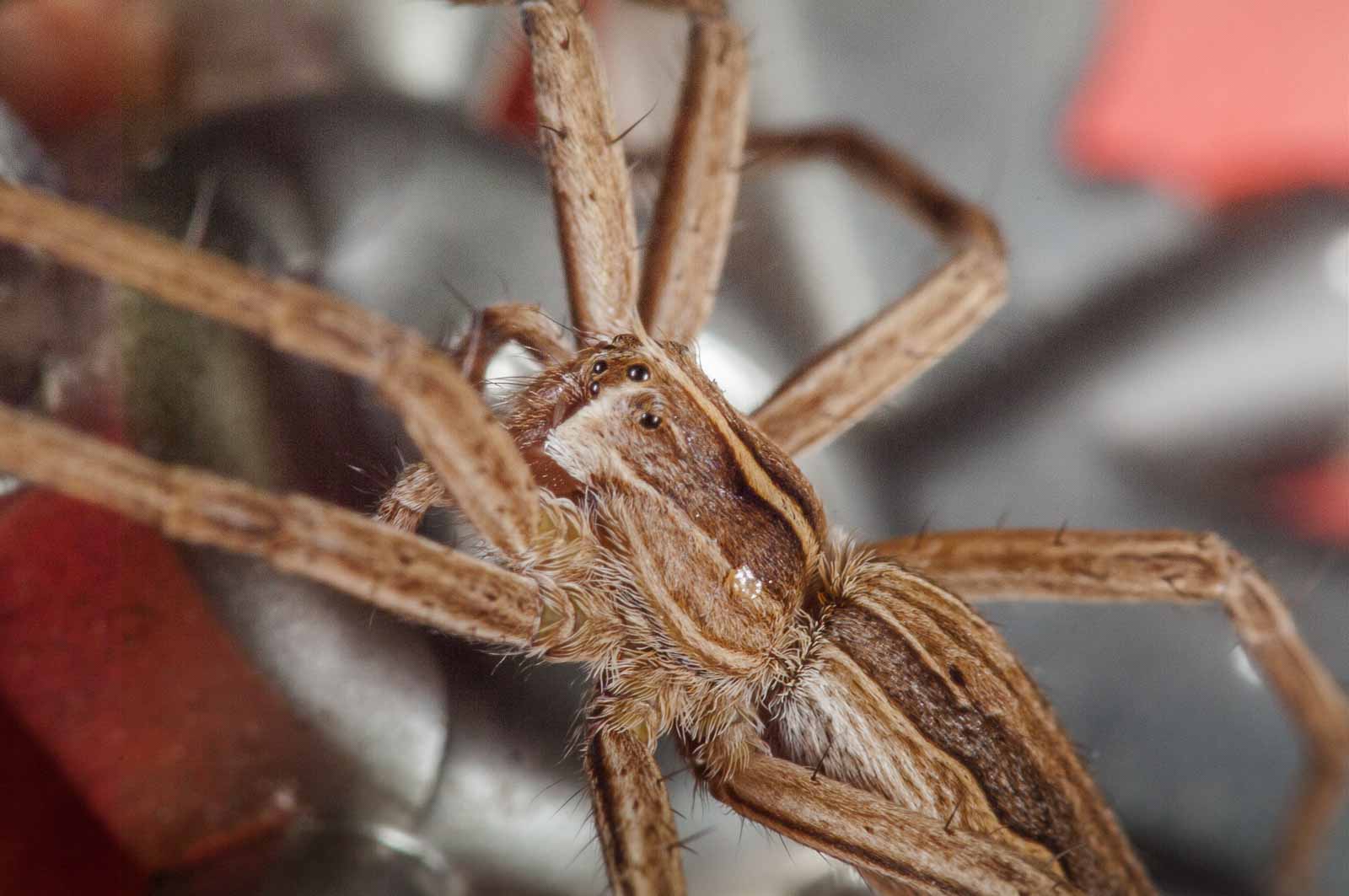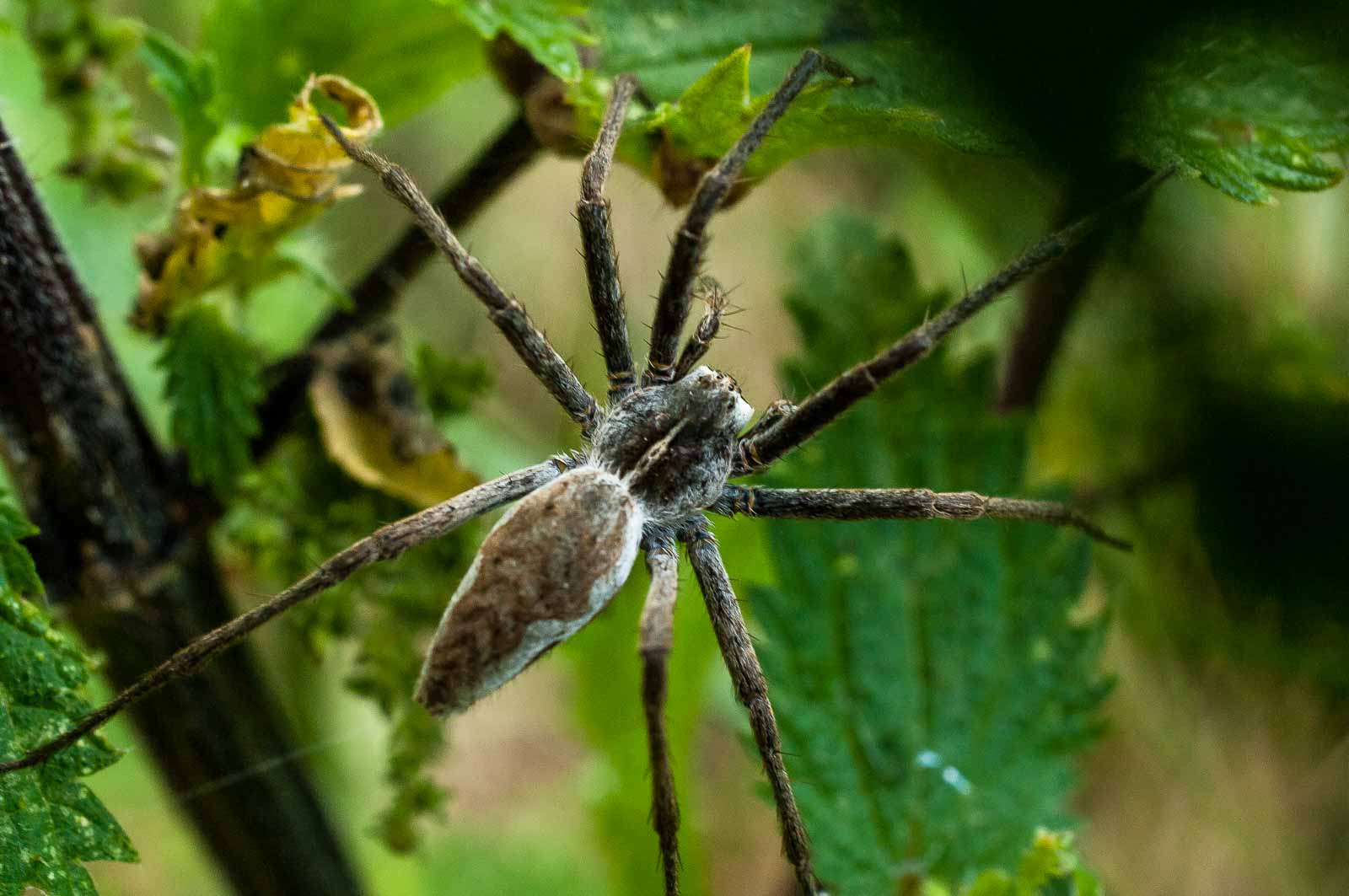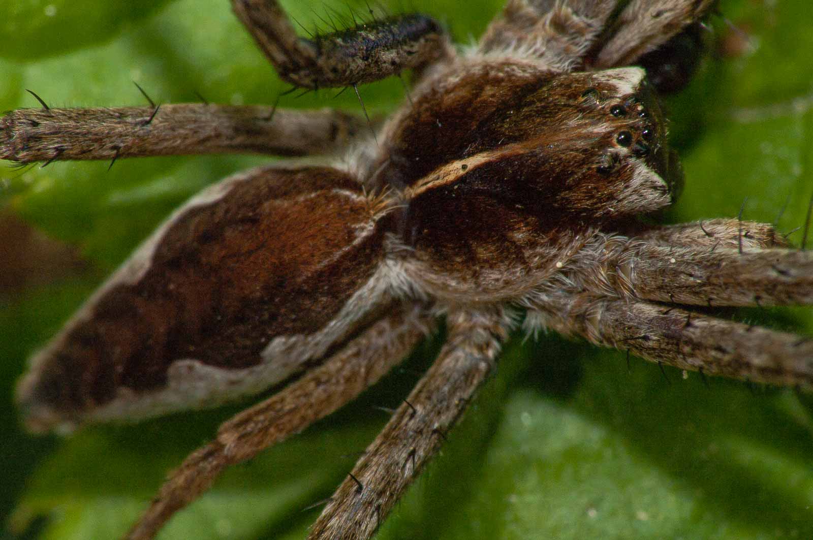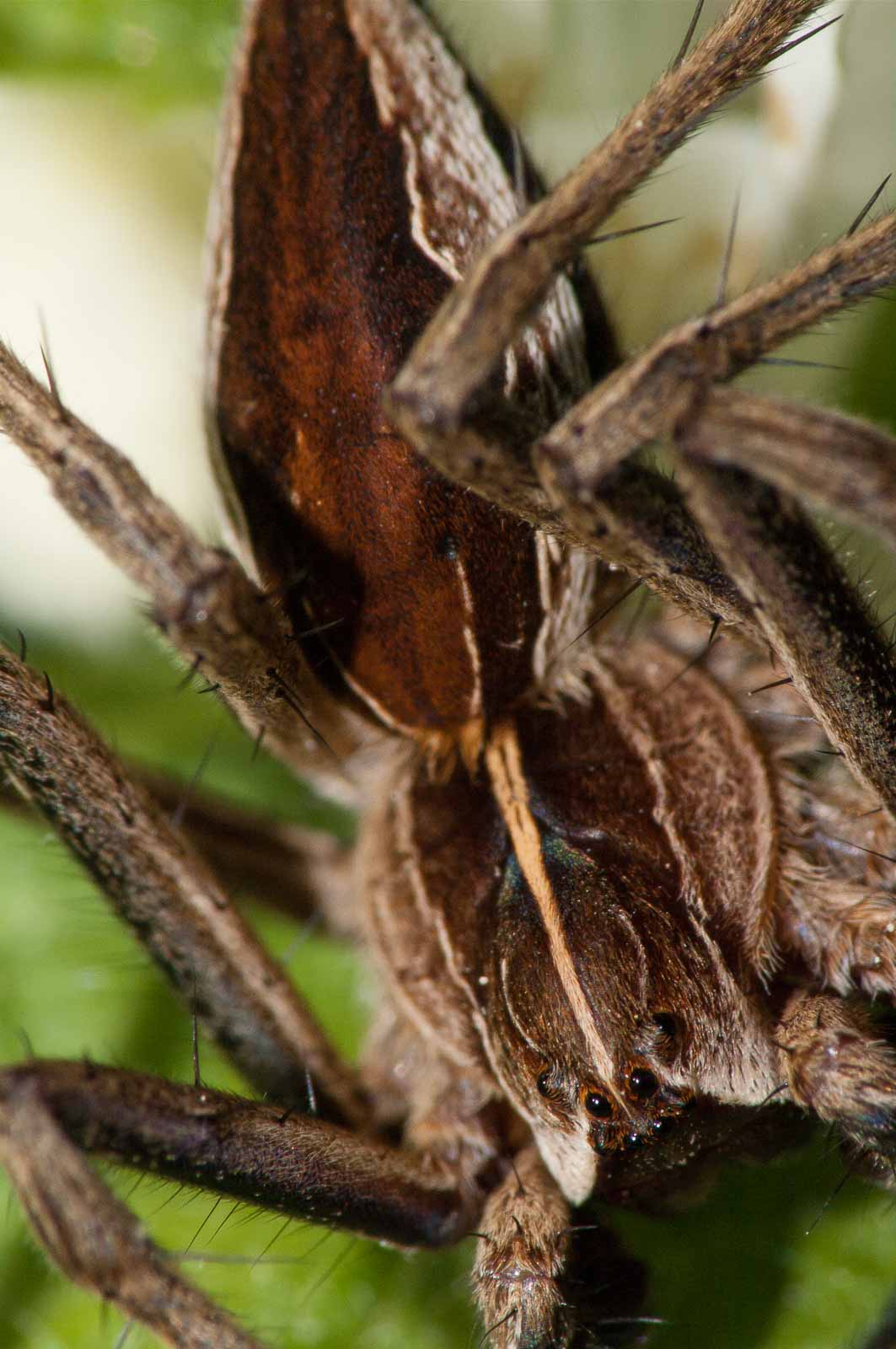 Der Vorderkörper (Prosoma) hat eine sehr variable Grundfärbung, die von Hellbraun über meist Rotbraun und Grau bis Schwarz reicht. Er trägt in der Mitte einen hellen, deutlich abgesetzten Längsstrich. Der Hinterkörper (Opisthosoma) ist lang und schmal, nach hinten verjüngt und auf dem Rücken mit einer breiten, dunkel gerandeten Zackenbinde versehen.