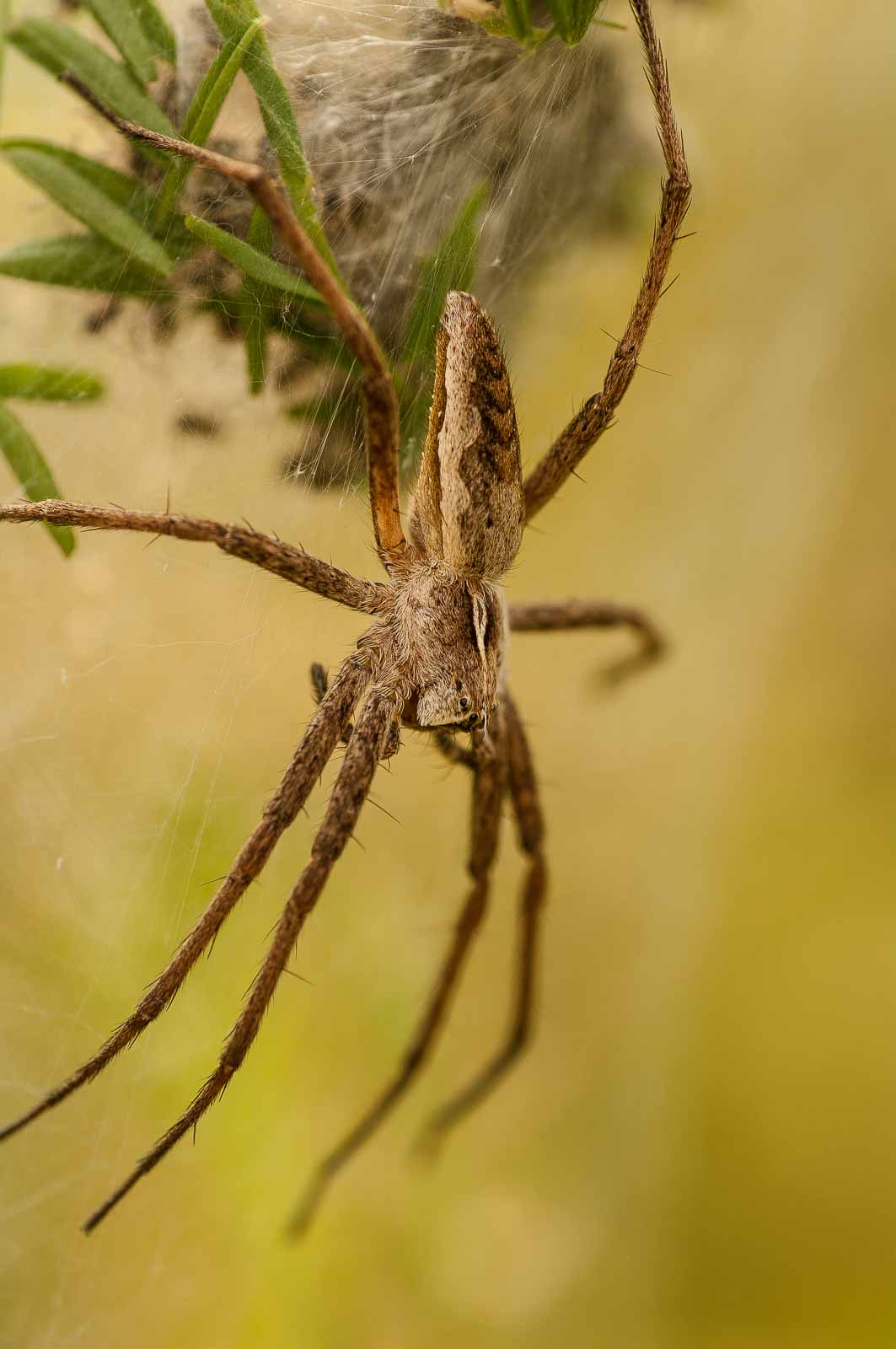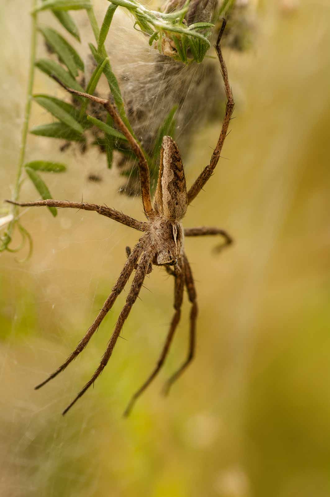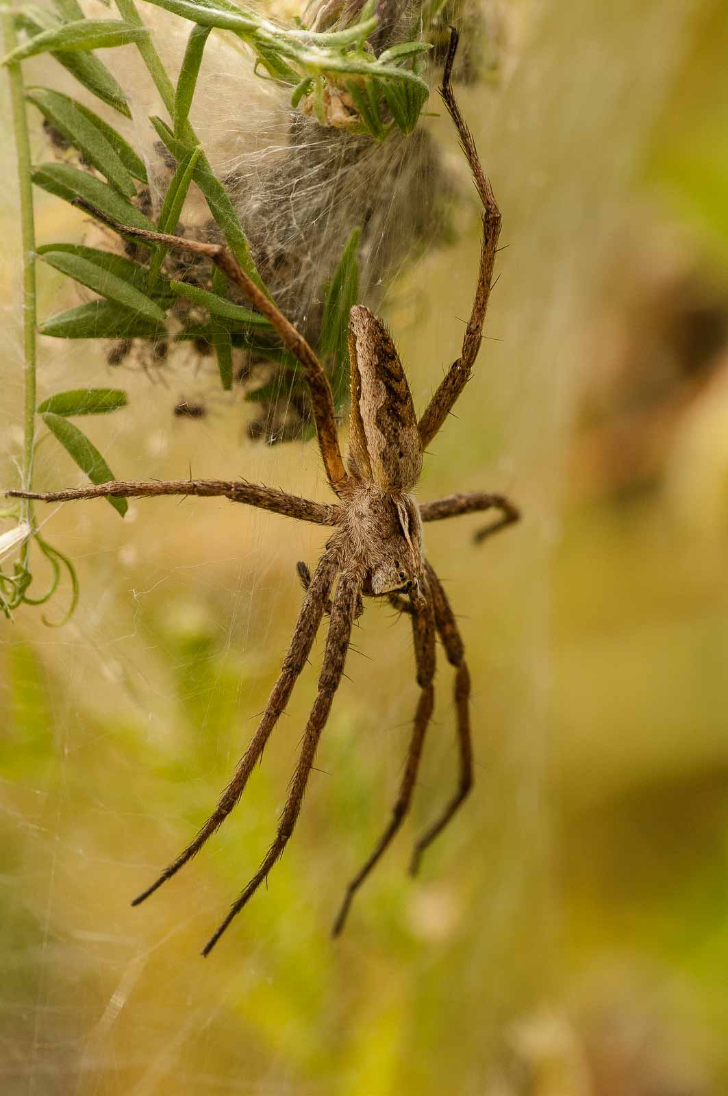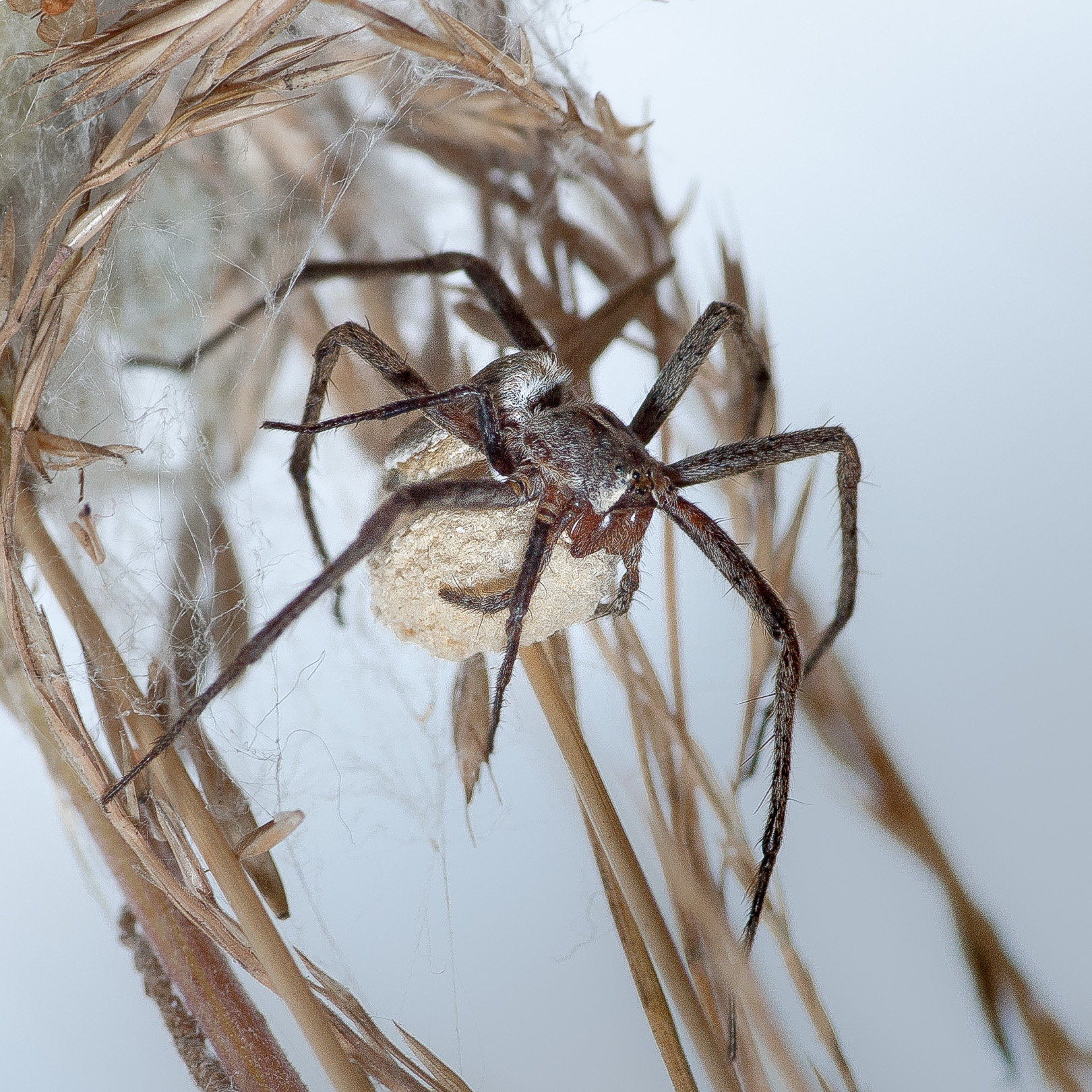 Eine Stunde nach der Herstellung des Kokons verharrt das Weibchen bewegungslos und presst den Genitalbereich durch Beugen der Beine fest gegen die Eikammer. Dadurch tritt eine braune Eimasse aus, die je nach der Anzahl der Eier zwei bis vier Millimeter Durchmesser einnimmt. Nun verschließt das Weibchen die Kokonöffnung, indem es rasch Fäden kreuz und quer darüber spinnt, dann wieder ganze Seidenpakete abgibt. Einige Minuten später reißt es den Kokon von der Unterlage, wobei sie die Fäden mit den Cheliceren abschneidet. Indem das Weibchen den Kokon zwischen den Pedipalpen und dem dritten Beinpaar rotieren lässt, überspinnt es ihn mit weißer Seide. Schließlich nimmt es den Eikokon in die Cheliceren und transportiert ihn in der für die Pisauridae charakteristischen Weise unter dem Vorderkörper (im Gegensatz zu den Wolfspinnen, bei denen die Weibchen den Kokon an den Spinnwarzen befestigt tragen). In der Regel legt das Weibchen den Eikokon bis zum Bau des Glockengewebes nicht ab, gelegentlich fängt und verzehrt es jedoch Beute.