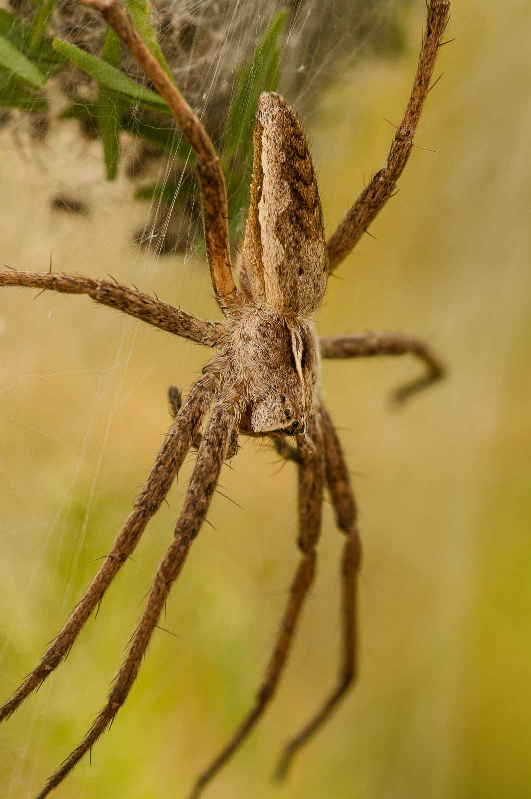 Je nach Temperatur häutet sie sich nach 4,5 bis 7,5 Tagen zum ersten voll entwickelten Stadium, Nymphe 1 oder Stadium 1 genannt. Sie verlässt den Kokon nach dem Öffnen durch die Mutter und lebt zunächst im Kinderstubennetz, das das Weibchen aus dem Glockengewebe gefertigt hat. Dort nimmt sie noch keine feste Nahrung zu sich, sondern zehrt von ihren Dotterreserven. Zudem trinkt sie an Wassertropfen. Nach ungefähr einer Woche beginnt die Nymphe sich in ein selbstständiges Leben im ersten eigenen Netz abzuseilen. Der Übergang findet meist im sechsten oder siebten Stadium statt. Nun kann sie bereits Fruchtfliegen überwältigen. Kannibalismus tritt in den ersten Tagen nicht auf. Während ihrer Nymphonal-Imaginalperiode durchläuft die Raubspinne maximal zwölf Stadien. Männchen werden mit dem neunten bis elften Stadium geschlechtsreif, Weibchen mit dem zehnten bis zwölften Stadium. Kühle Witterung verzögert die Entwicklung. Alle Stadien produzieren einen Sicherheitsfaden, an dem sie sich bei Gefahr abseilen.
