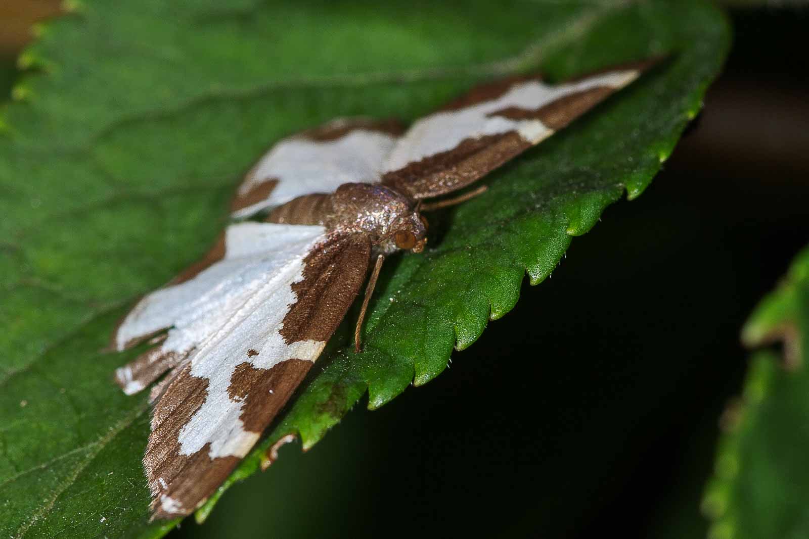 Der Vogelschmeiß-Spanner ist ein relativ kleiner Nachtfalter mit einer Flügelspannweite von 30 bis 38 Millimetern. Er zählt zu den wenigen Spannern die auch am Tag aktiv sind. Die Flügelzeichnung ist charakteristisch und kann mit keinem anderen Falter verwechselt werden. Die Flügel besitzen eine weiße, gelegentlich gelbliche Grundfärbung und sind dunkelbraun bis fast schwarz gesäumt. Das Fleckenmuster des Saums ist variabel. Das Aussehen erinnert an Vogelkot und dient der Tarnung.
