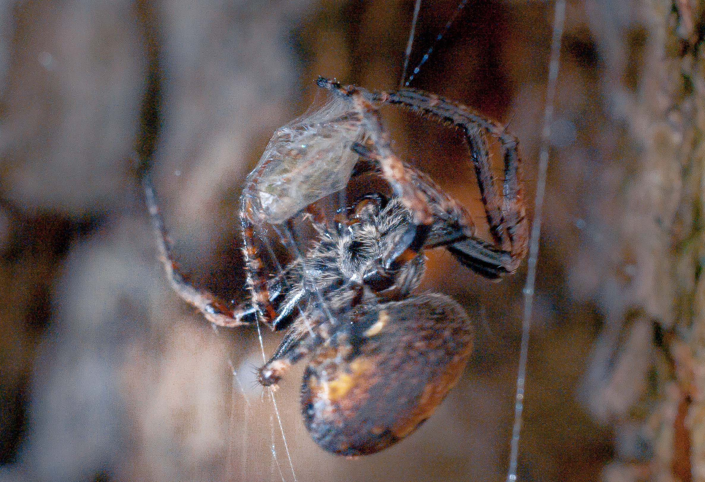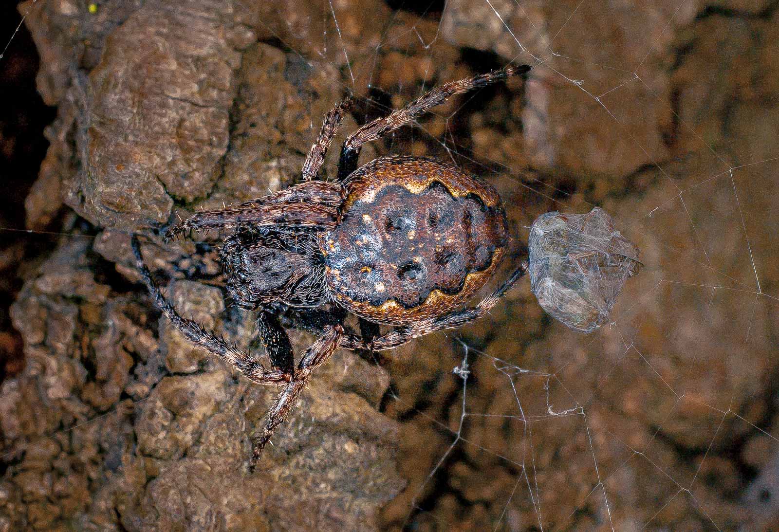 Das Radnetz wird in mittlerer Höhe vor allem an alte Bäume gebaut, aber auch an Holzschuppen und Hauswände. Es ist mit 45 bis 70 Zentimeter Durchmesser recht groß, auch die Radienabstände sind relativ groß. Die Nabe ist exzentrisch und meist deutlich Richtung Versteck der Spinne verschoben. Tagsüber versteckt sie sich unter loser Baumrinde oder in Rindenspalten, an Gebäuden auch in Mauerritzen. Nach Einbruch der Dunkelheit sitzt sie im Zentrum des Netzes. Geschlechtsreife Tiere kann man vor allem von Juli bis Oktober beobachten. Mindestens die Weibchen überwintern unter Baumrinde und ähnlichen Strukturen.