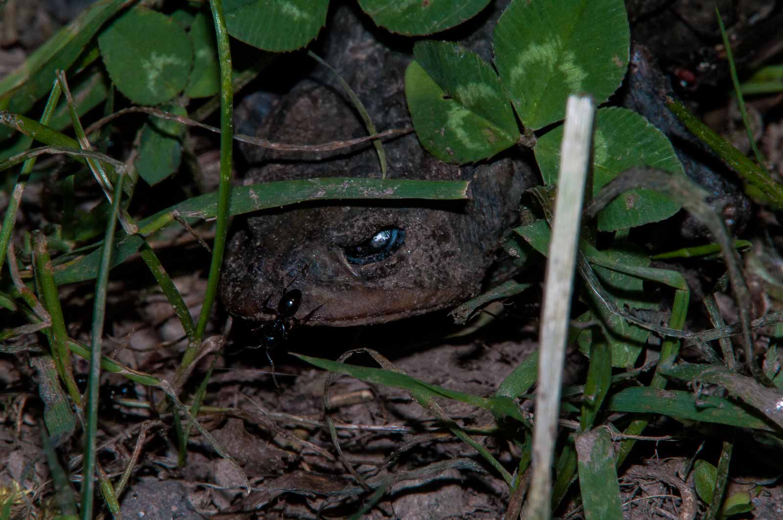 Erdkröte, bereits fast mumifiziert, erfüllt auch nach ihrem Tod die wichtige Aufgabe, den Zyklus der Schöpfung für andere zu erhalten …